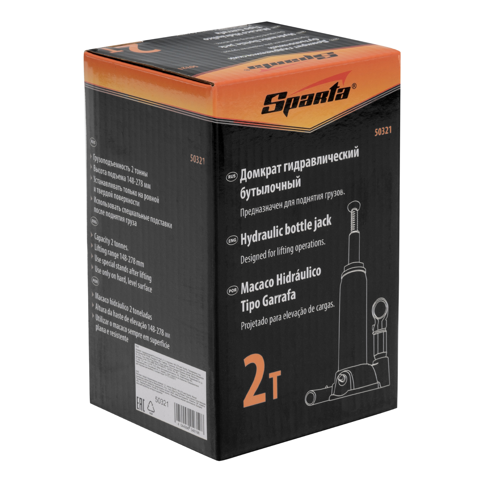 Домкрат гидравлический бутылочный, 2 т, h подъема 148-278 мм Sparta в Санкт-Петербурге