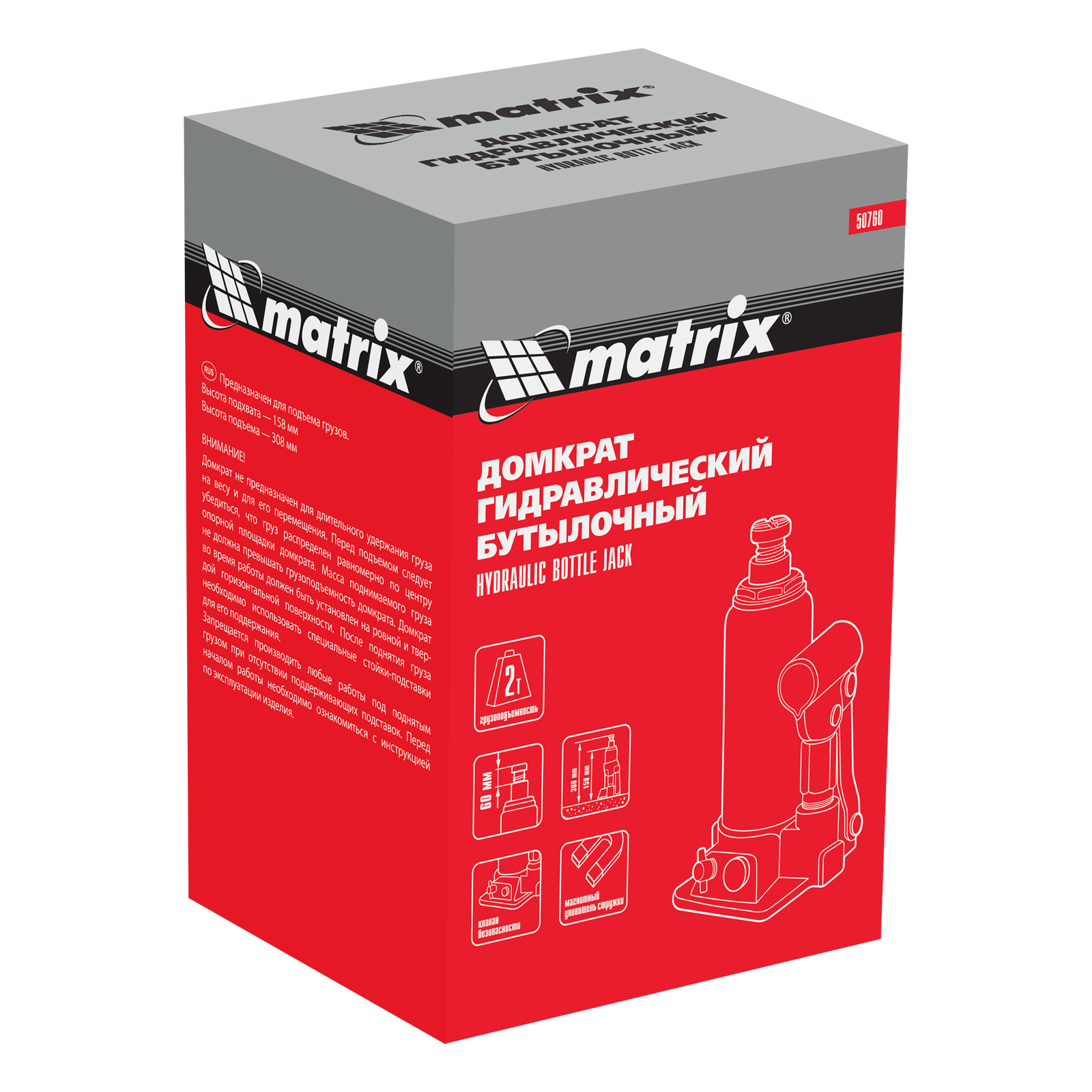 Домкрат гидравлический бутылочный, 2 т, h подъема 158-308 мм Matrix в Санкт-Петербурге