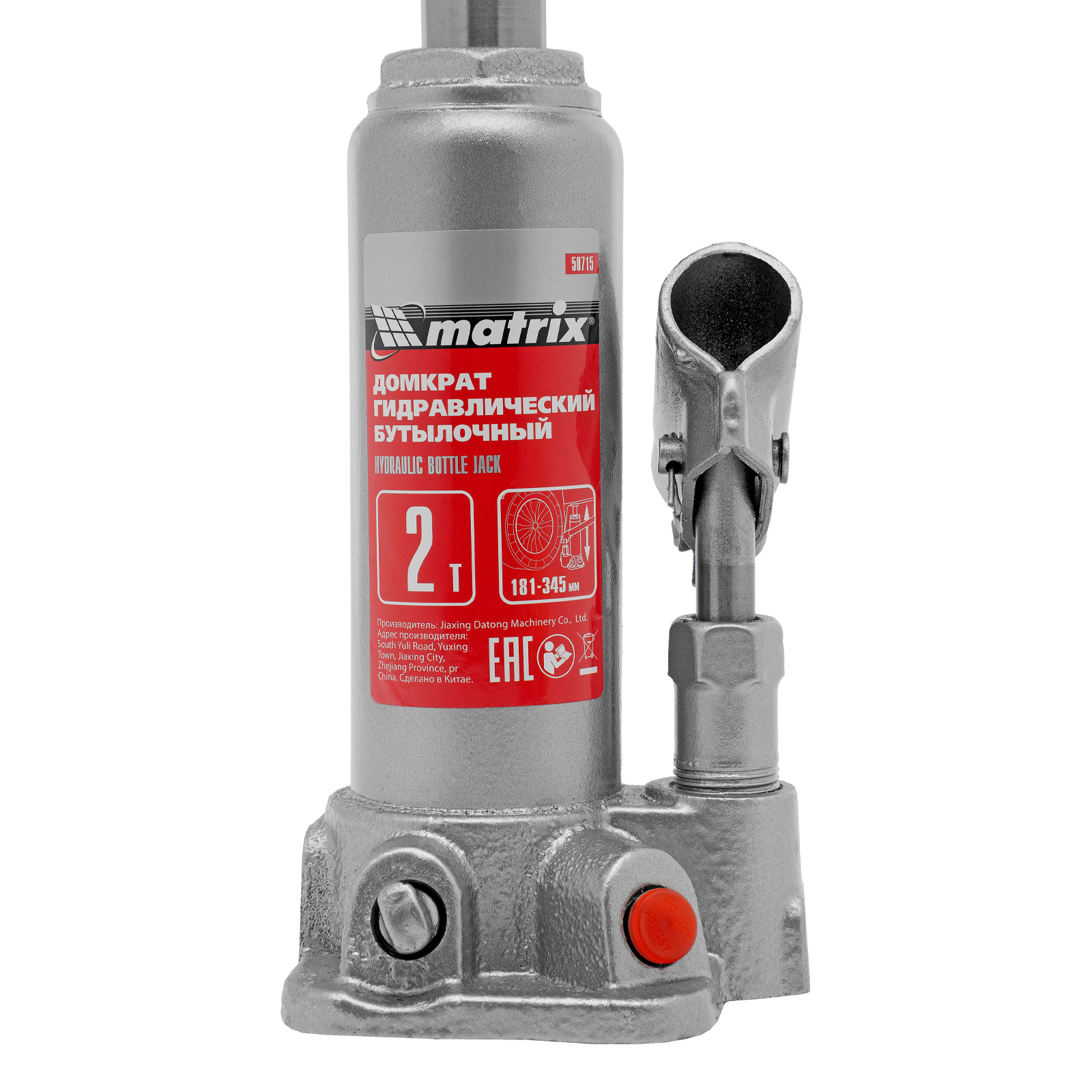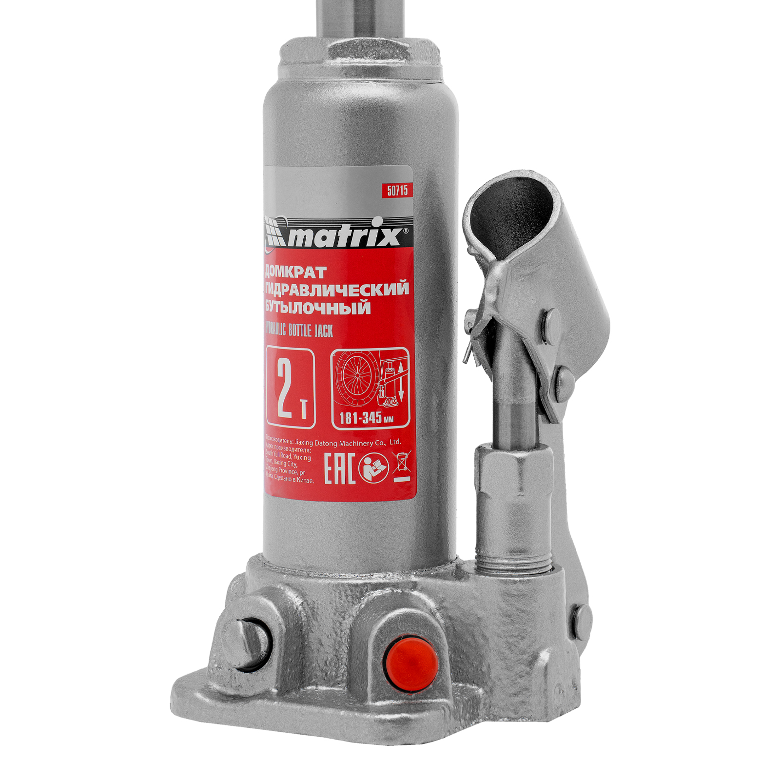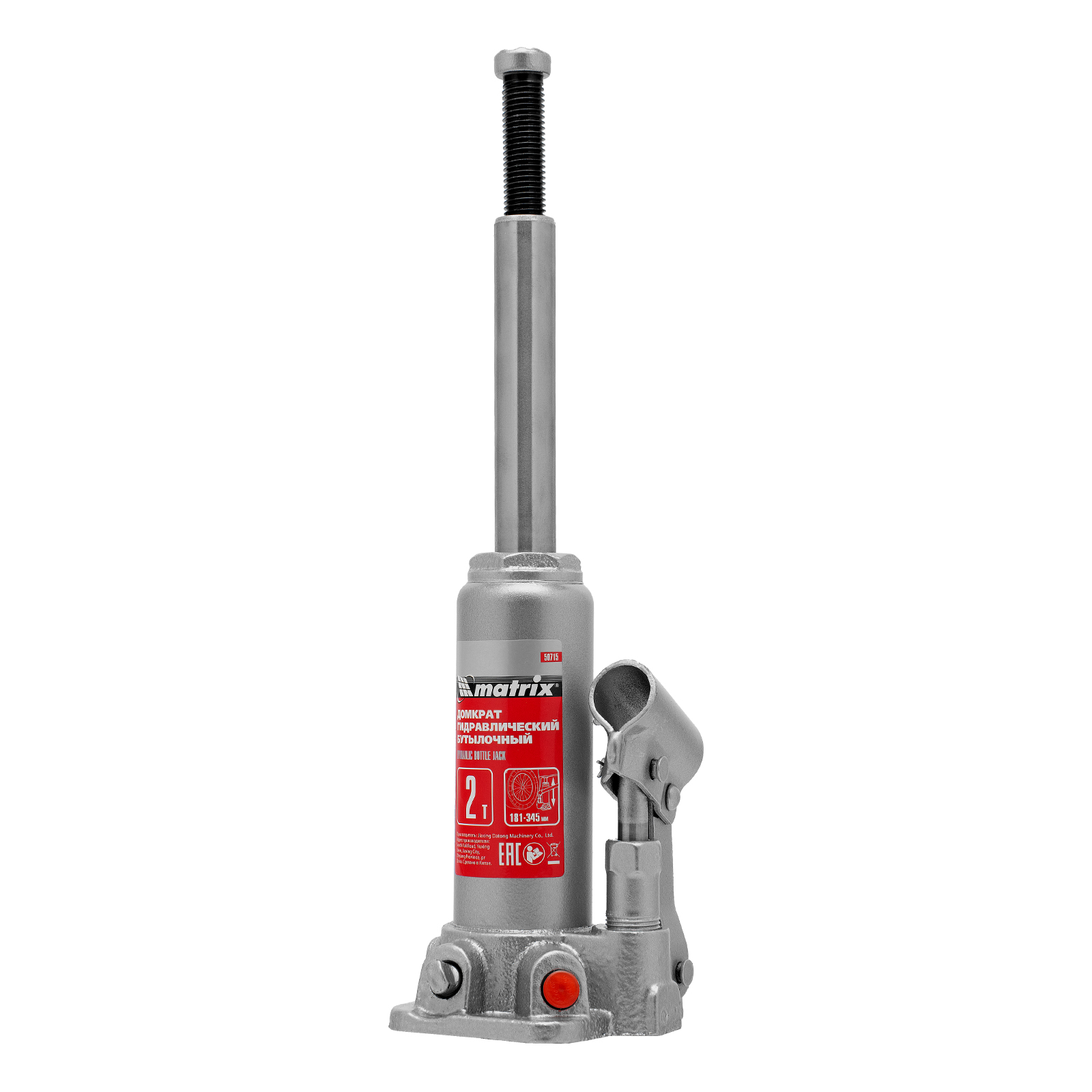Домкрат гидравлический бутылочный, 2 т, высота подъема 181-345 мм Matrix в Санкт-Петербурге