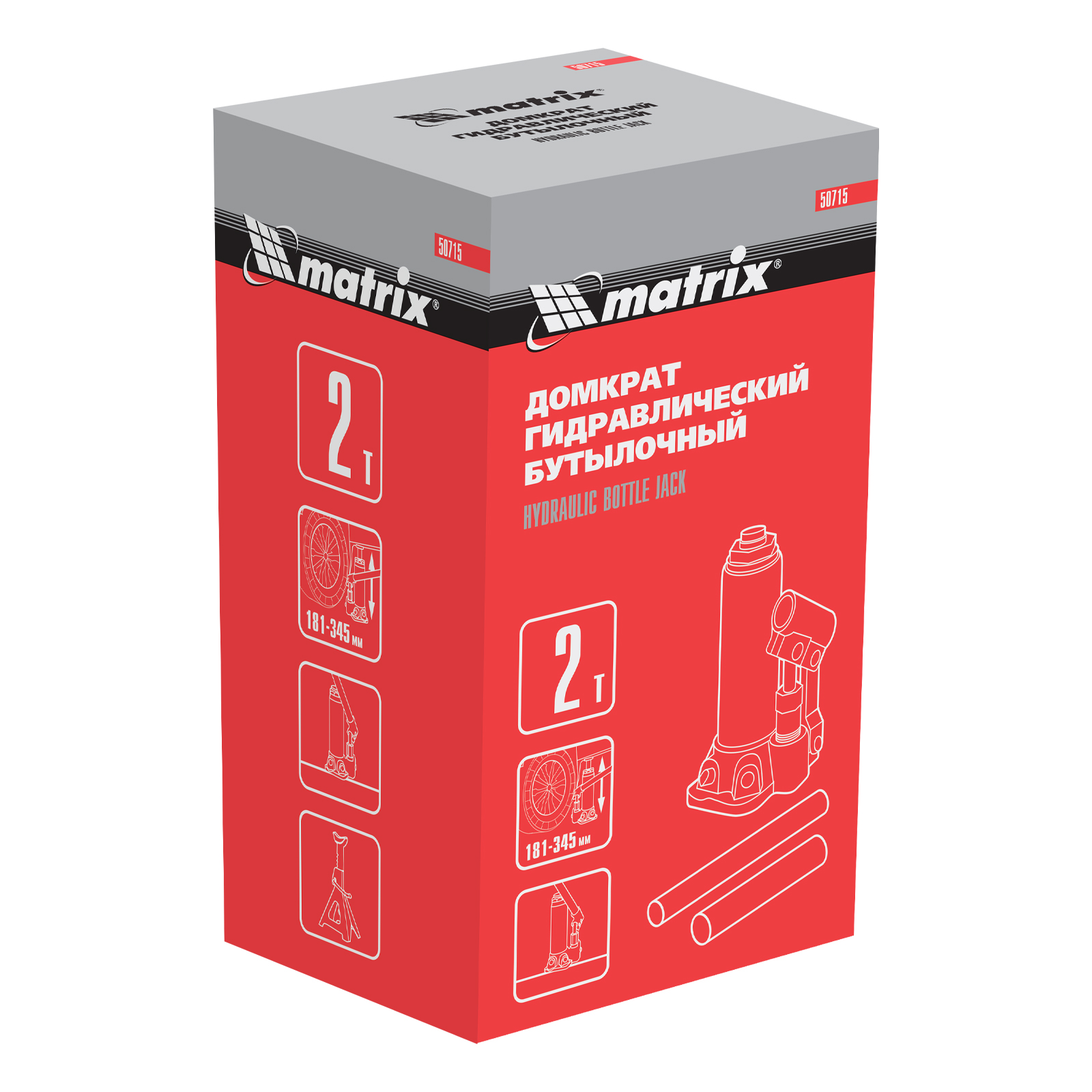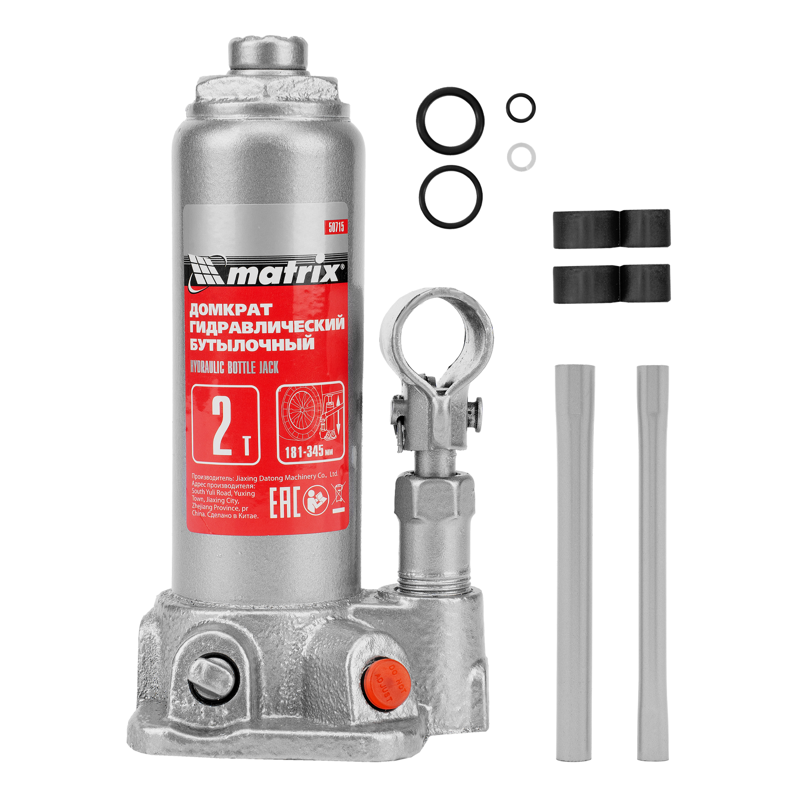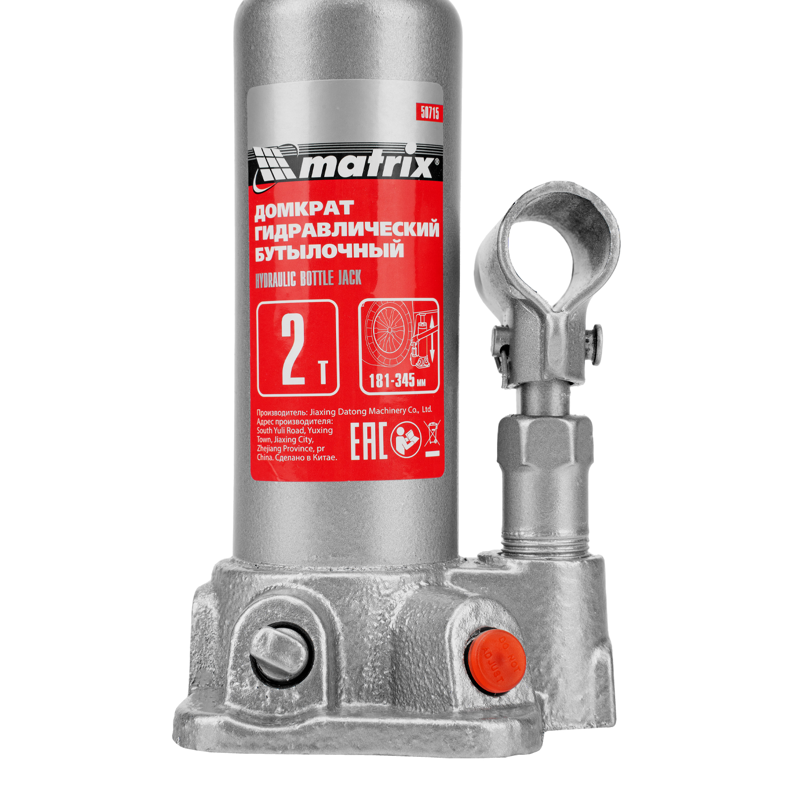 Домкрат гидравлический бутылочный, 2 т, высота подъема 181-345 мм Matrix в Санкт-Петербурге