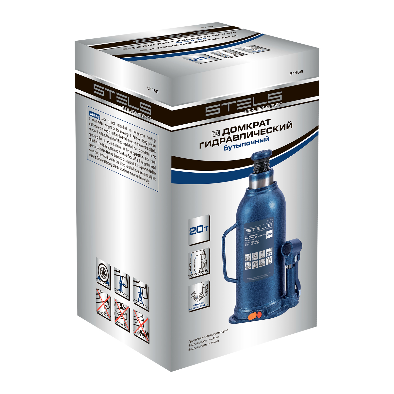 Гидравлический бутылочный домкрат Stels 51169 применяется для быстрого поднятия грузов весом до 20 т на высоту 235-445 мм. Оптимален для автомобилей с большим клиренсом. Домкрат будет полезен автолюбителям и профессионалам для ремонта транспортного средства.
