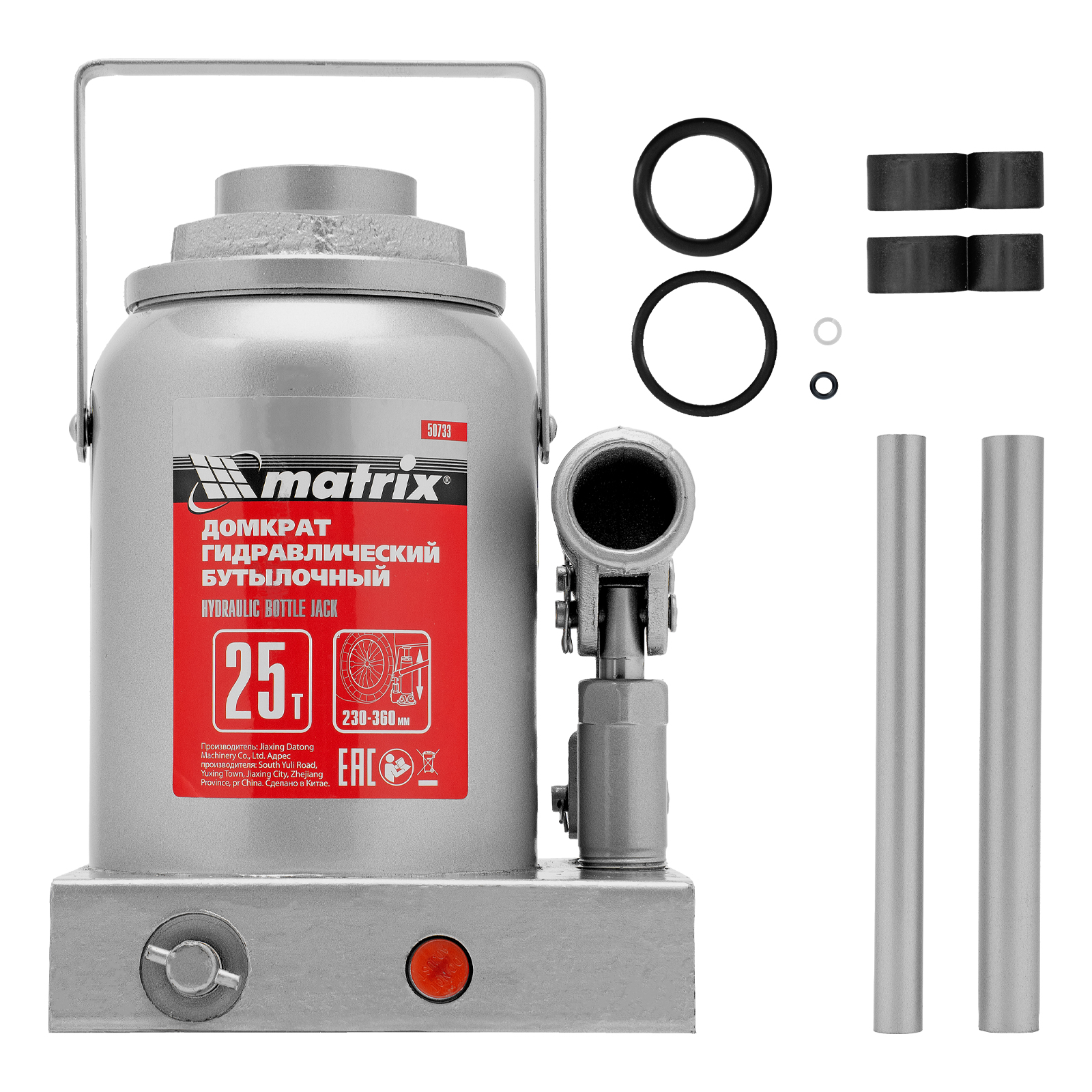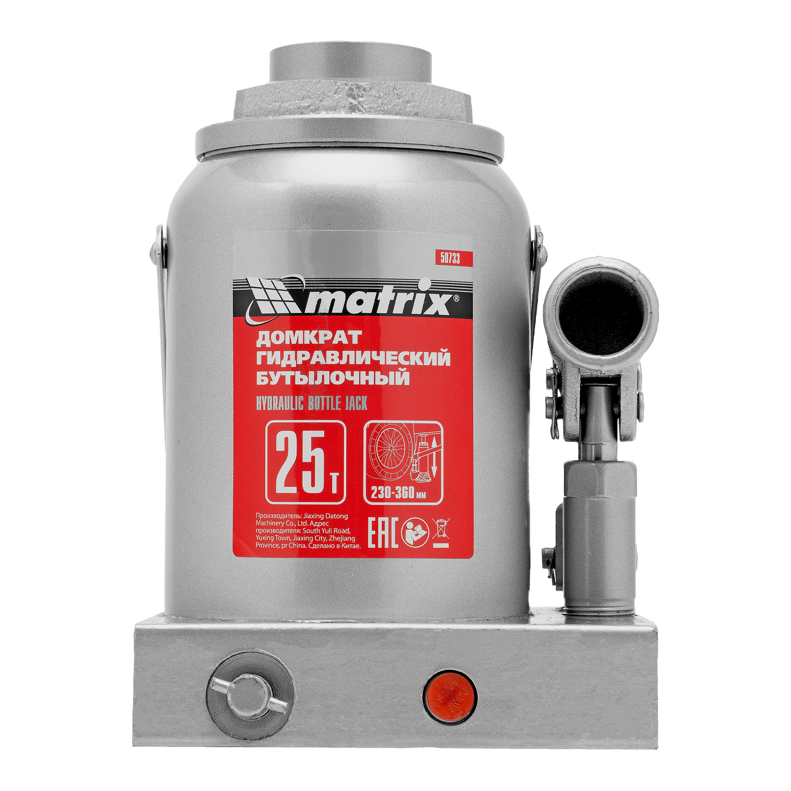 Домкрат гидравлический бутылочный, 25 т, высота подъема 230-360 мм Matrix в Санкт-Петербурге