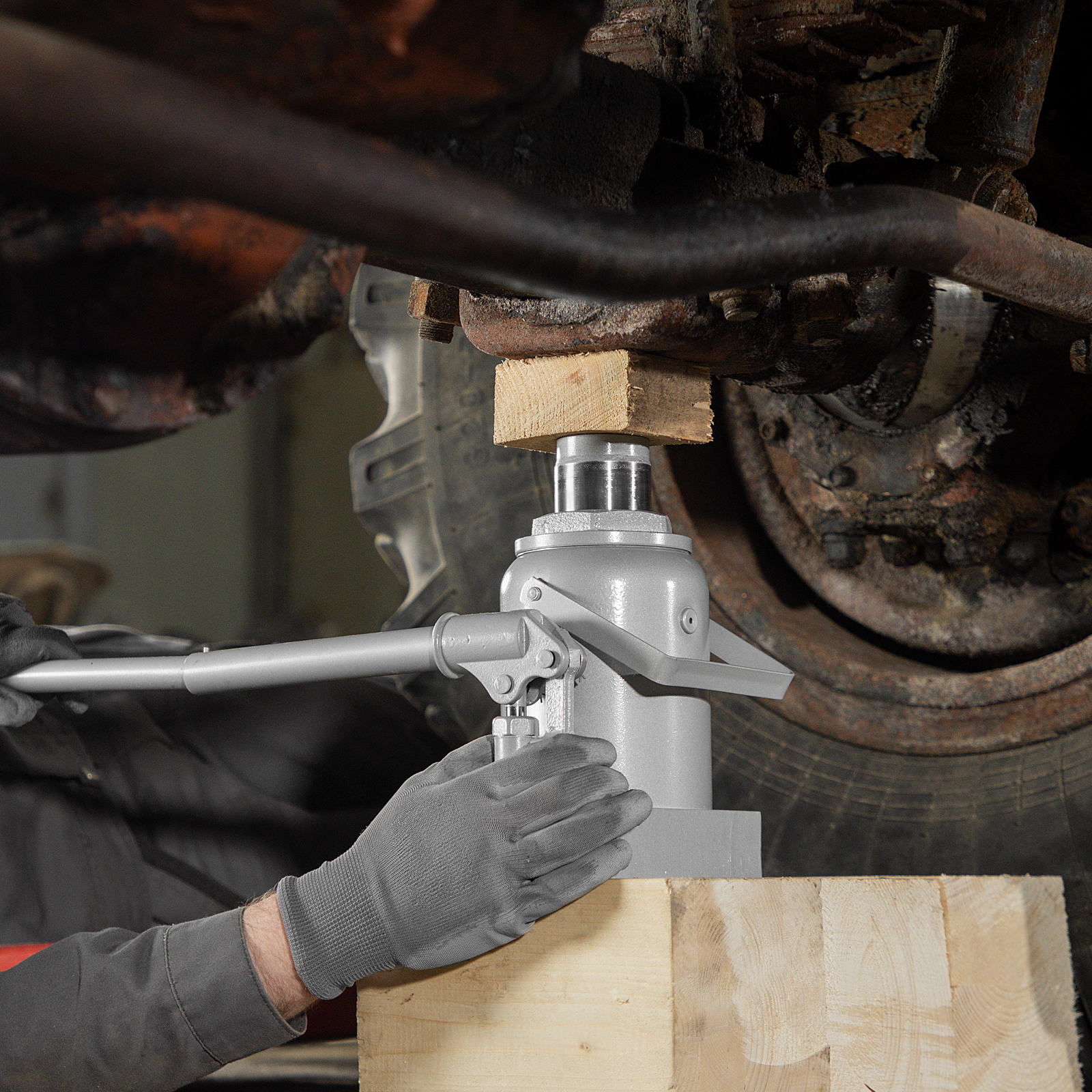 - Высококачественное всесезонное масло — домкрат безотказно работает в широком диапазоне температур (от -20 до 45 ℃).