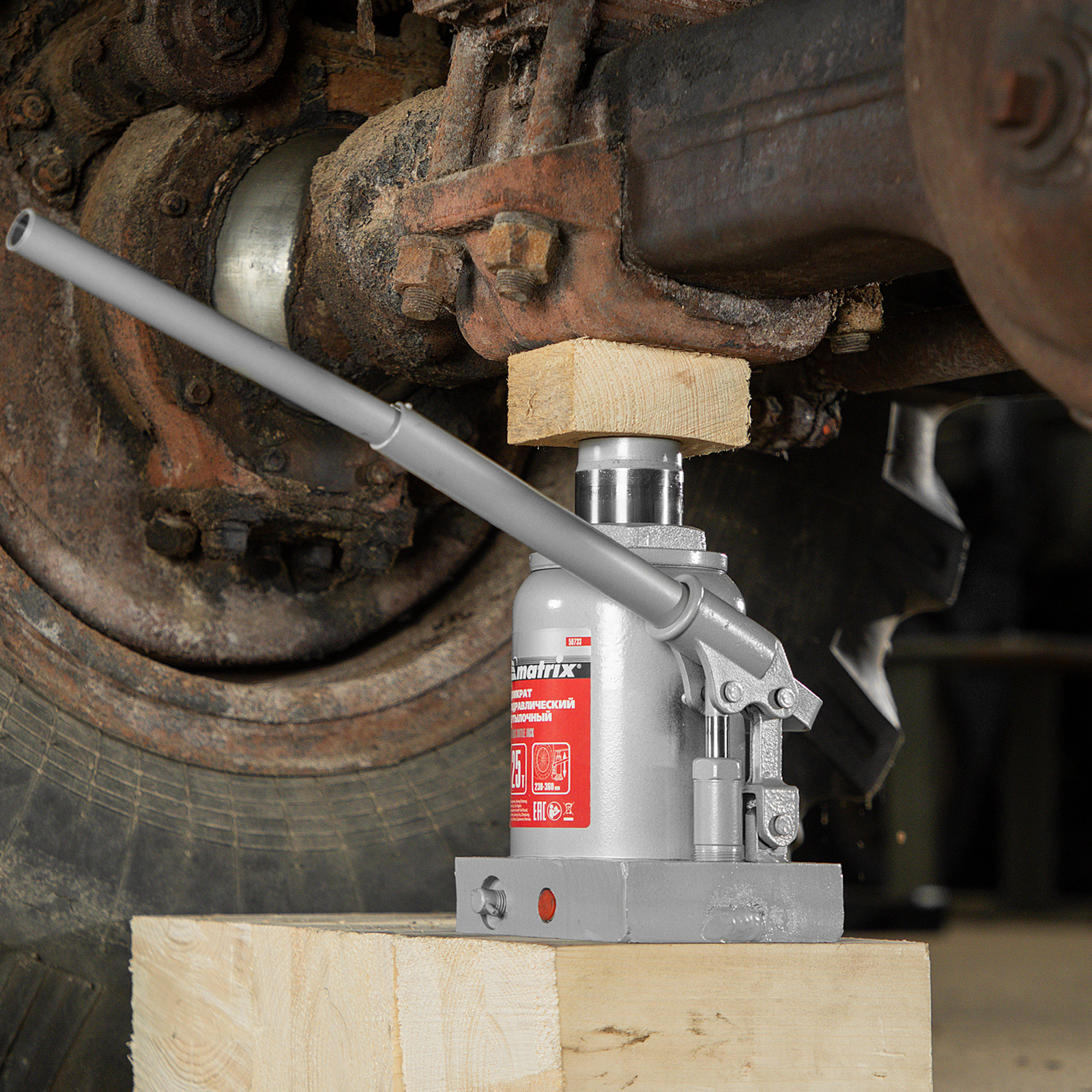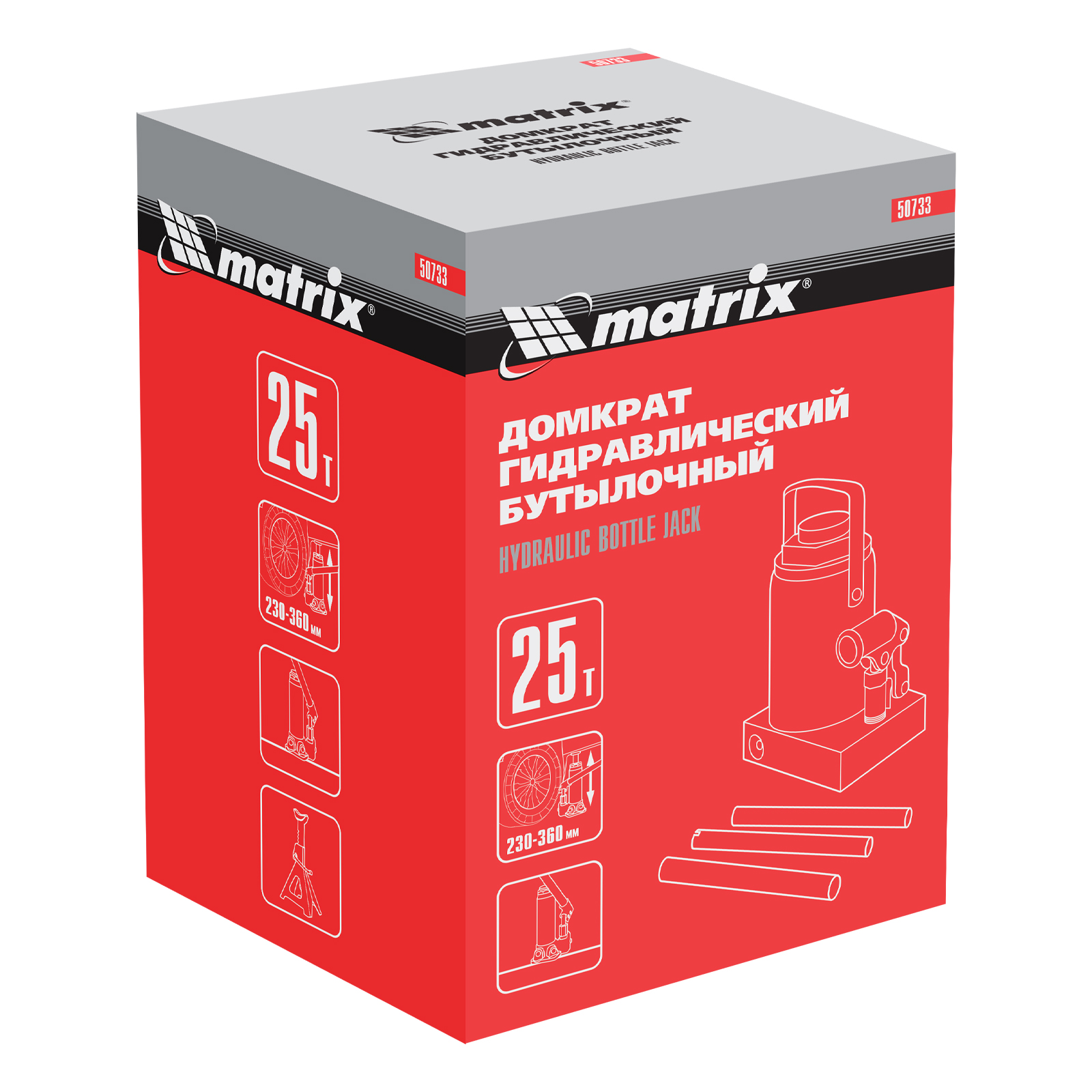 Домкрат гидравлический бутылочный Matrix 50733 используется для поднятия грузов массой до 25 т на высоту 230-360 мм. Подходит для автомобилей с высоким клиренсом. Домкрат будет полезен автолюбителям в гараже и дороге, а также сотрудникам СТО.