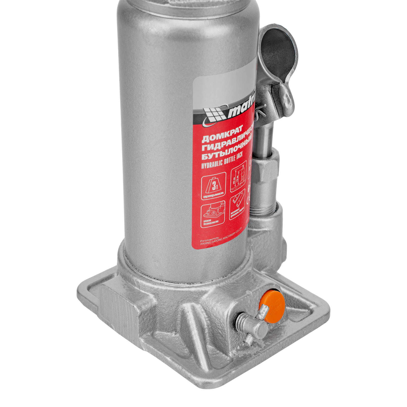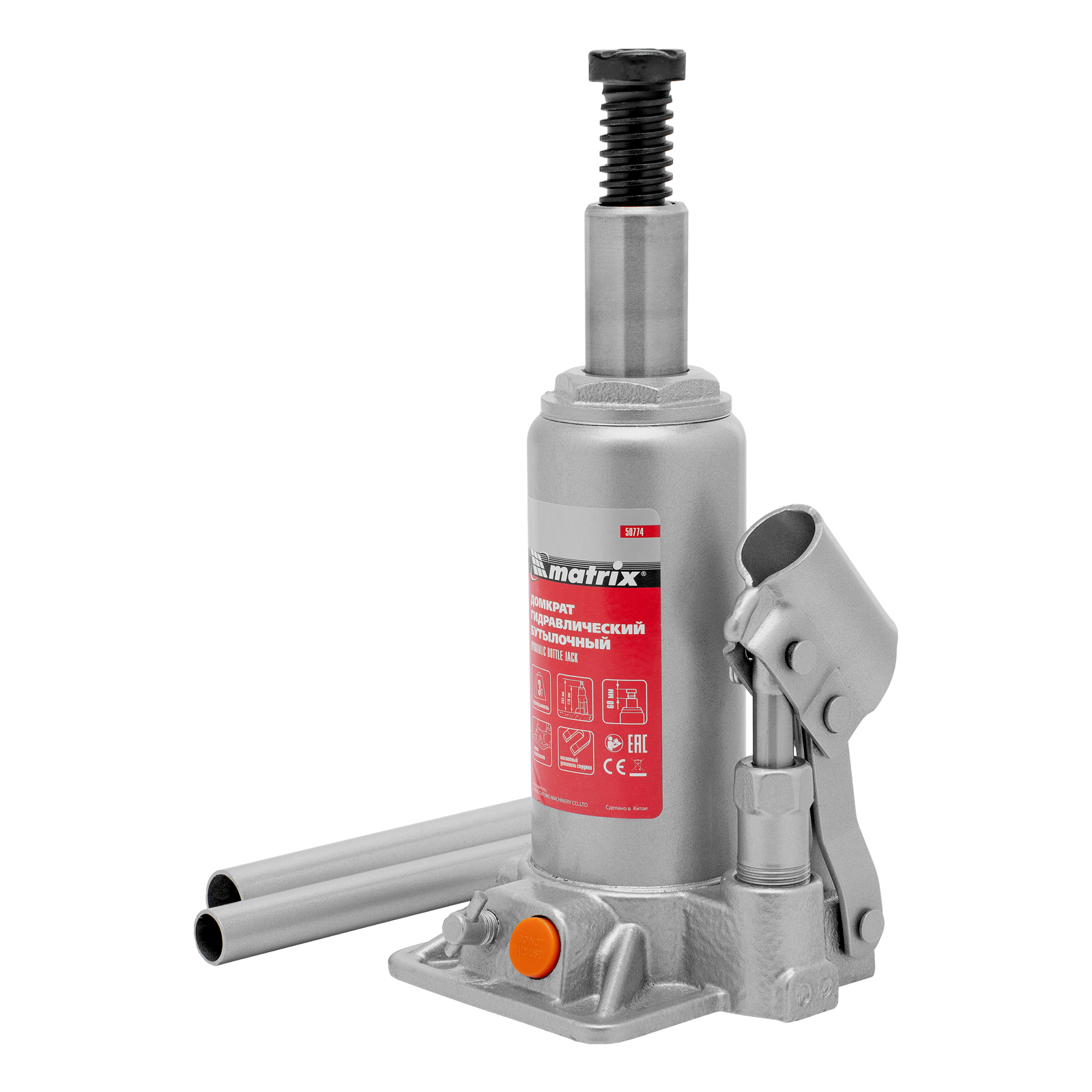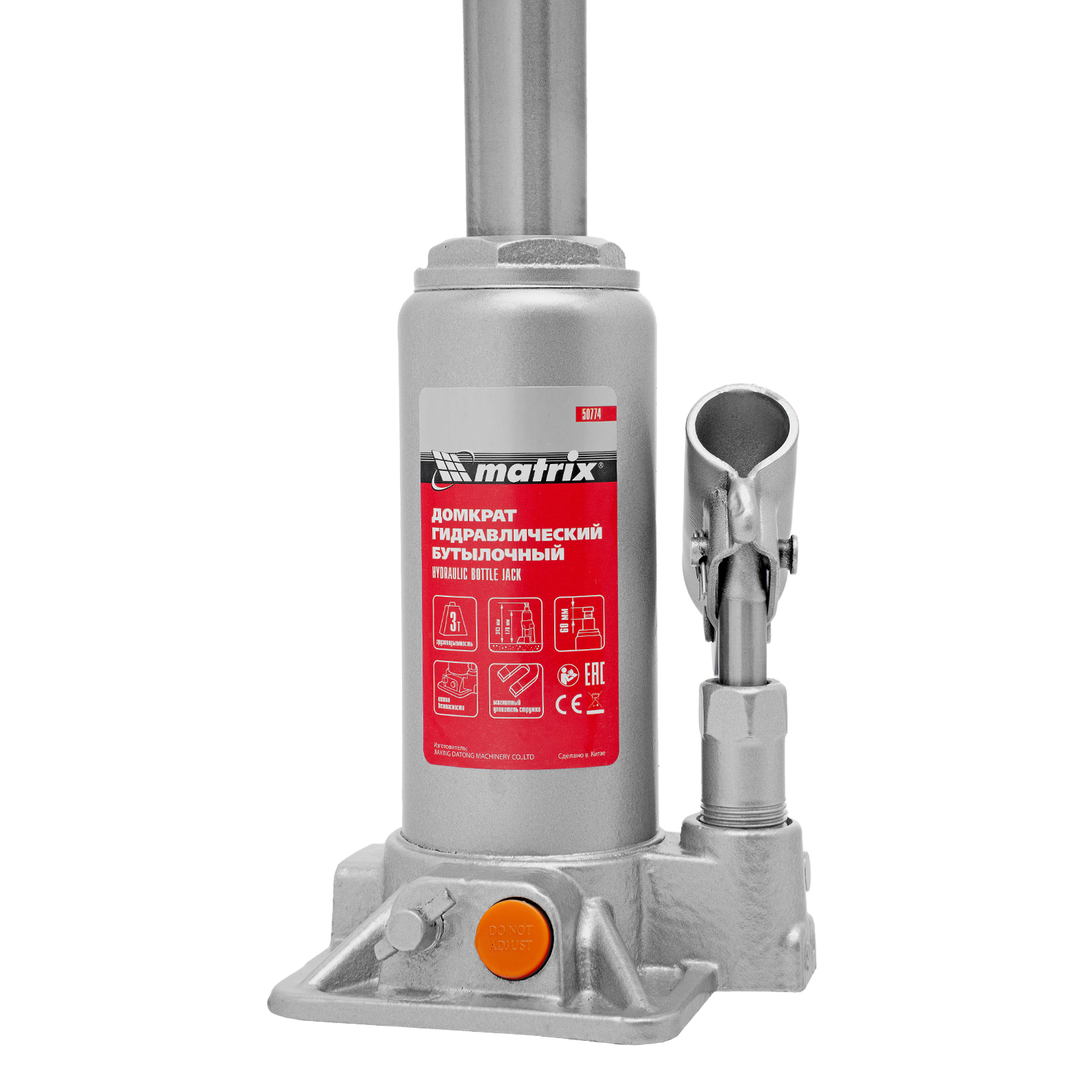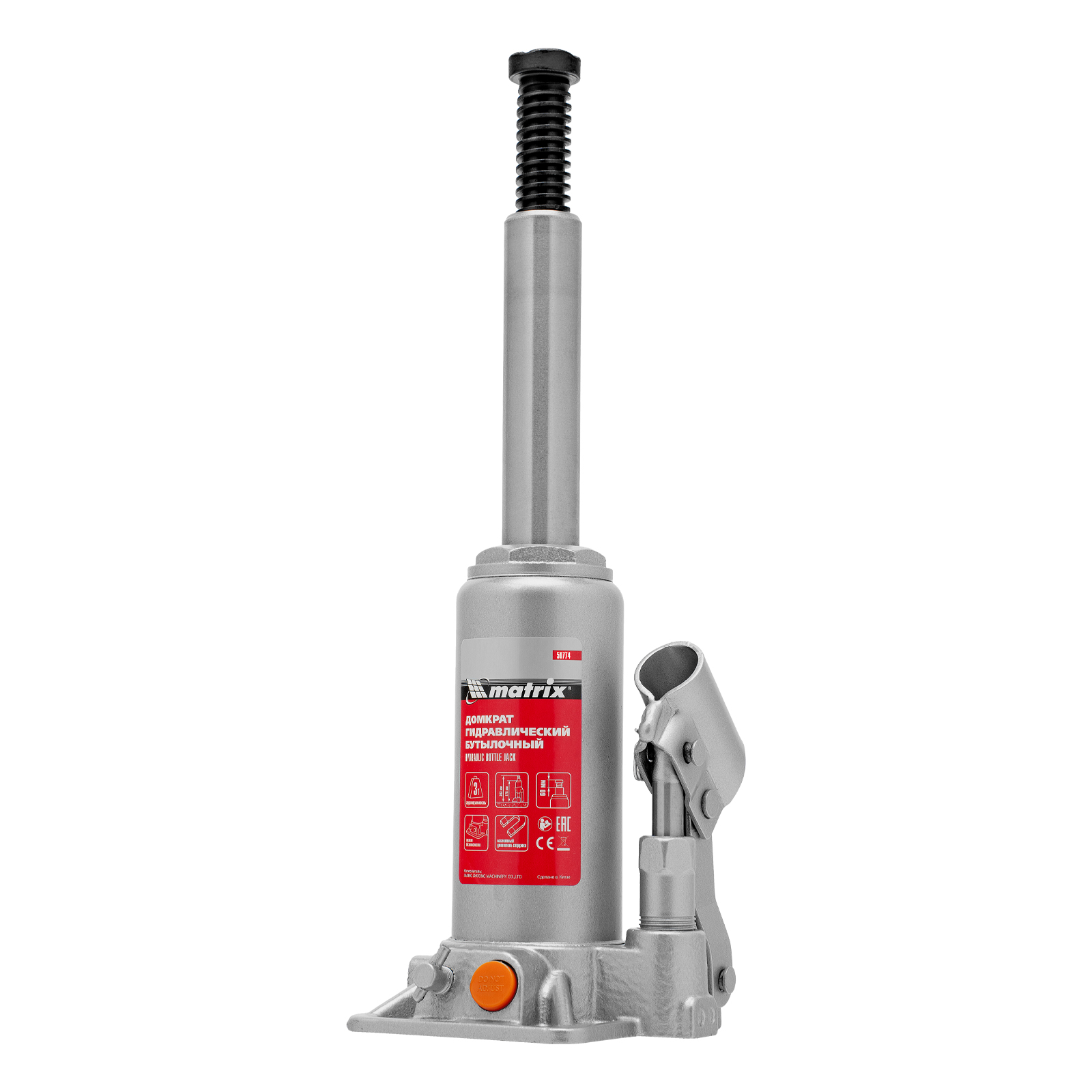 Гидравлический бутылочный домкрат Matrix 50774 позволяет быстро поднимать грузы массой до 3 т на высоту 178-343 мм. Встроенный магнитный уловитель собирает металлическую стружку, предотвращая преждевременный износ резиновых уплотнителей. Домкрат пригодится для полупрофессионального применения.