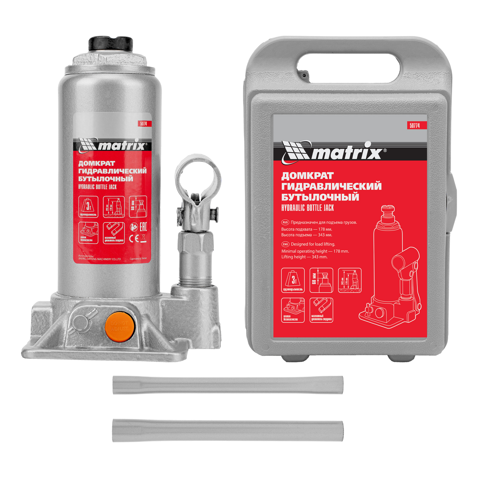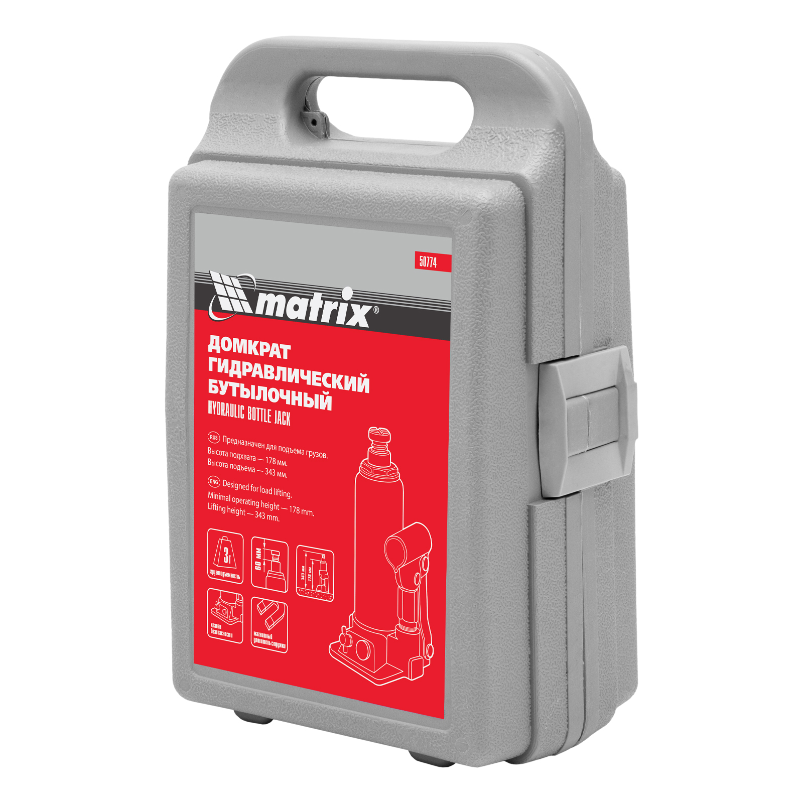 Домкрат гидравлический бутылочный, 3 т, h подъема 178-343 мм, в пластиковом кейсе Matrix в Санкт-Петербурге