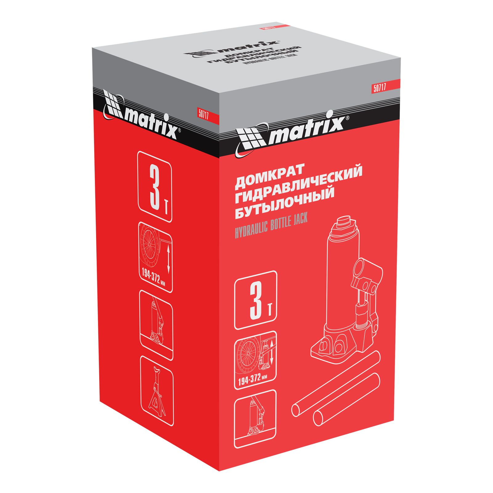 Домкрат гидравлический бутылочный, 3 т, высота подъема 194-372 мм Matrix в Санкт-Петербурге