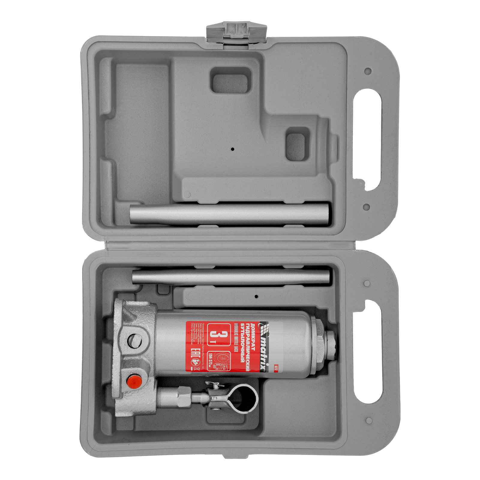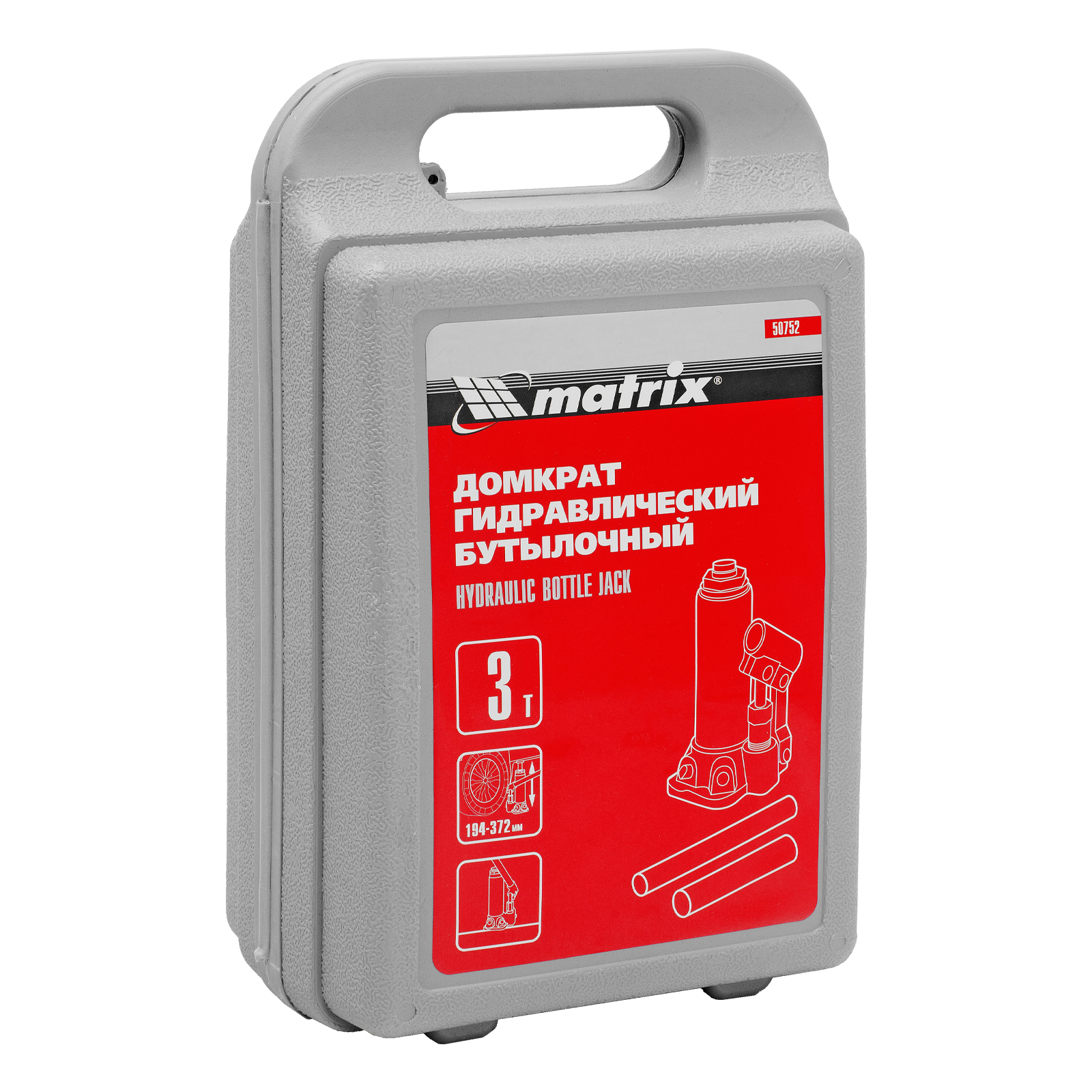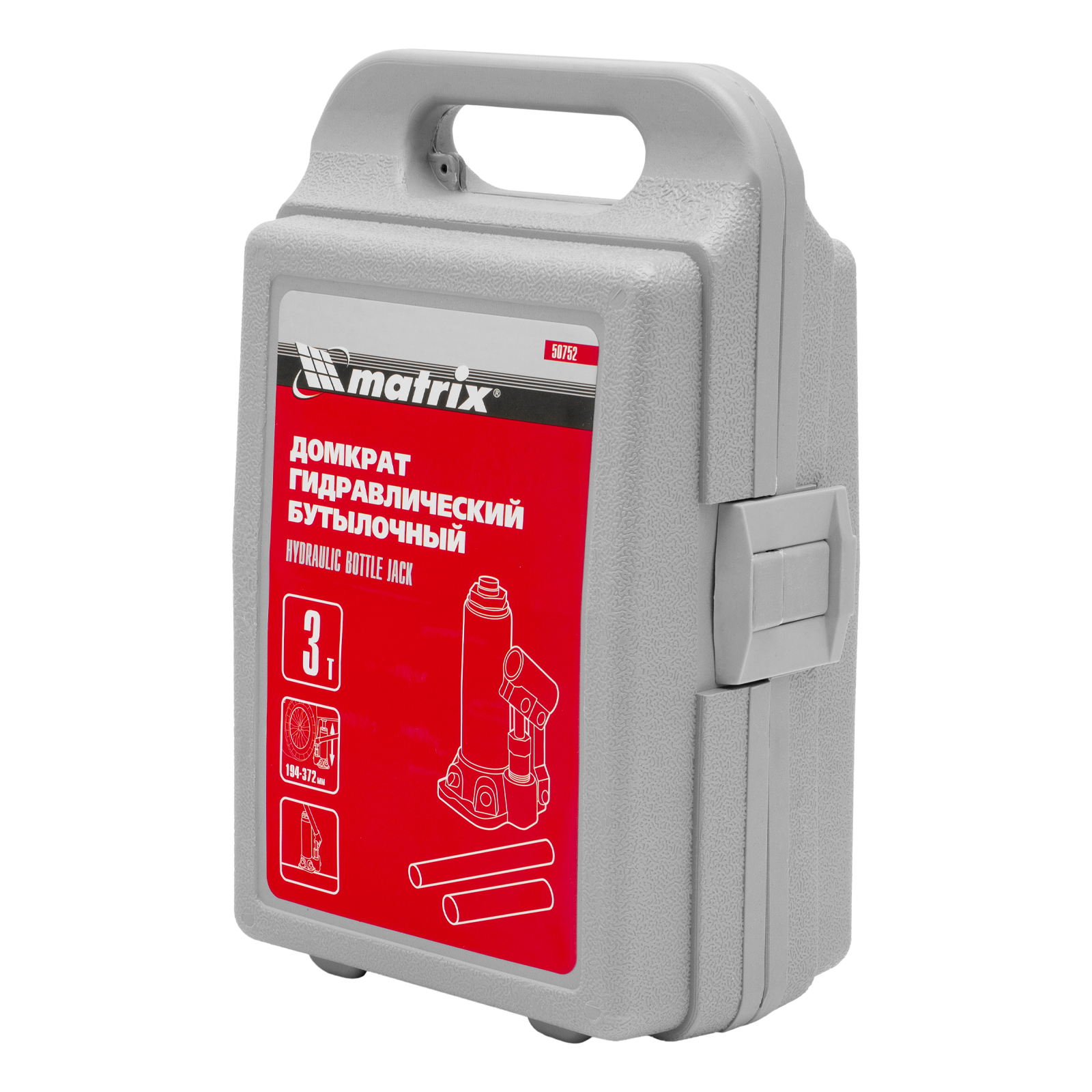 Домкрат гидравлический бутылочный, 3 т, высота подъема 194-372 мм, в пластиковый кейсе Matrix в Санкт-Петербурге