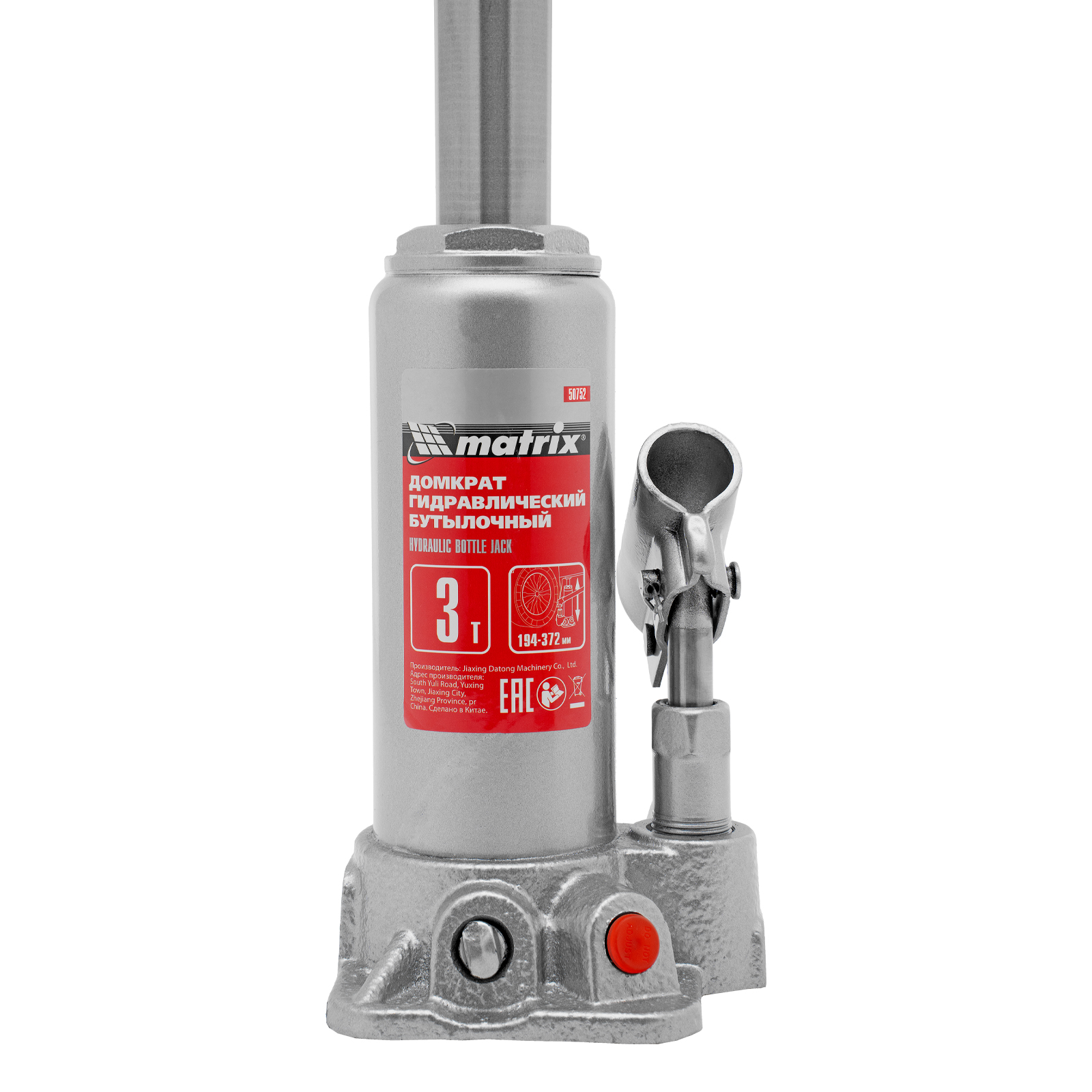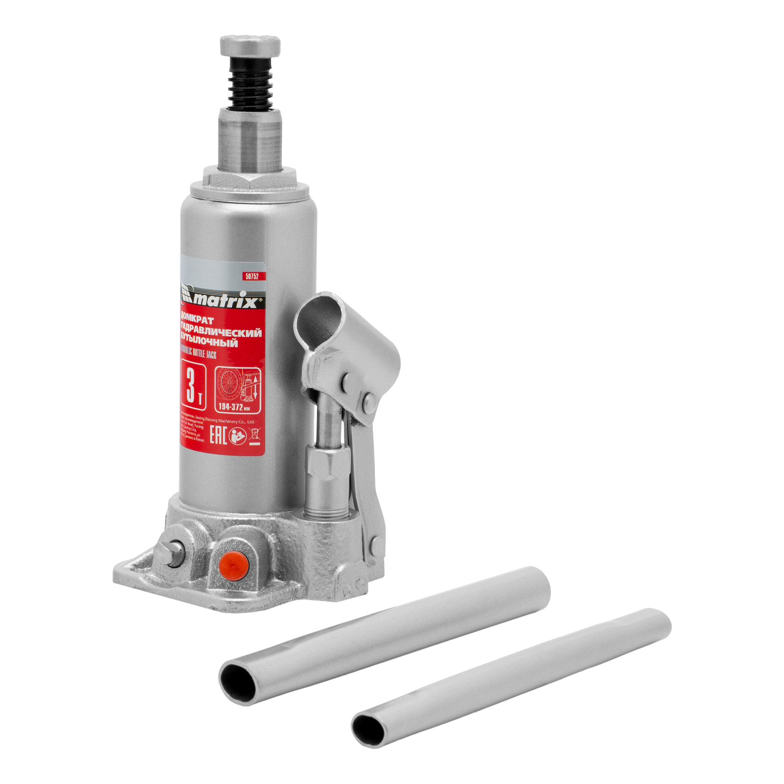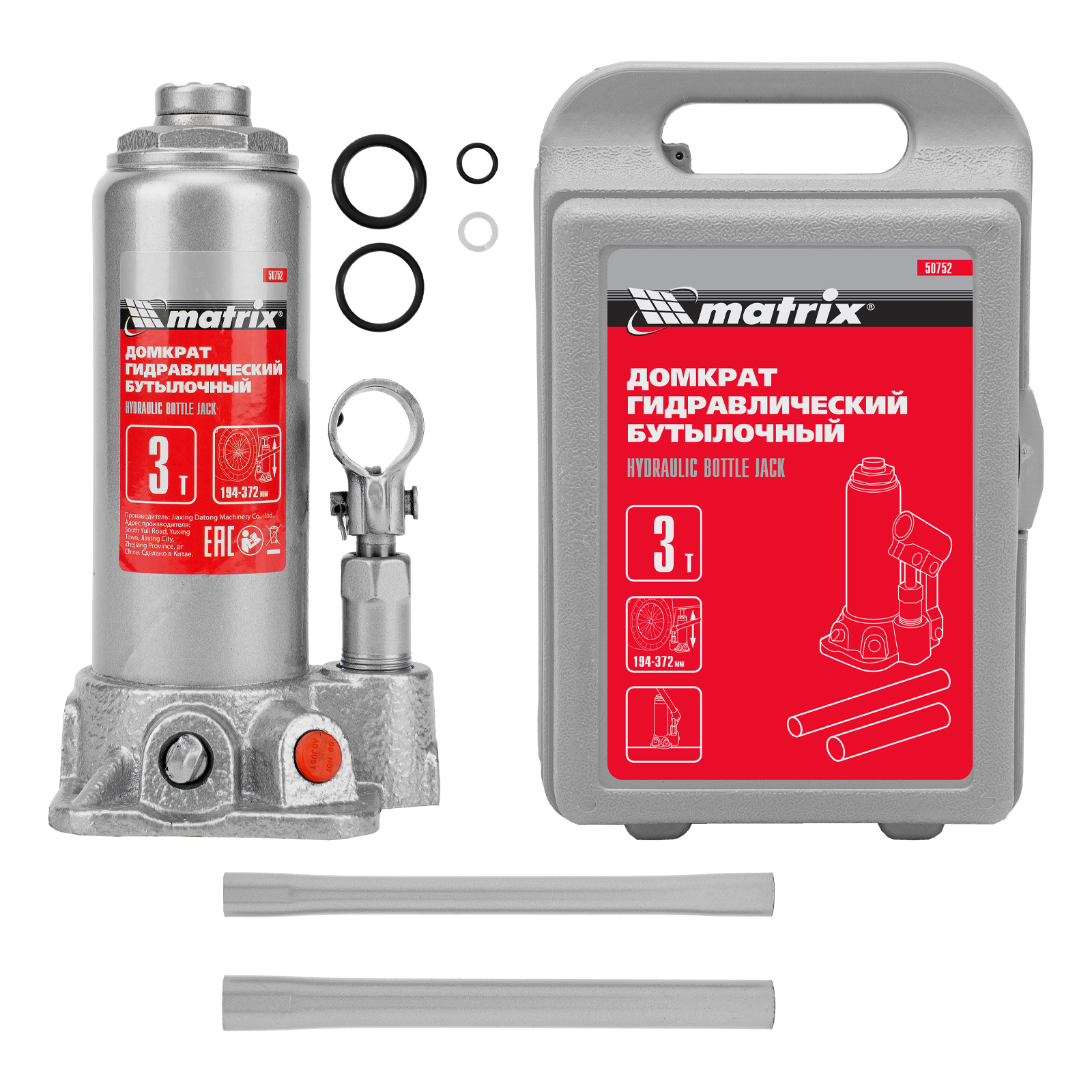 Домкрат гидравлический бутылочный, 3 т, высота подъема 194-372 мм, в пластиковый кейсе Matrix в Санкт-Петербурге