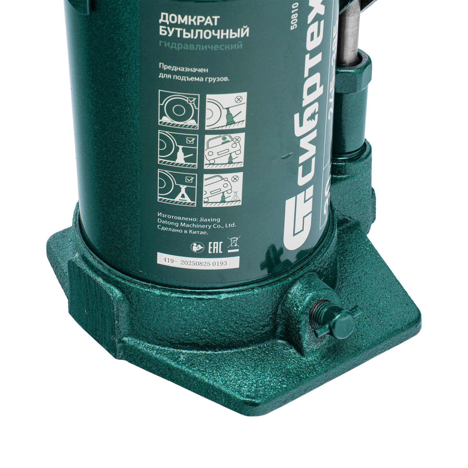 Домкрат гидравлический бутылочный Сибртех 50810 предназначен для подъема грузов массой до 30 т на высоту от 245 до 385 мм. Будет полезен при проведении техобслуживания машины в автосервисе или гараже.