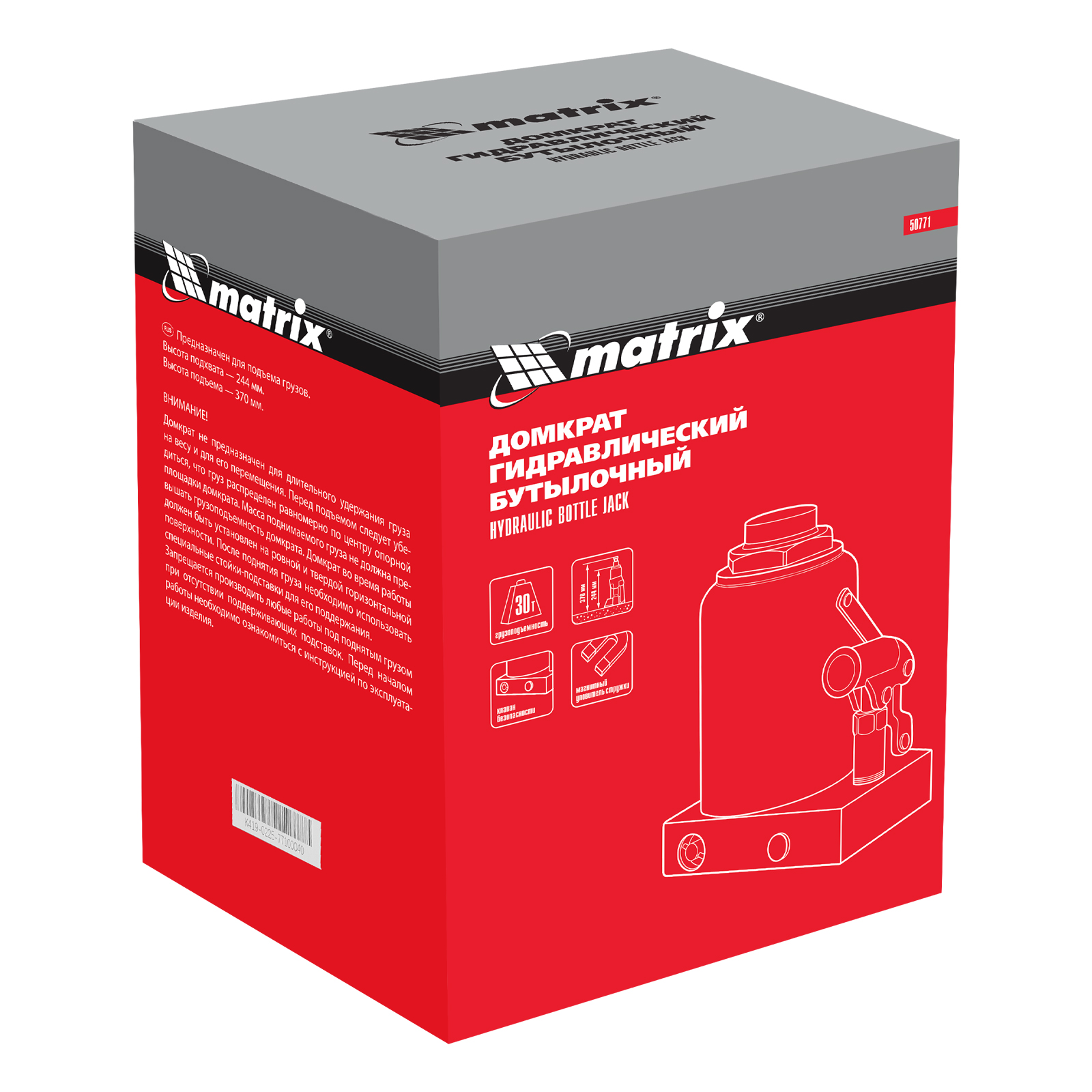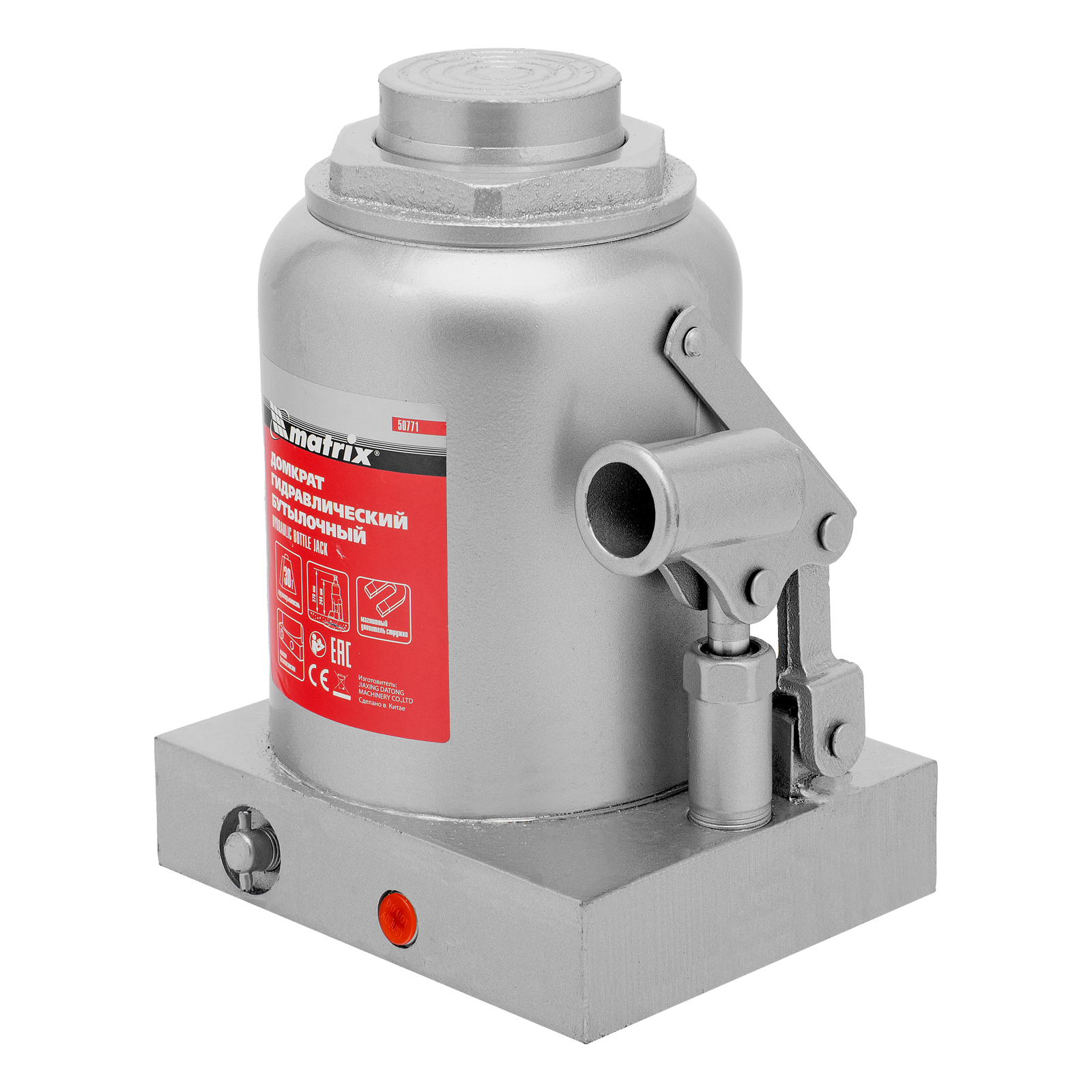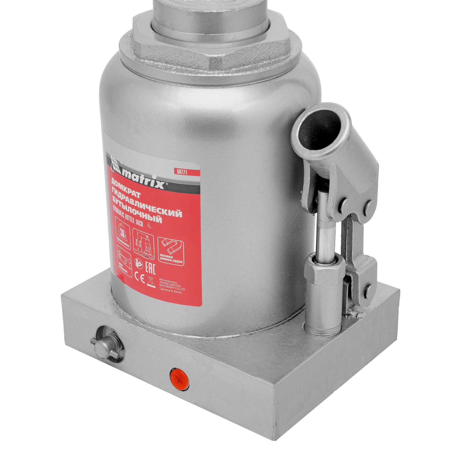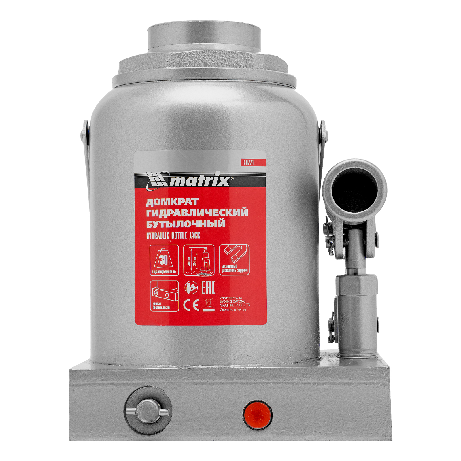 Гидравлический бутылочный домкрат Matrix 50771 предназначен для быстрого поднятия грузов массой до 30 т на высоту 244-370 мм. Будет полезен автолюбителям и мастерам СТО в качестве полупрофессионального инструмента. Встроенный магнитный уловитель металлической стружки защищает резиновые уплотнители от повреждений.