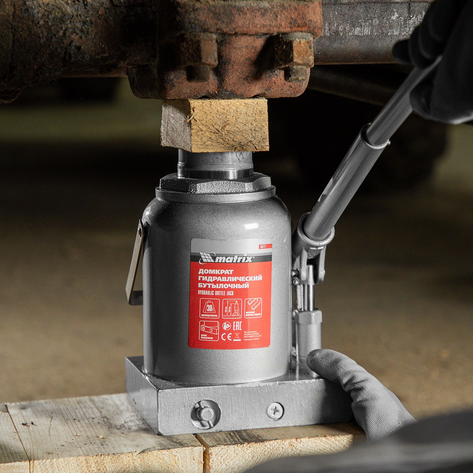 Домкрат гидравлический бутылочный, 30 т, h подъема 244-370 мм Matrix в Санкт-Петербурге
