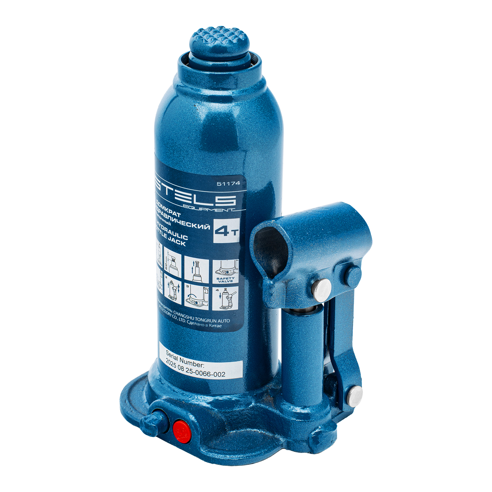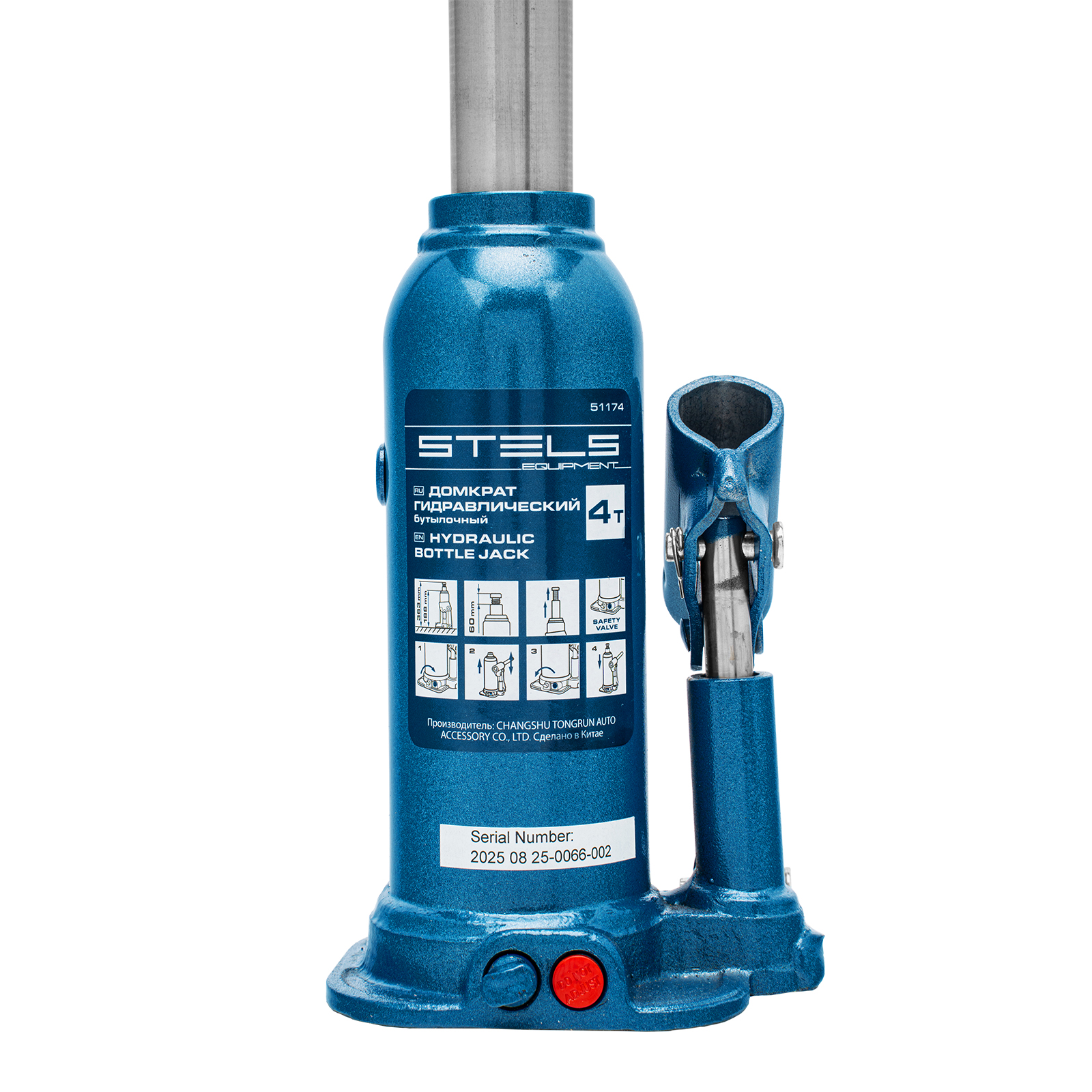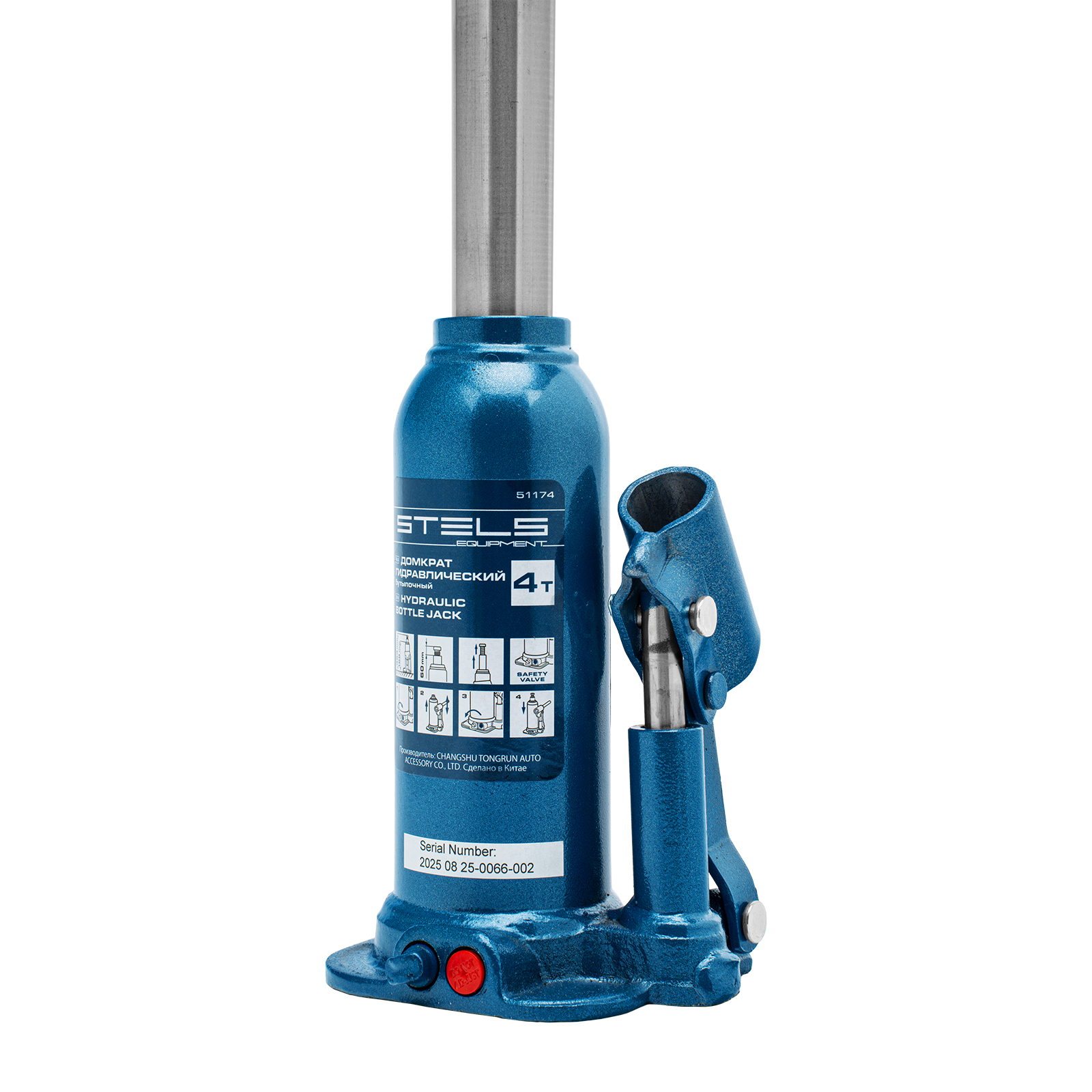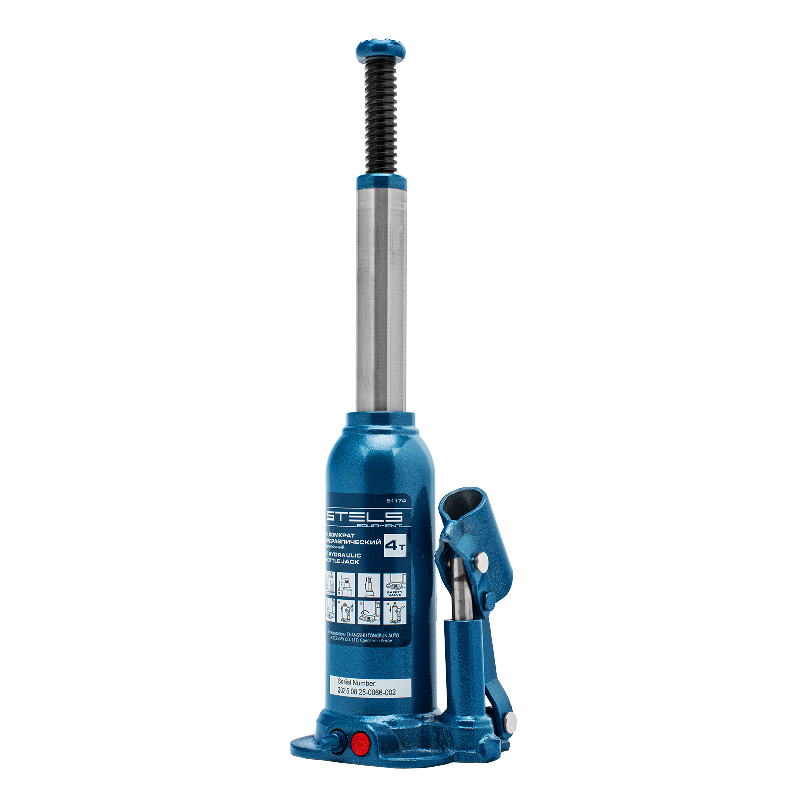 Гидравлический бутылочный домкрат Stels 51174 в пластиковом кейсе предназначен для поднятия грузов весом до 4 т на высоту 188-363 мм. Он не занимает много места и легко помещается в багажник, поэтому его можно брать с собой в дорогу или хранить в гараже. Используется для самостоятельного ремонта авто, также подходит для профессионального применения на станциях технического обслуживания.
