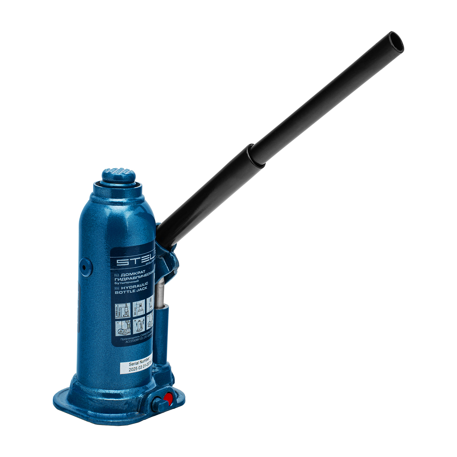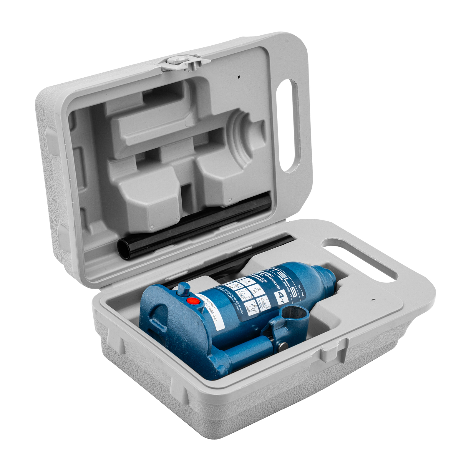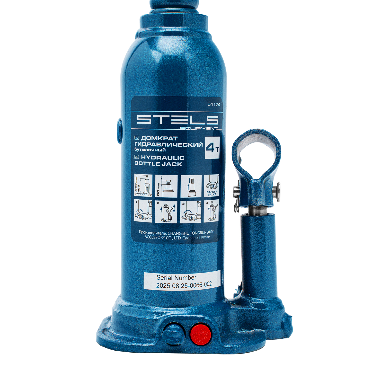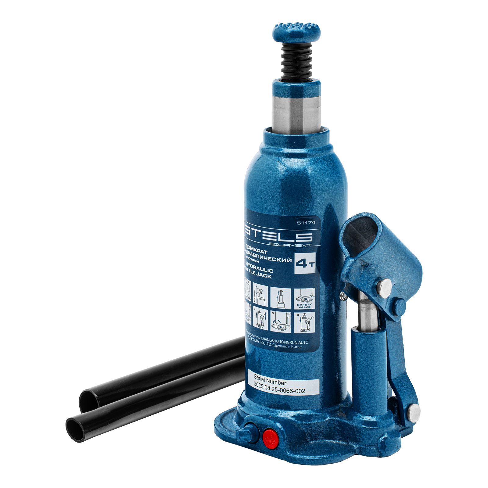 Гидравлический бутылочный домкрат Stels 51174 в пластиковом кейсе предназначен для поднятия грузов весом до 4 т на высоту 188-363 мм. Он не занимает много места и легко помещается в багажник, поэтому его можно брать с собой в дорогу или хранить в гараже. Используется для самостоятельного ремонта авто, также подходит для профессионального применения на станциях технического обслуживания.