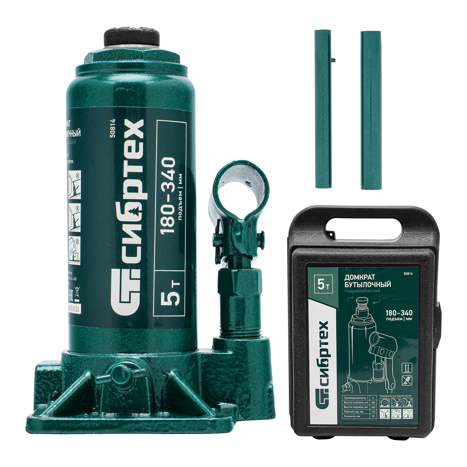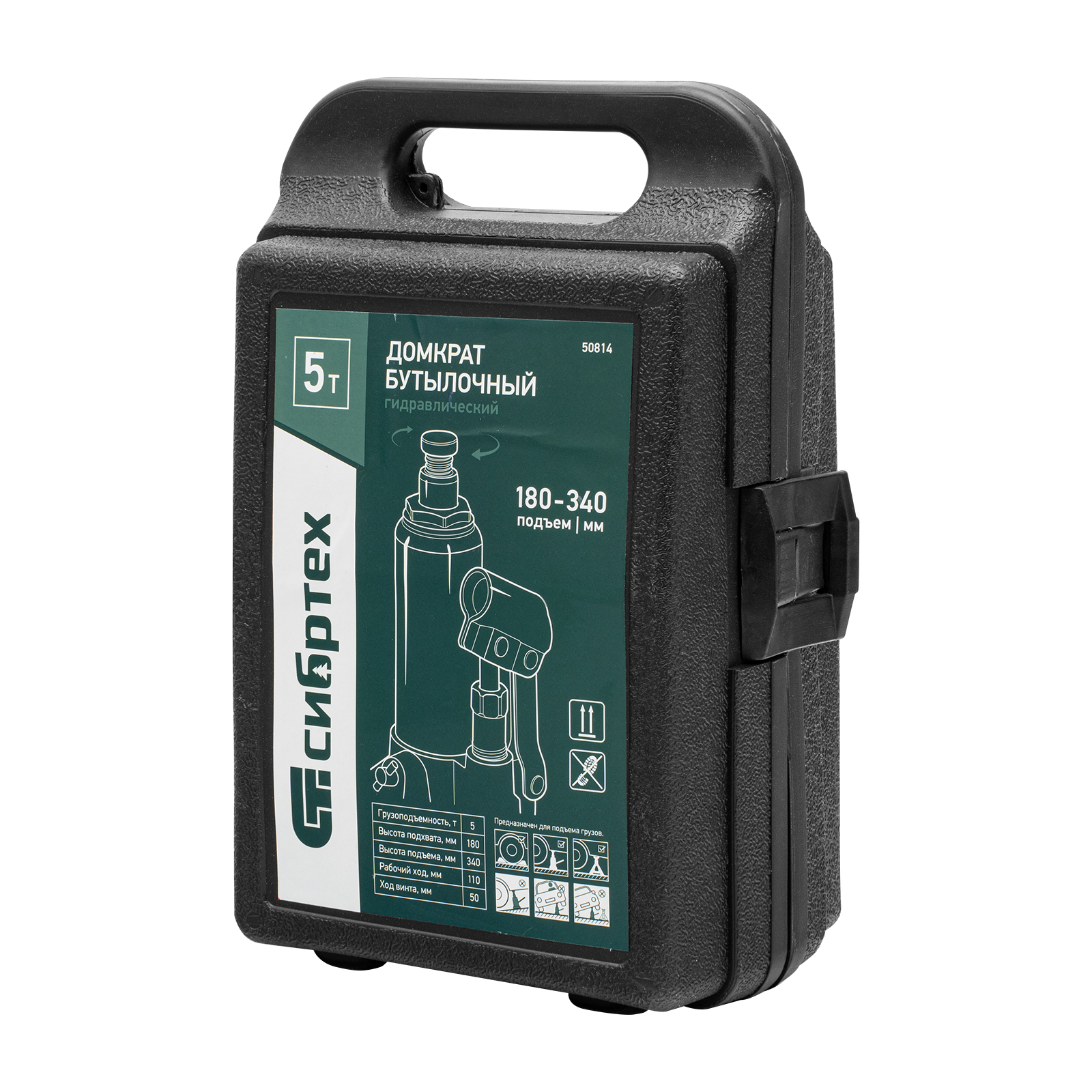 Домкрат гидравлический бутылочный, 5 т, 180-340 мм, в пласт. кейсе Сибртех в Санкт-Петербурге