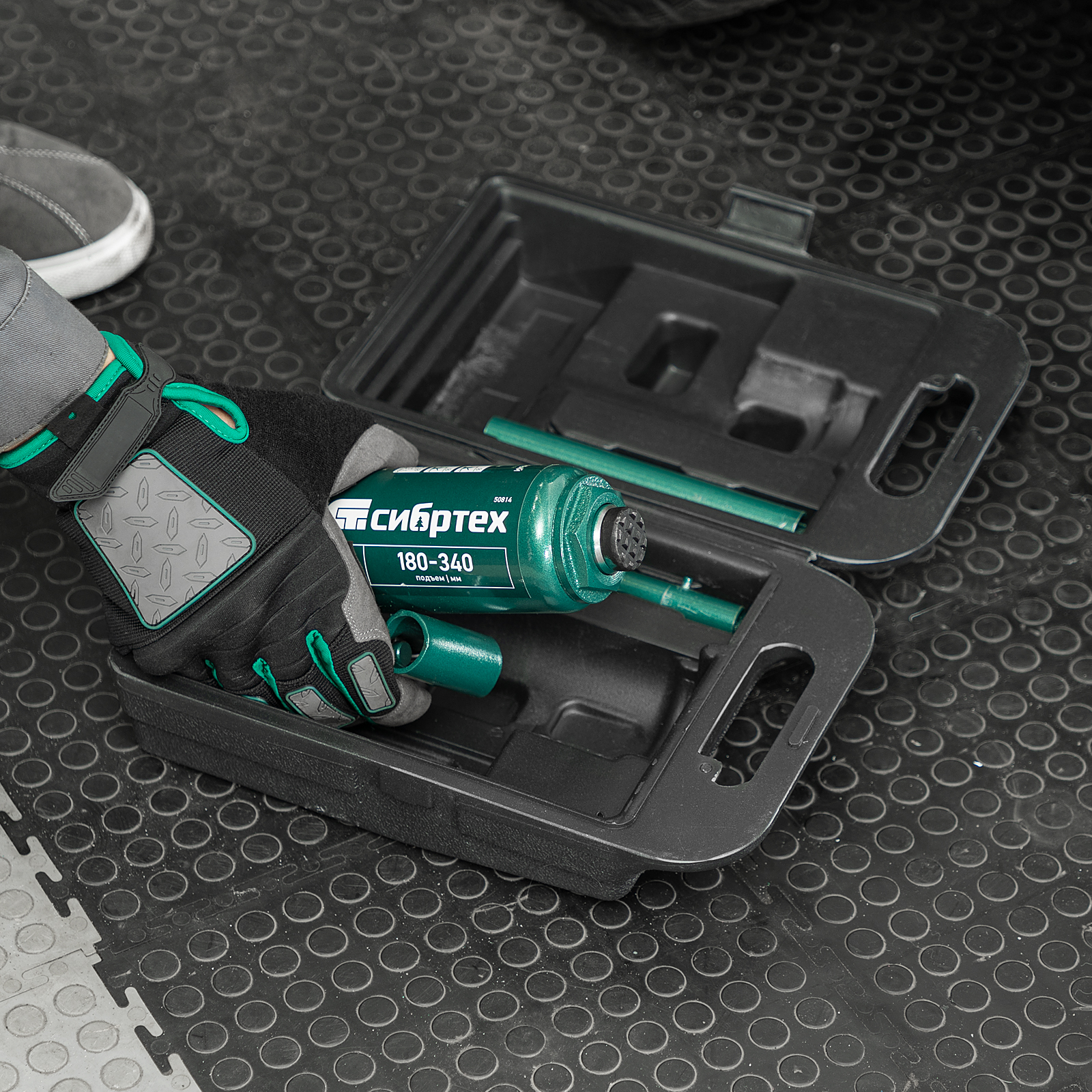 - Удобное хранение и транспортировка — домкрат весит всего 2,8 кг и поставляется в прочном пластиковом кейсе с рукояткой.