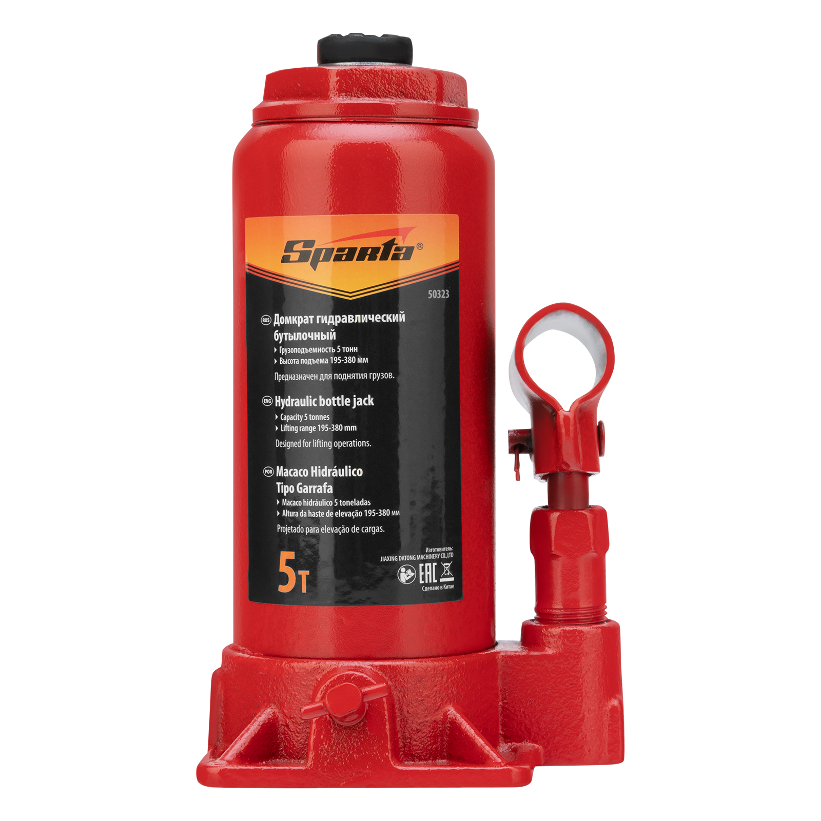 Домкрат гидравлический бутылочный, 5 т, h подъема 195-380 мм Sparta в Санкт-Петербурге