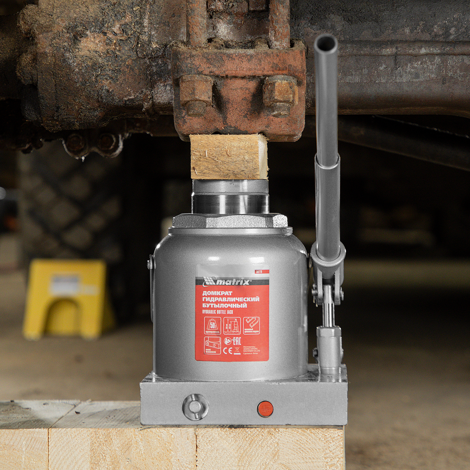 Гидравлический бутылочный домкрат Matrix 50779 поднимает грузы весом до 50 т на высоту 236-356 мм и может использоваться в гараже, на станции ТО или строительной площадке. Встроенный магнитный уловитель собирает металлическую стружку, образующуюся в процессе работы, что защищает домкрат от преждевременного износа.