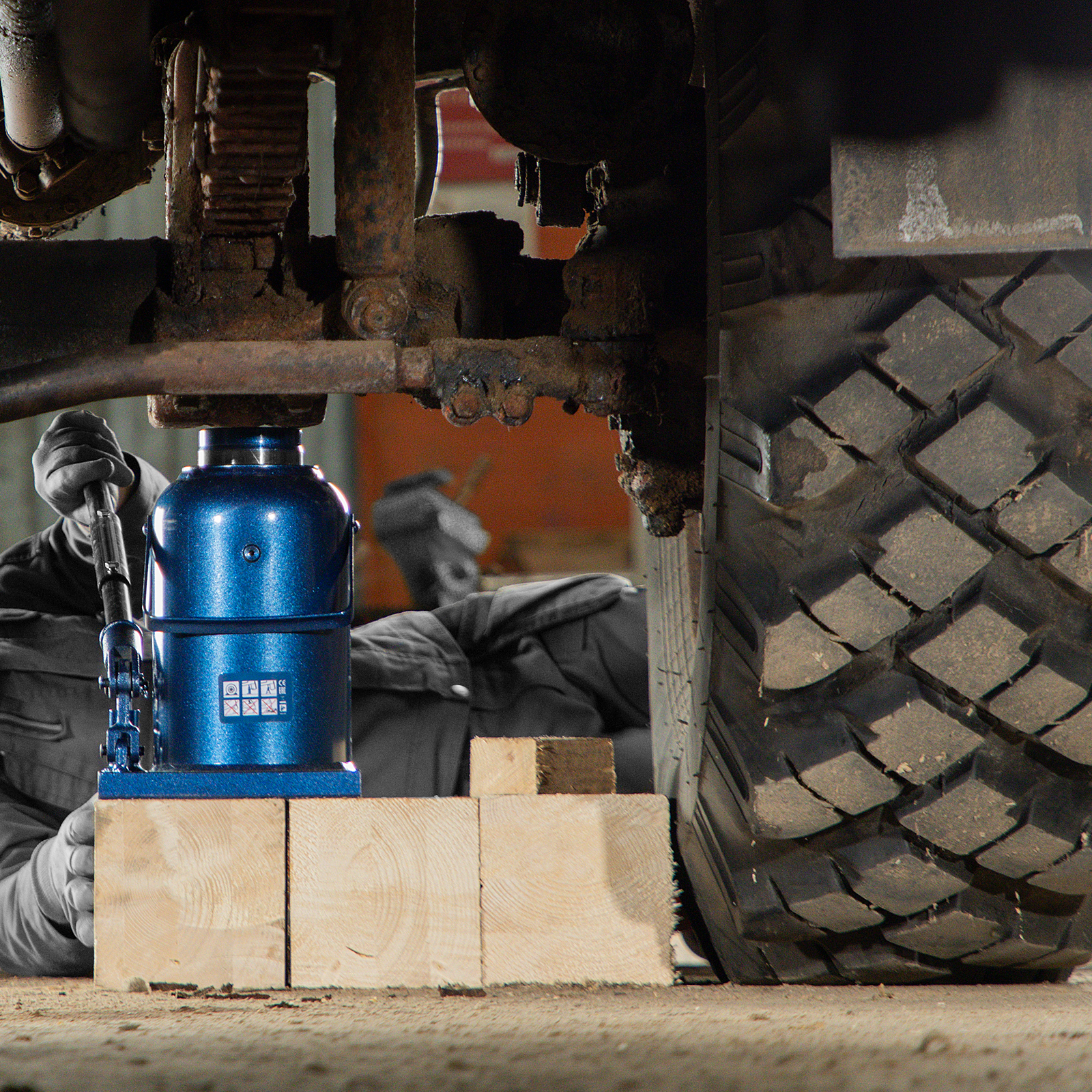 - Безопасная эксплуатация — благодаря предохранительному клапану домкрат не поднимает грузы тяжелее 50 т.