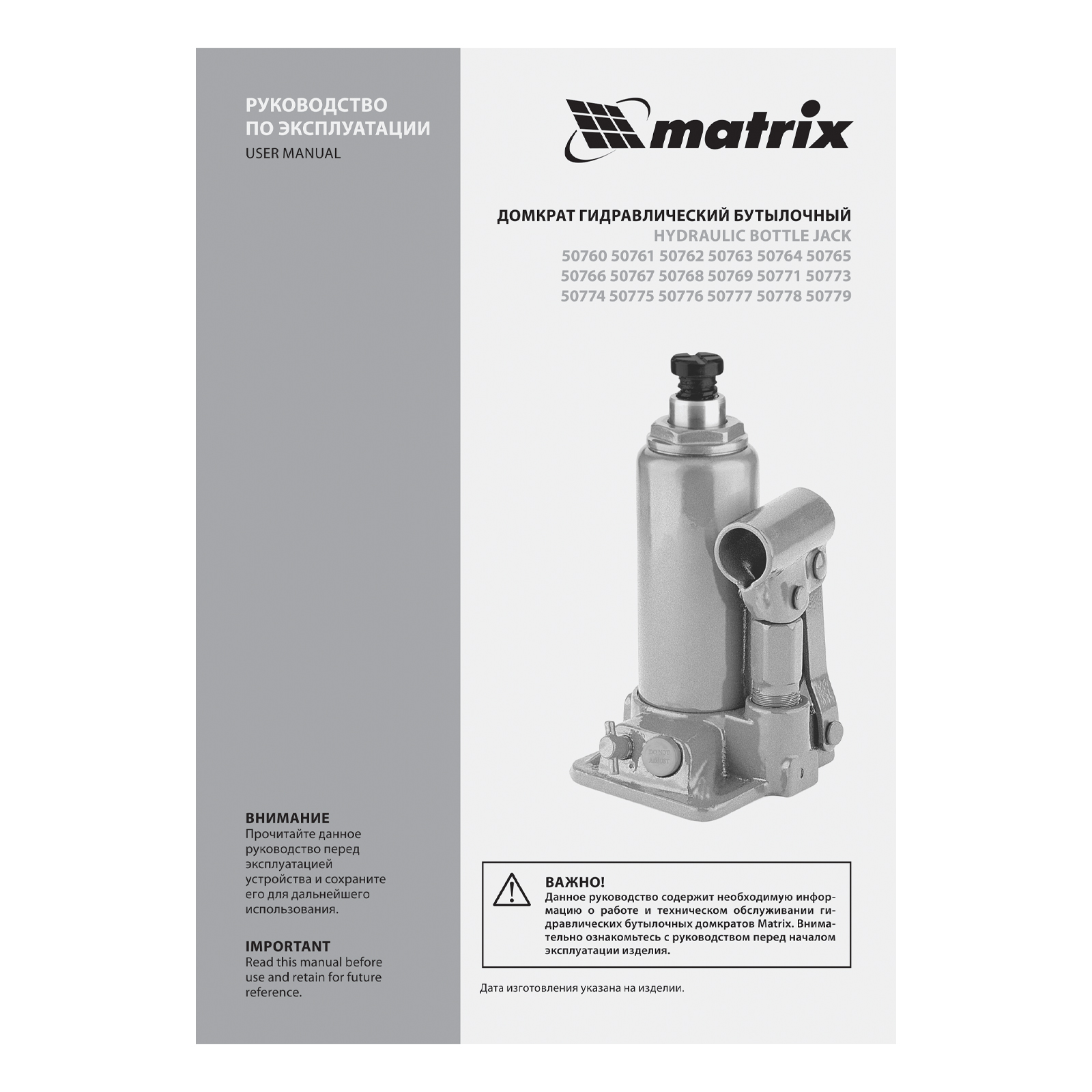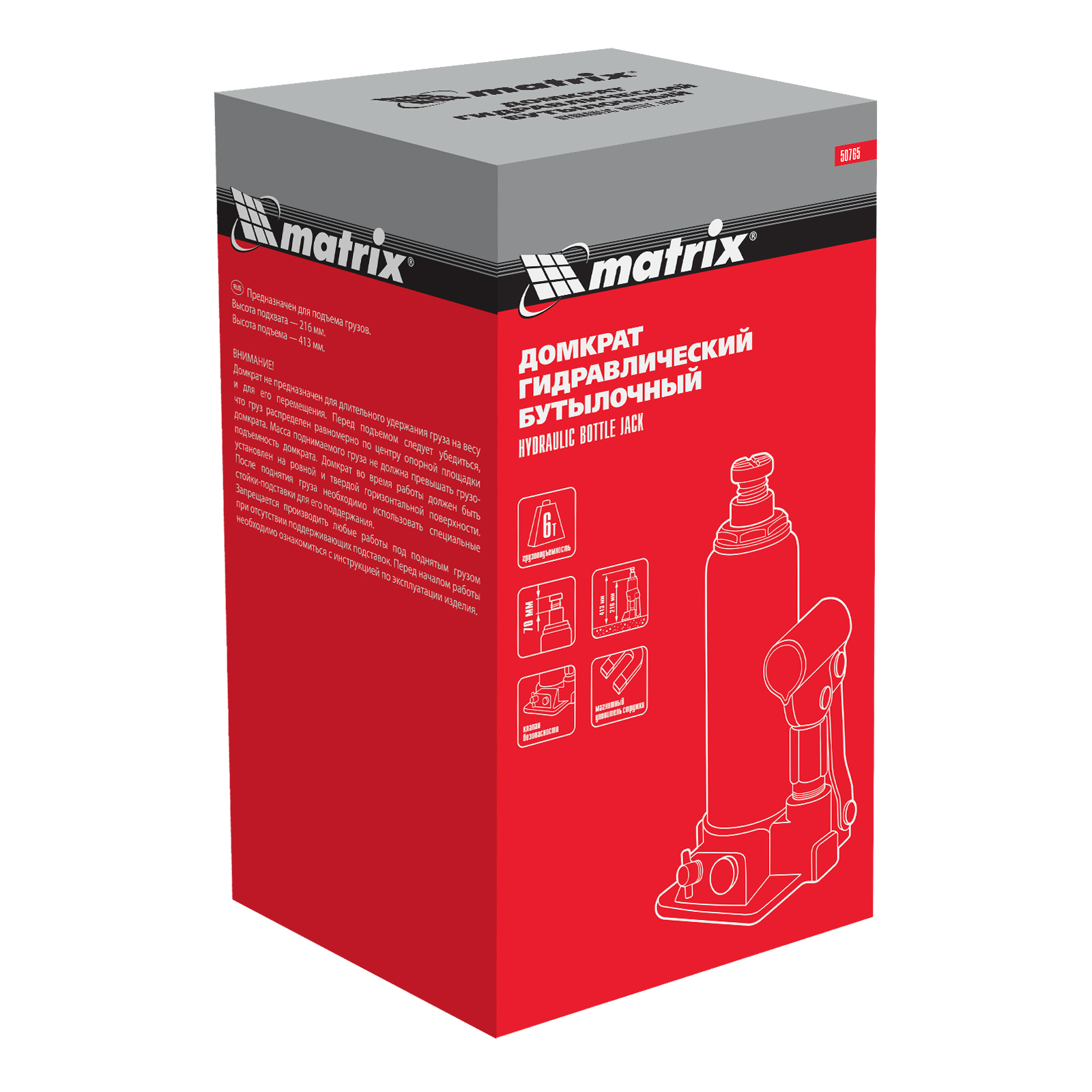 Домкрат гидравлический бутылочный, 6 т, h подъема 216-413 мм Matrix в Санкт-Петербурге