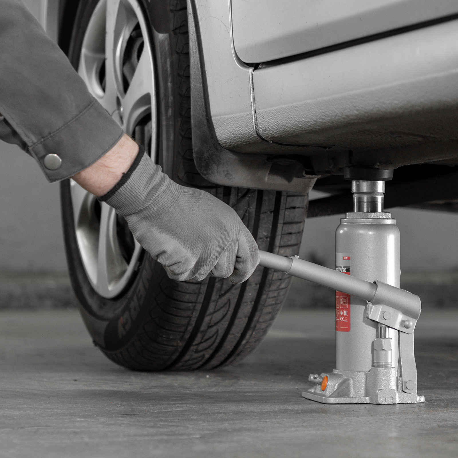 - Удобная транспортировка — домкрат весом 4,3 кг легко помещается в багажник авто.