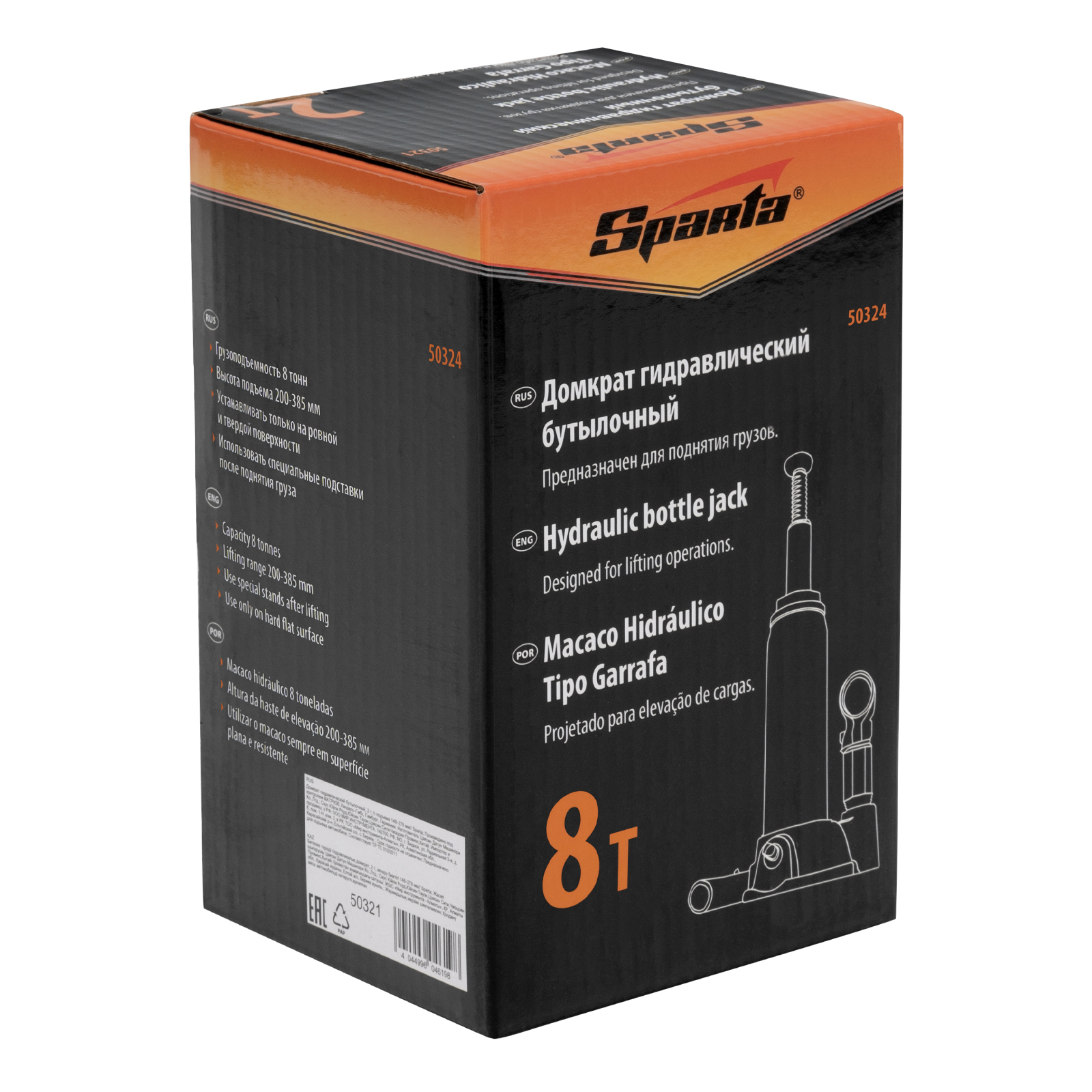 Домкрат гидравлический бутылочный, 8 т, h подъема 200-385 мм Sparta в Санкт-Петербурге
