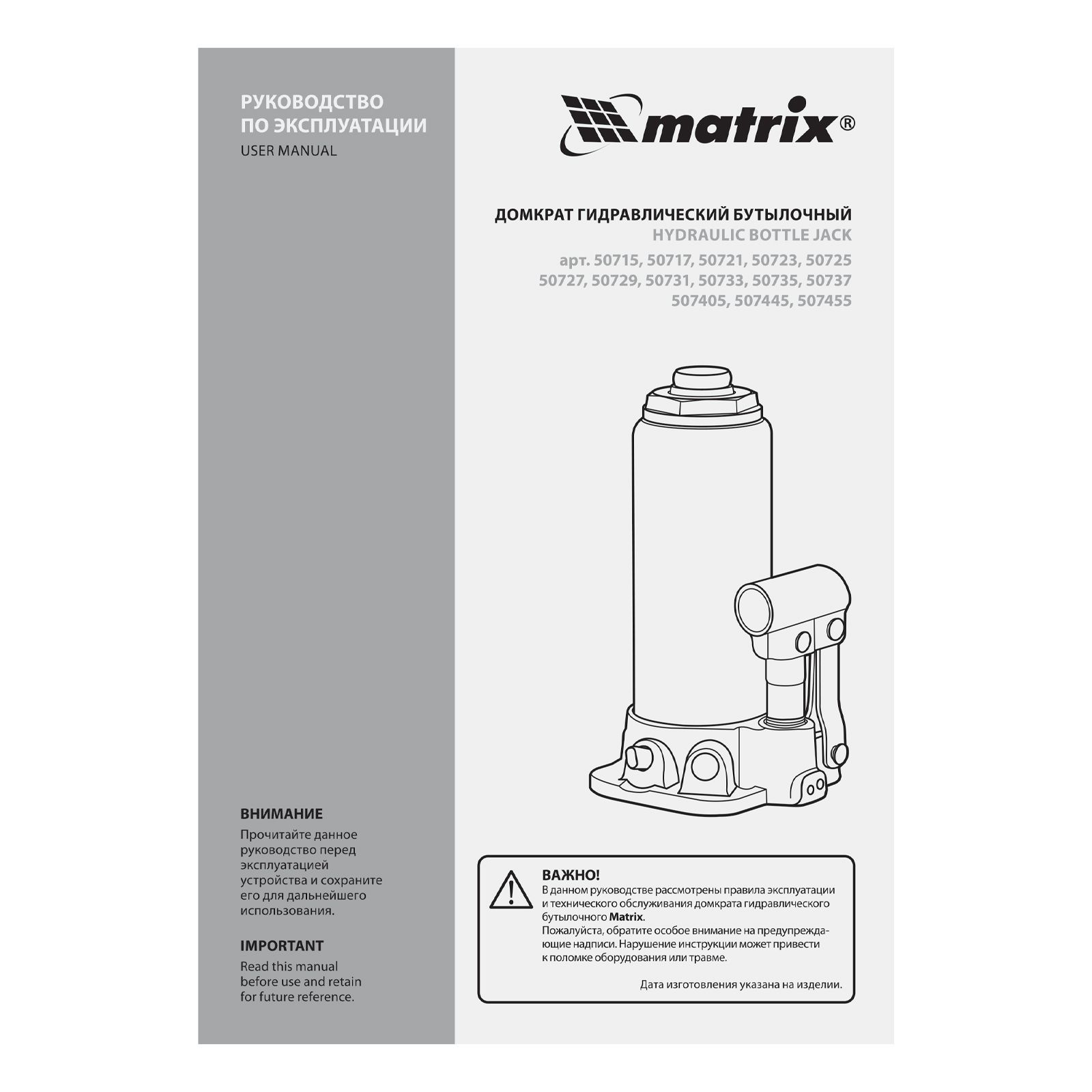 Домкрат гидравлический бутылочный Matrix 50723 используется для поднятия грузов массой до 8 т на высоту 230-457 мм. Подходит для автомобилей с высоким клиренсом. Домкрат будет полезен автолюбителям в гараже и дороге, а также сотрудникам СТО.