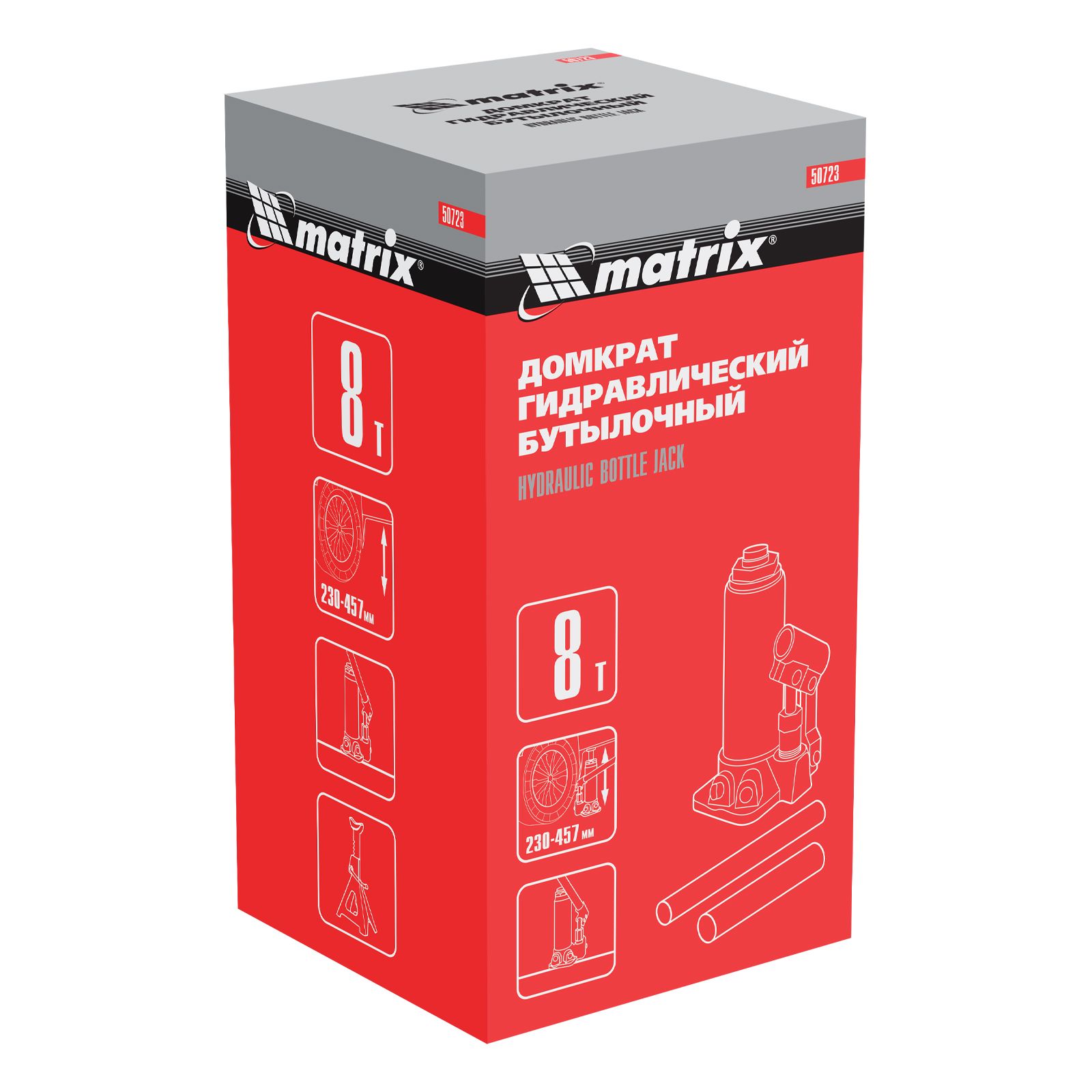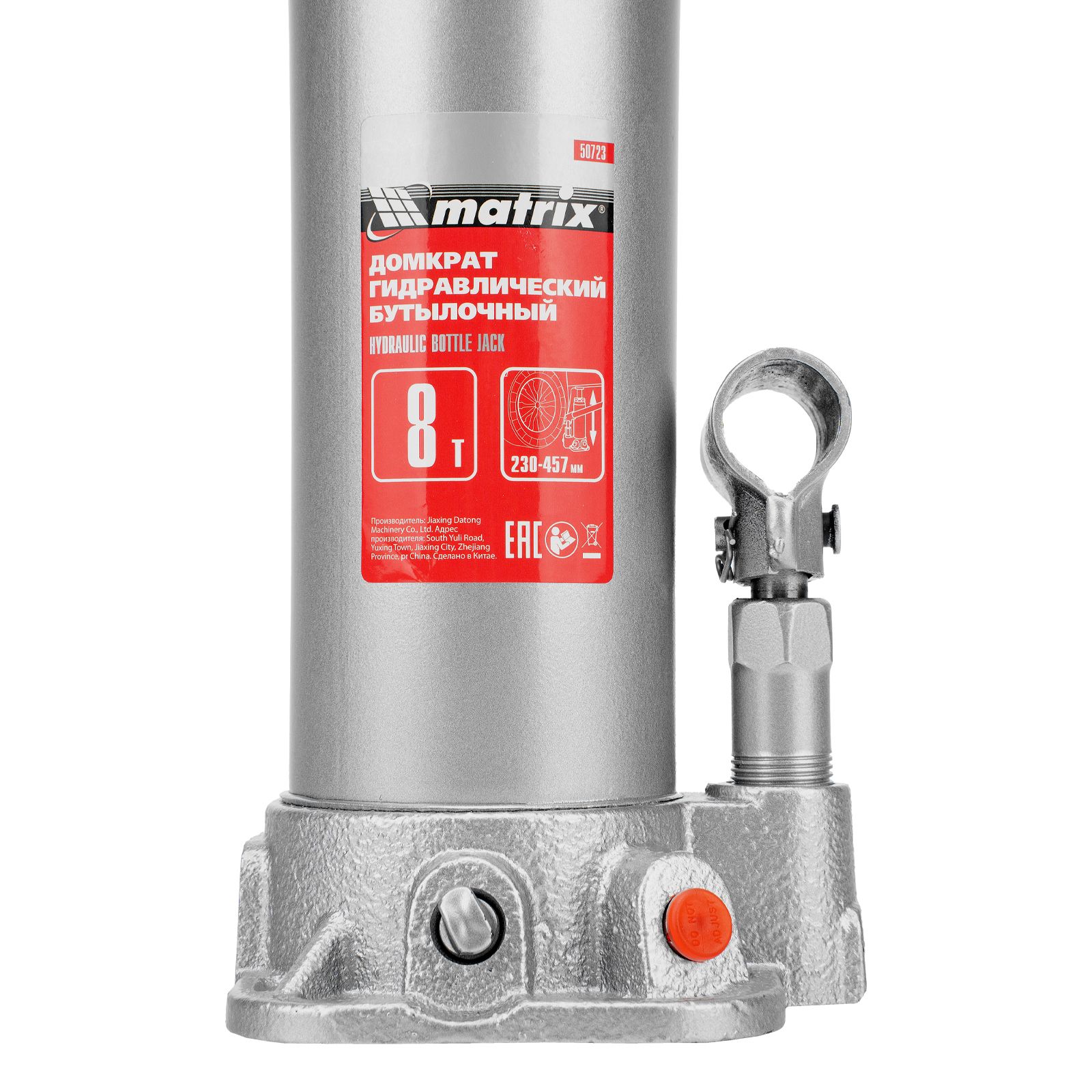 Домкрат гидравлический бутылочный, 8 т, высота подъема 230-457 мм Matrix в Санкт-Петербурге