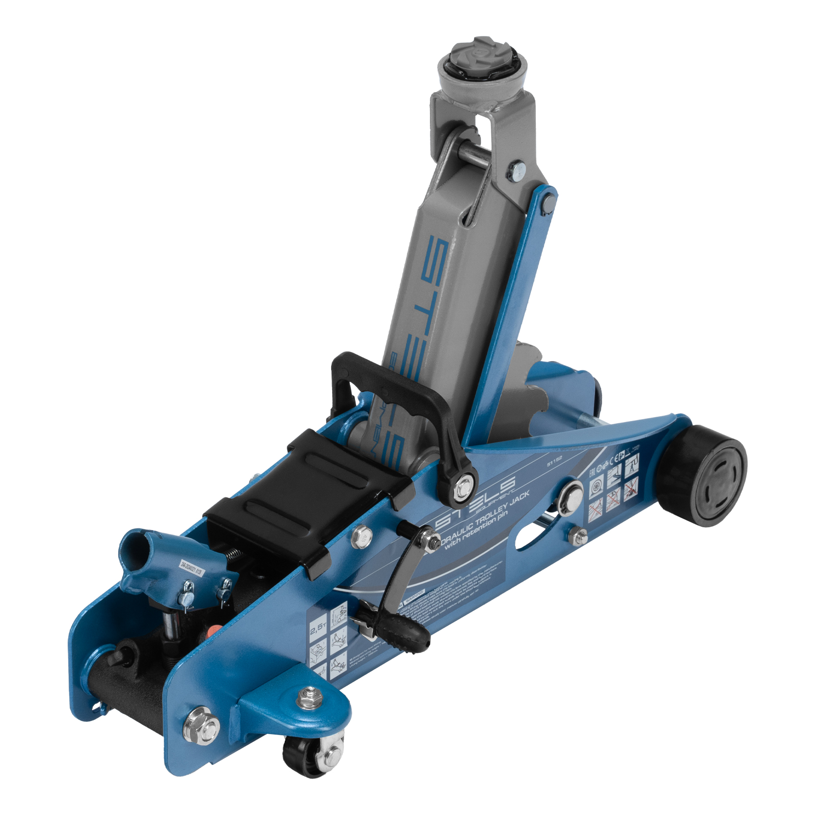 Подкатной гидравлический домкрат Stels Safety Pin 51152 с фиксатором, с высотой подхвата 140 мм, позволяет поднимать грузы весом до 2,5 т на высоту 385 мм. За счет низкого подхвата используется для обслуживания автомашин со стандартным дорожным просветом. Домкрат подходит для самостоятельного обслуживания авто.