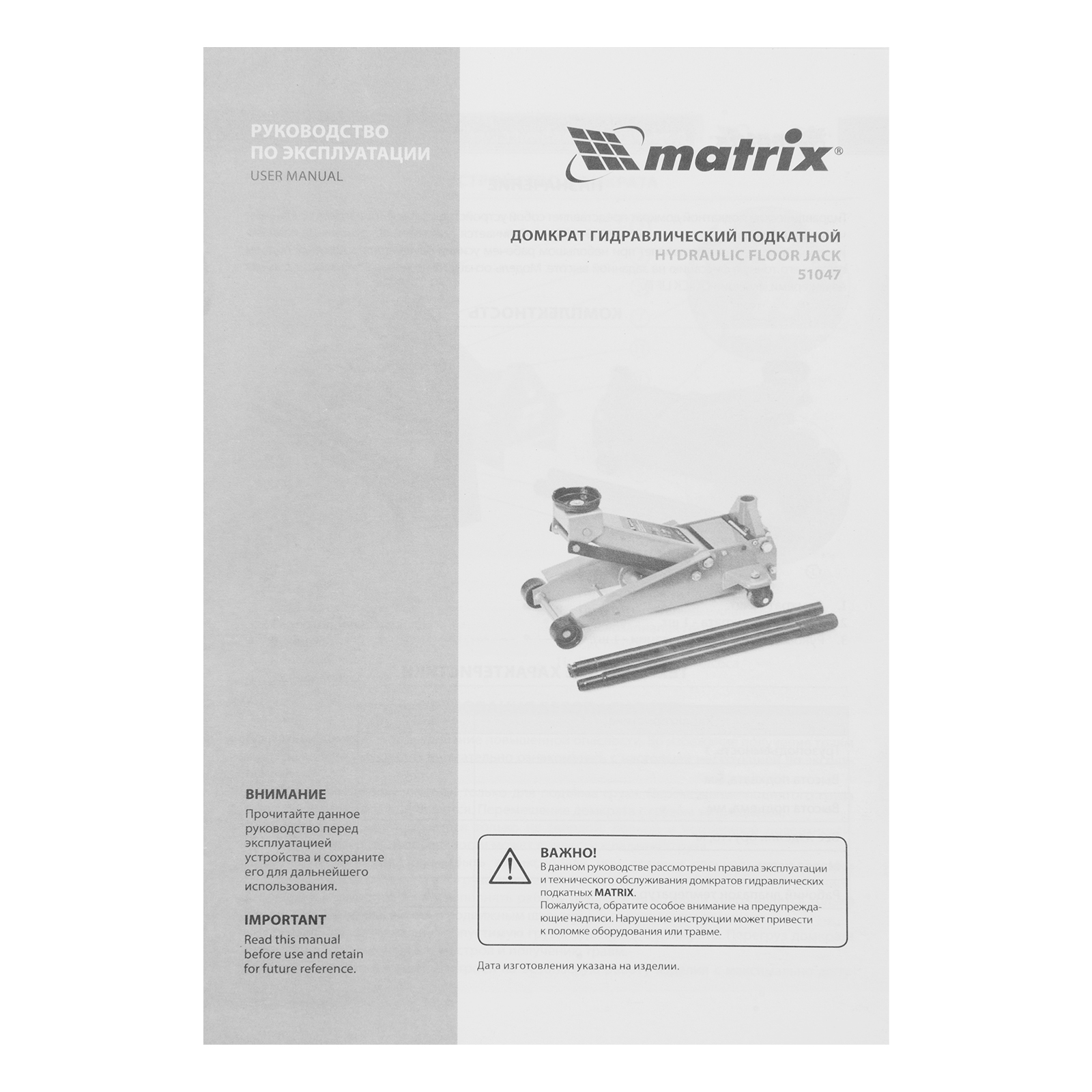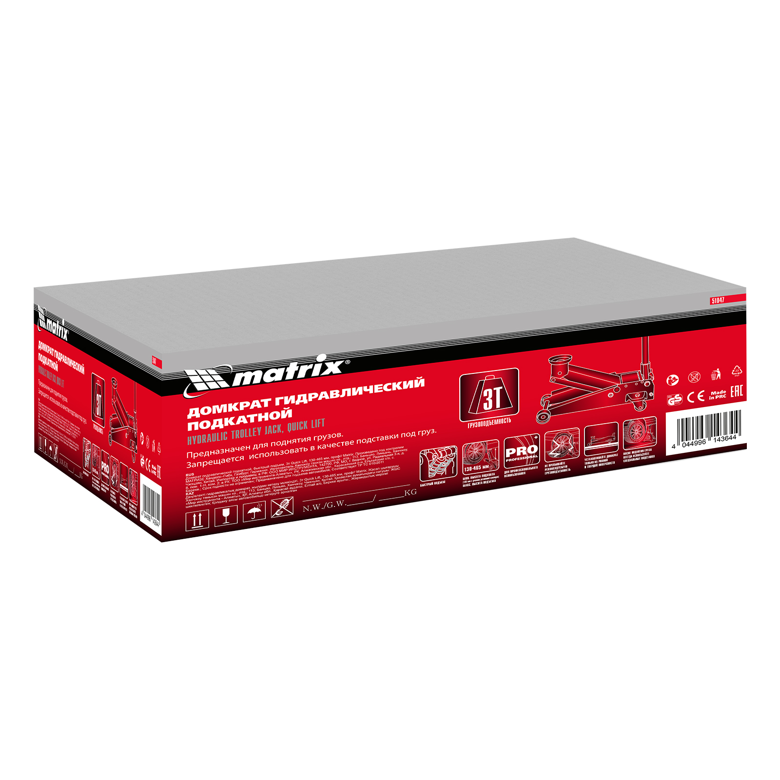Домкрат гидравлический подкатной профессиональный, быстрый подъем, 3 т, 130-465 мм. Quick Matrix в Санкт-Петербурге