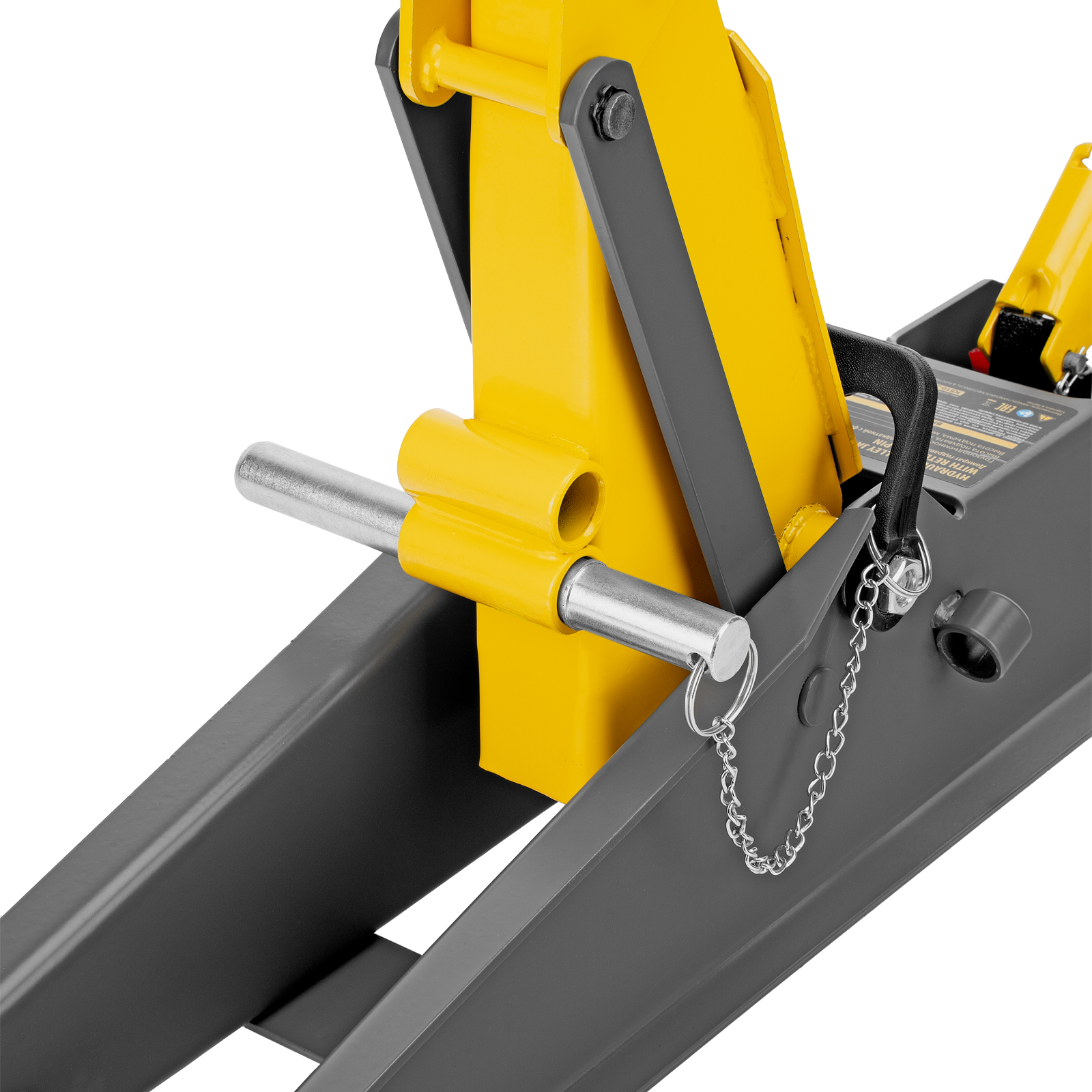 Гидравлический подкатной домкрат Denzel 51261 с фиксатором имеет высоту подхвата 190 мм и предназначен для плавного подъема грузов массой до 3 т (в том числе автомобилей класса SUV) на высоту до 532 мм. Страховочный штифт позволяет фиксировать подъемный рычаг на высоте 410 и 450 мм для безопасной работы. Домкрат пригодится владельцам легковых автомобилей со стандартным клиренсом.
