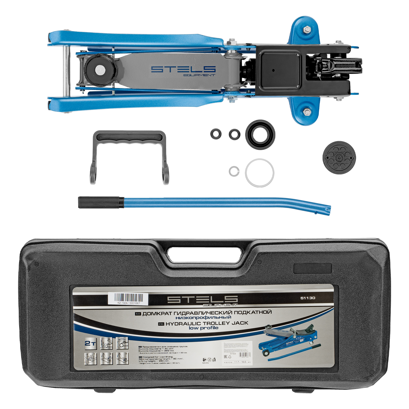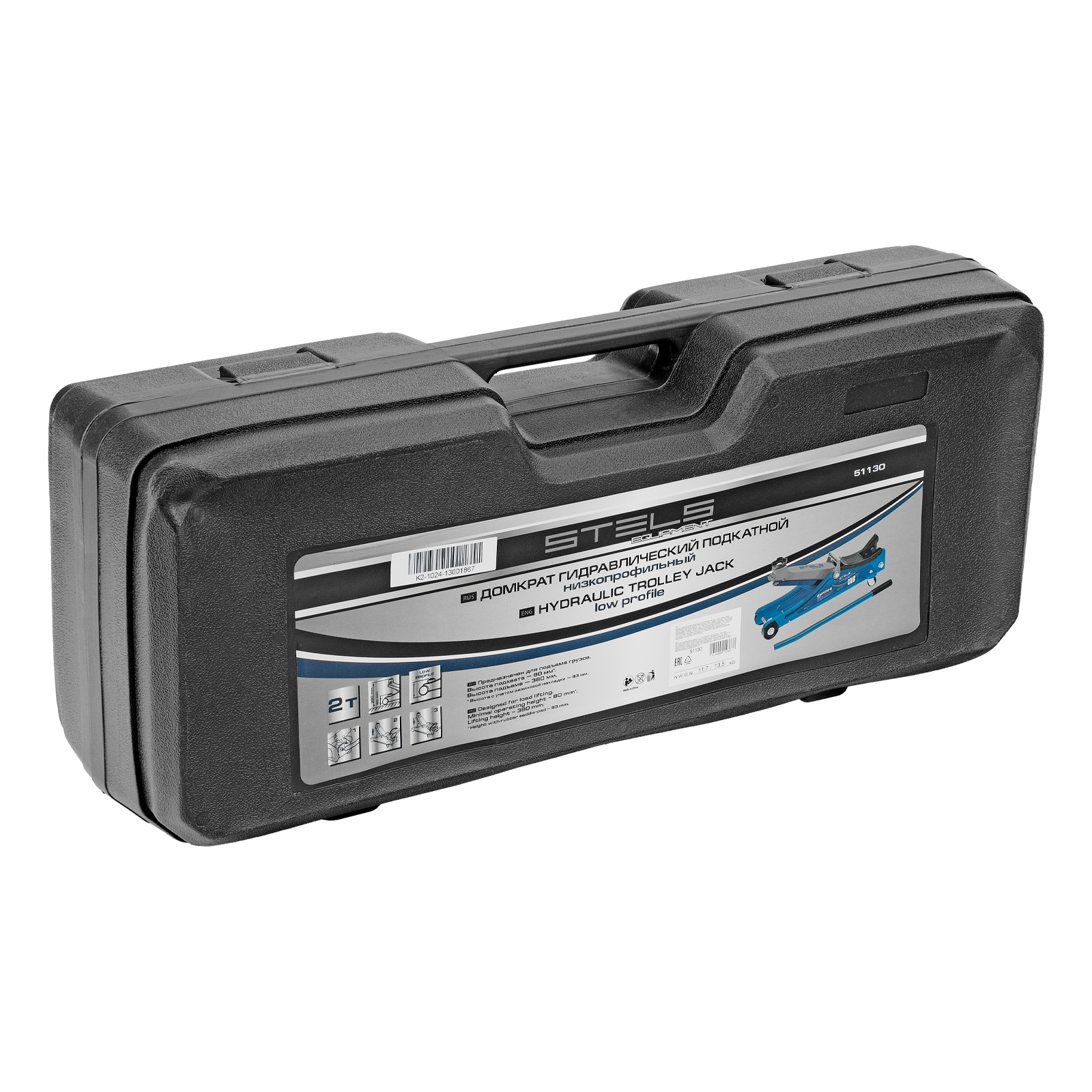 Домкрат гидравлический подкатной в пластиковом кейсе, 2 т, Low Profile, 80-380 мм Stels в Санкт-Петербурге