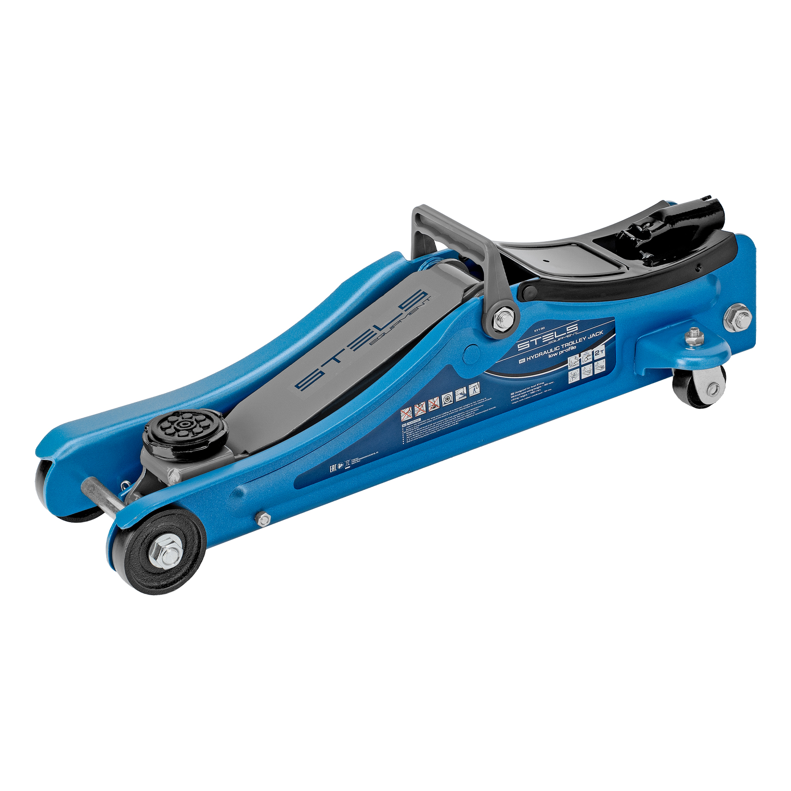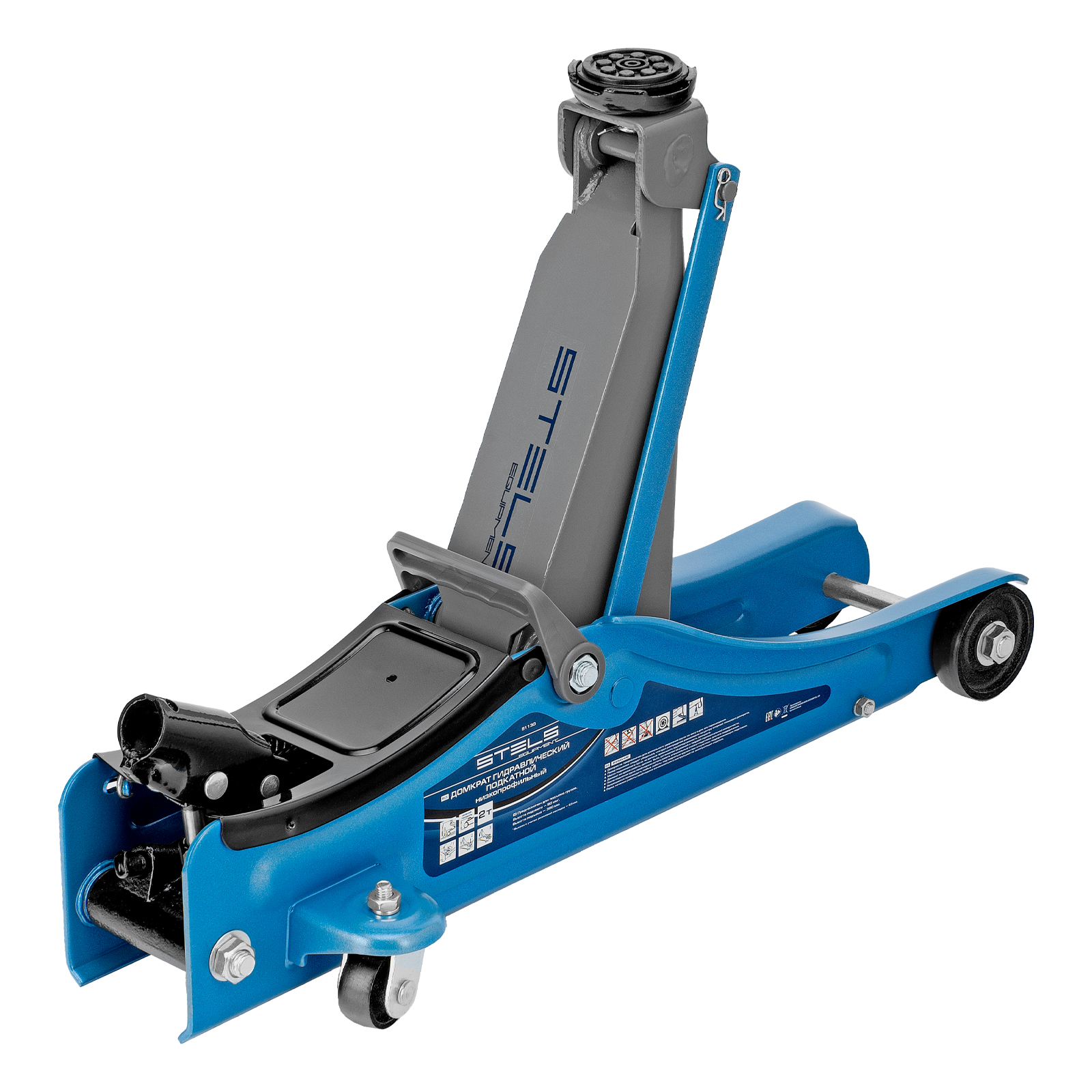- Удобная эксплуатация — переставная ручка облегчает перемещение и выкатывание домкрата из-под груза.