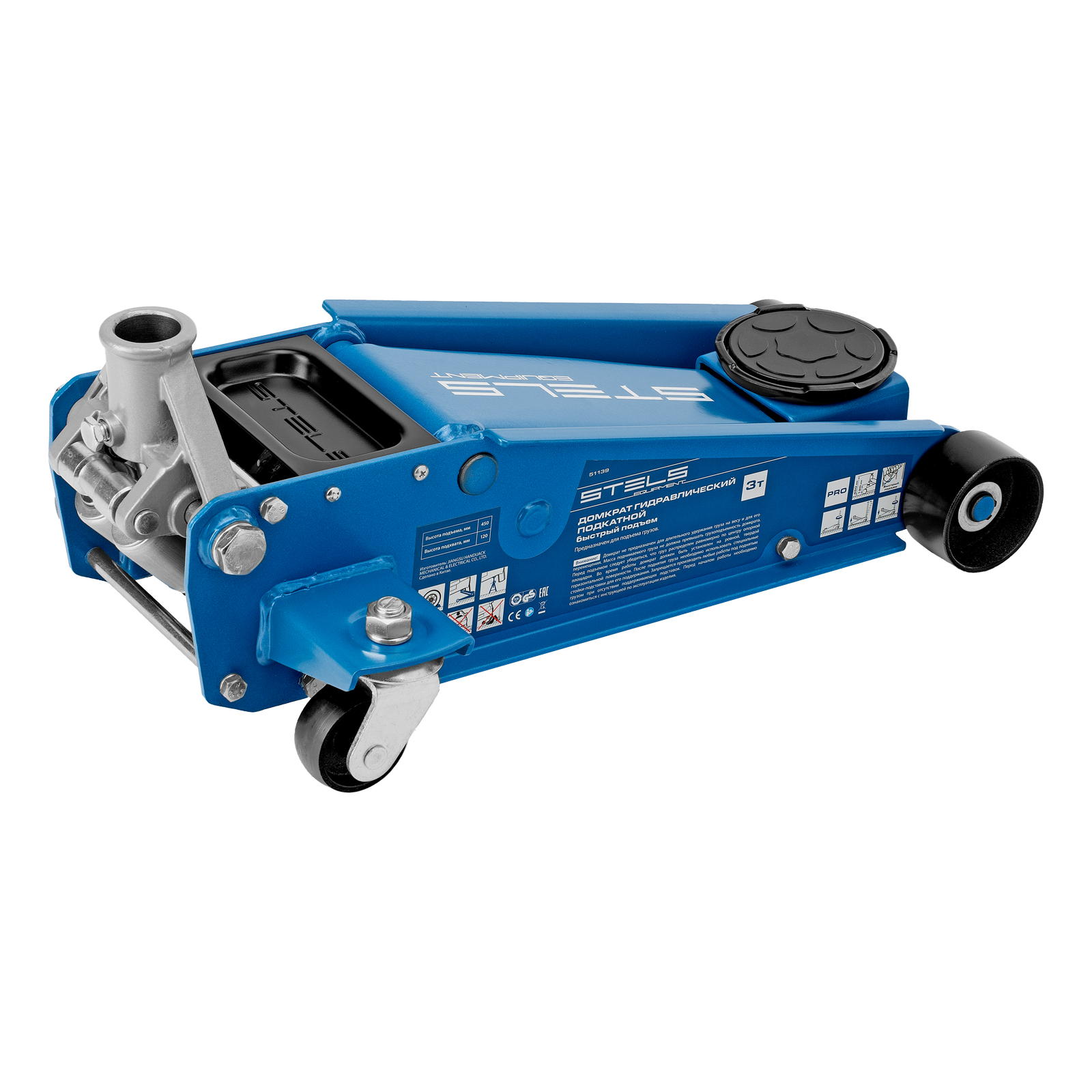Профессиональный подкатной гидравлический домкрат Stels 51139 используется для быстрого подъема на высоту 120-450 мм всех типов автомобилей со стандартным клиренсом и массой до 3 тонн. Благодаря системе быстрого подъема QUICK LIFT для достижения предельной высоты достаточно 6 качков рукоятки. Домкрат подходит для использования на станциях техобслуживания и шиномонтажа.