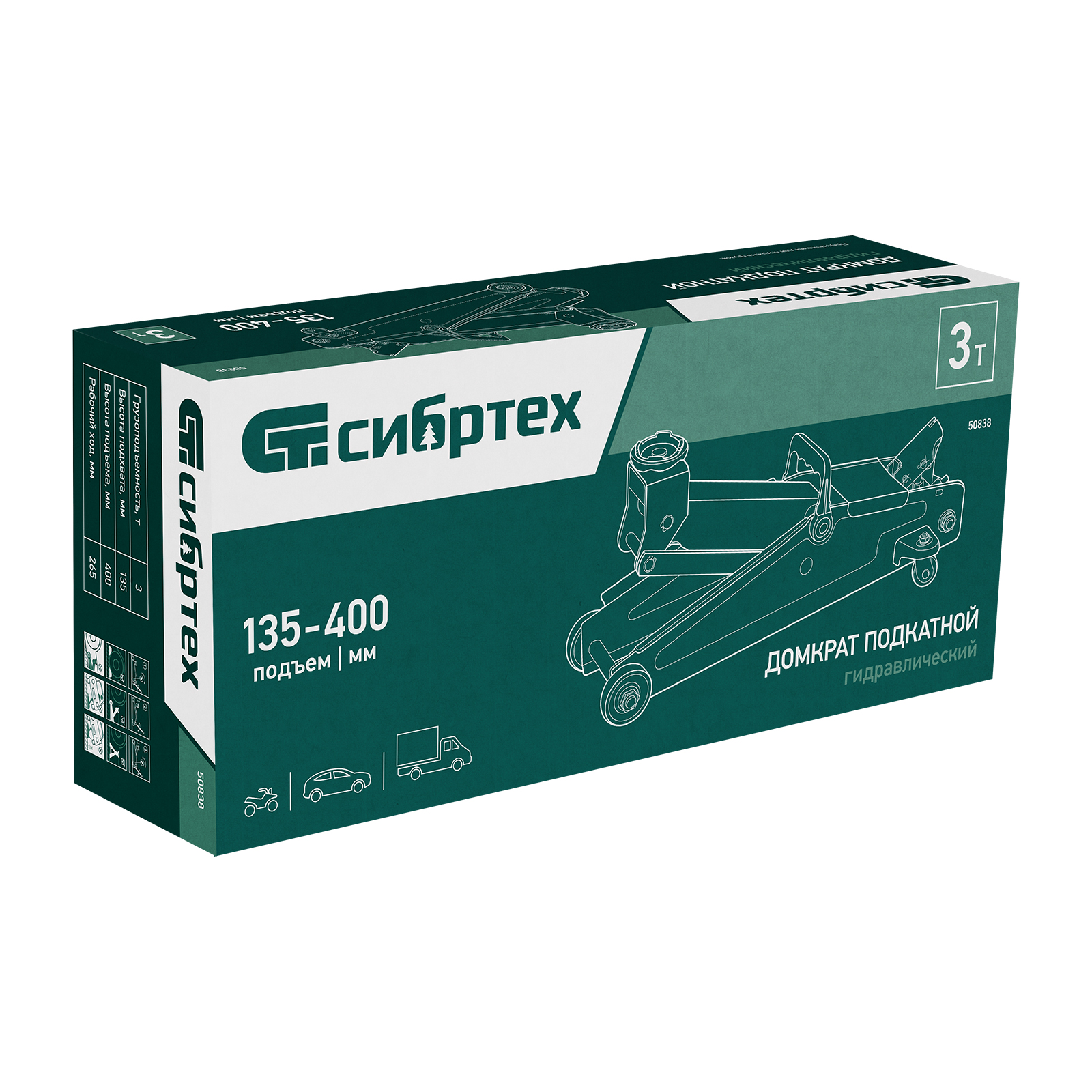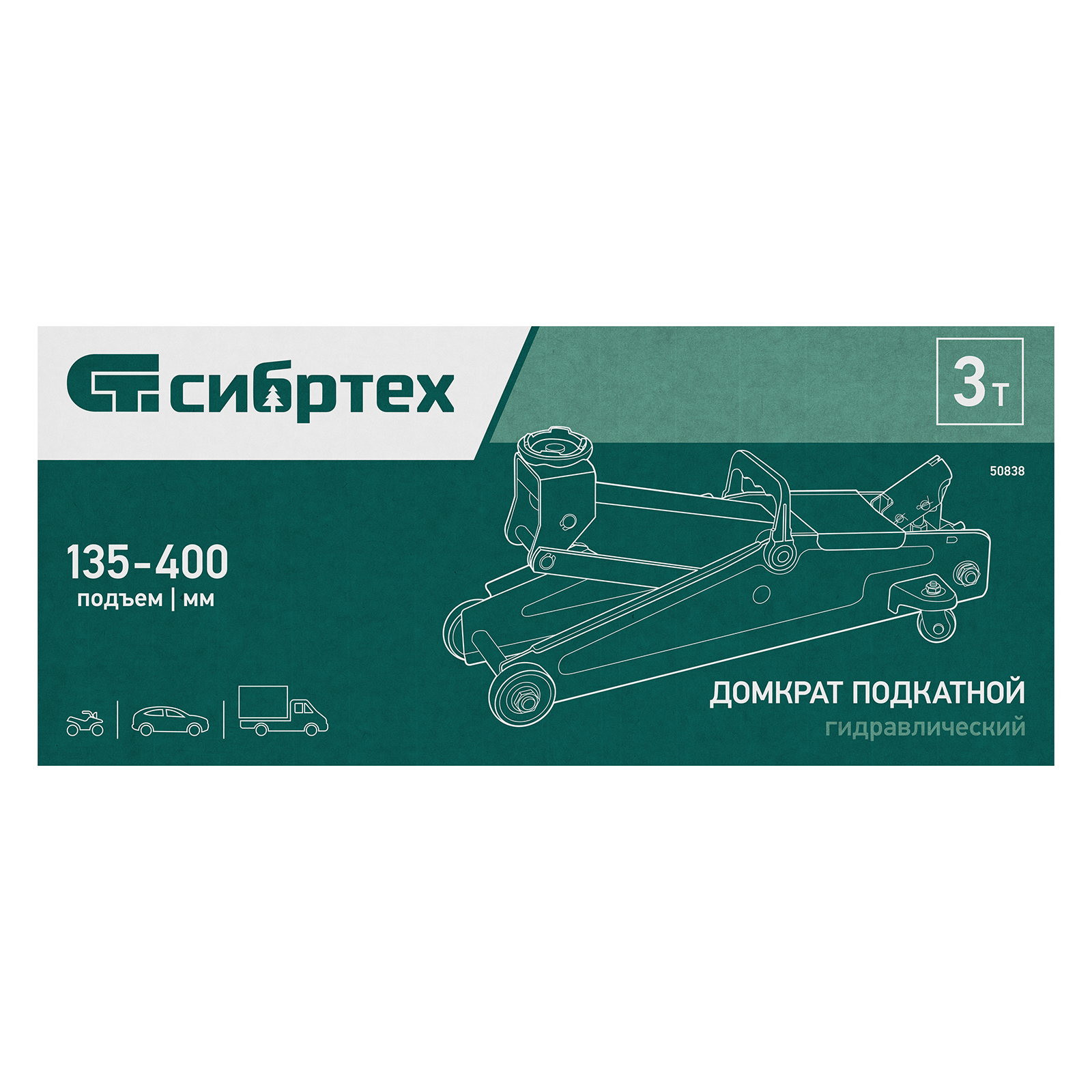 Домкрат гидравлический подкатной, 3 т, 135-400 мм Сибртех в Санкт-Петербурге