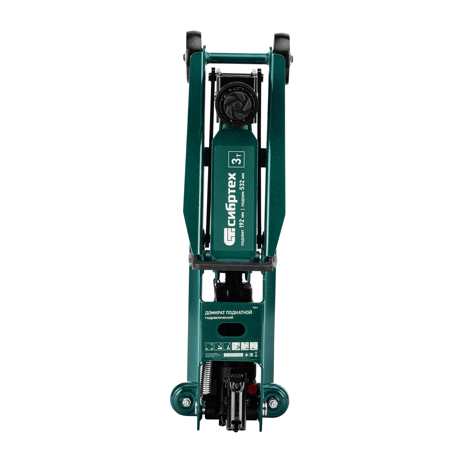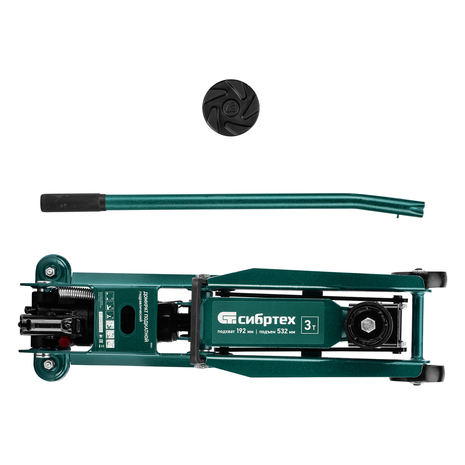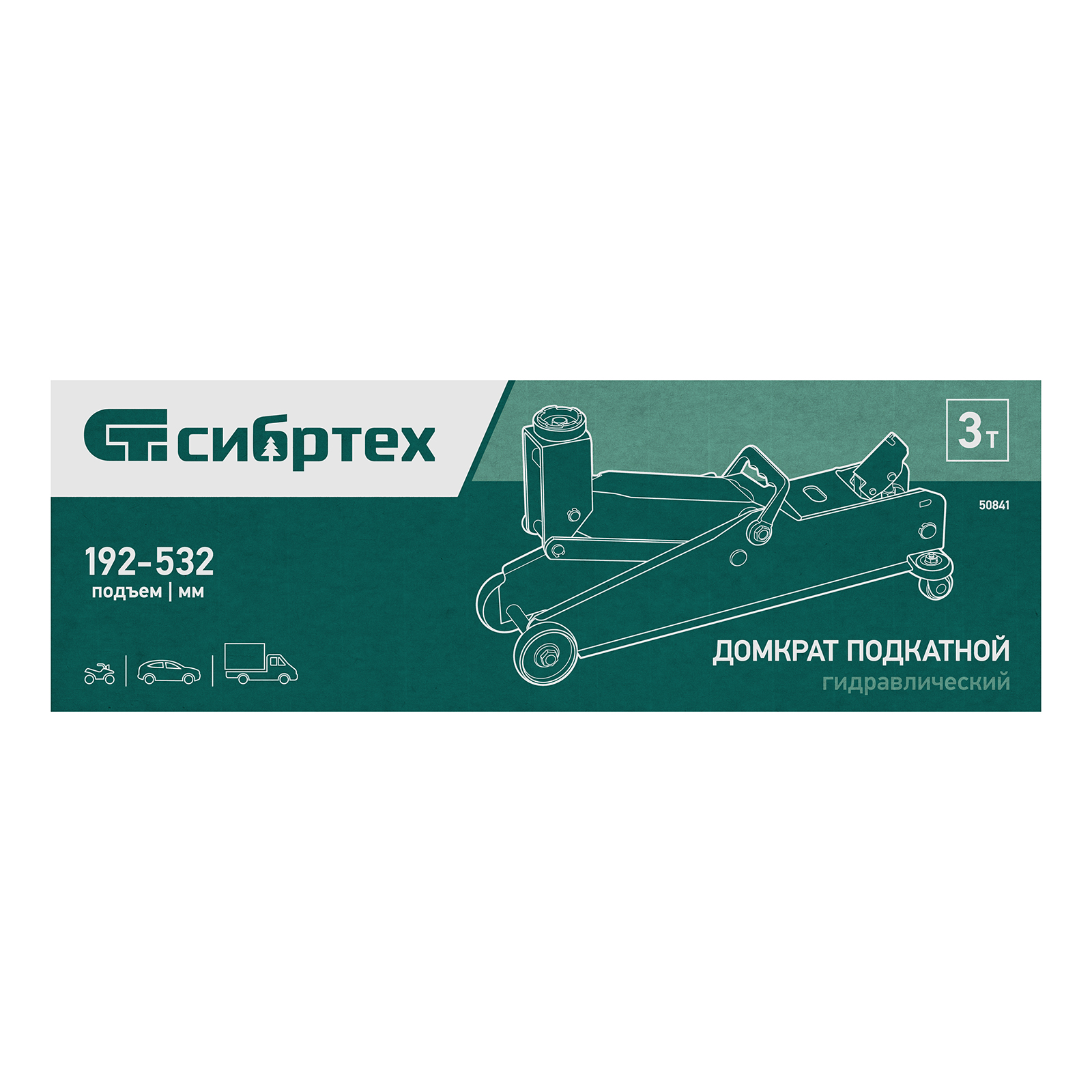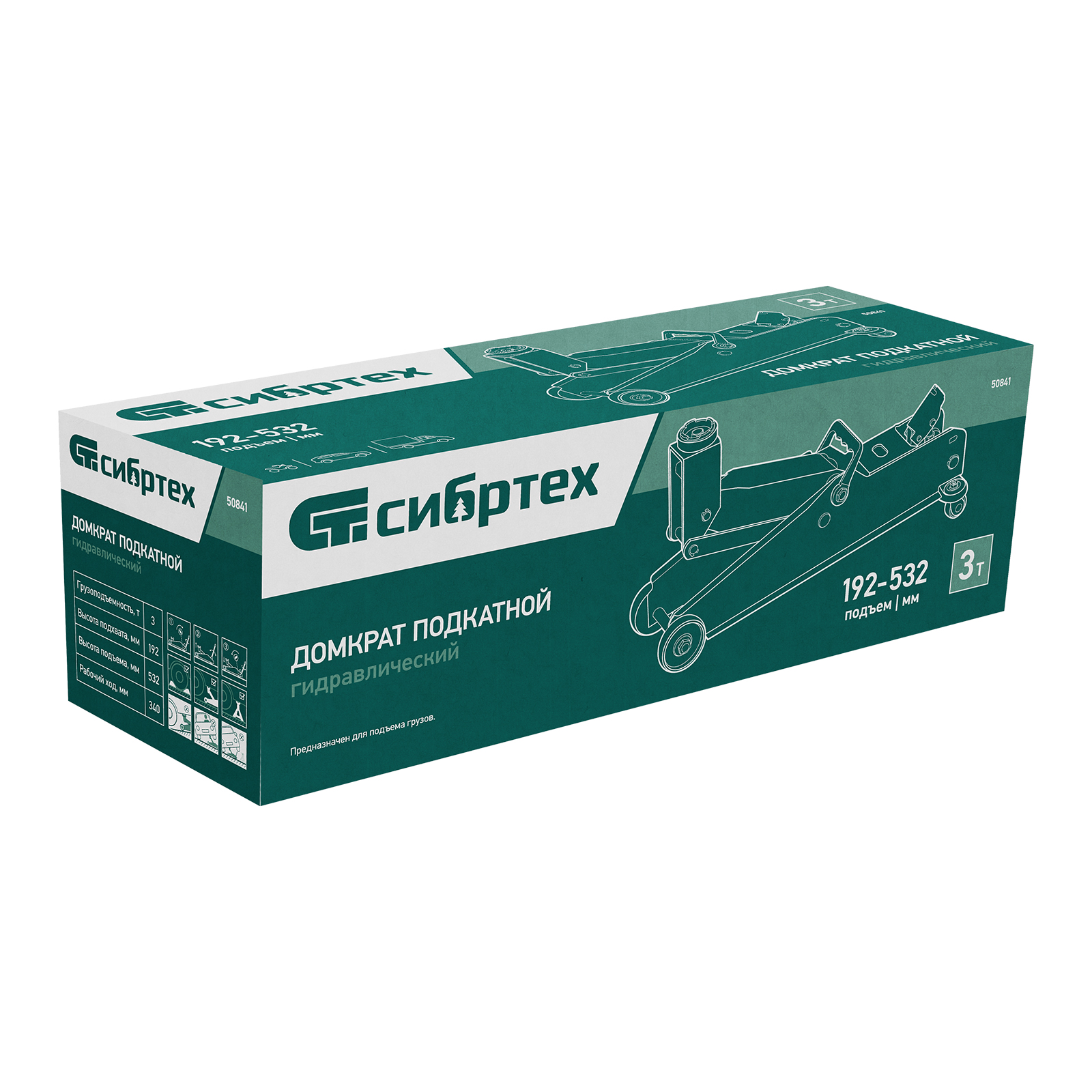 Гидравлический подкатной домкрат Сибртех 50841 с высотой подхвата 192 мм, предназначен для подъема грузов массой до 3 т на высоту до 532 мм, подходит для автомобилей со стандартным клиренсом и SUV. Компактный домкрат подходит для самостоятельного использования автовладельцами.