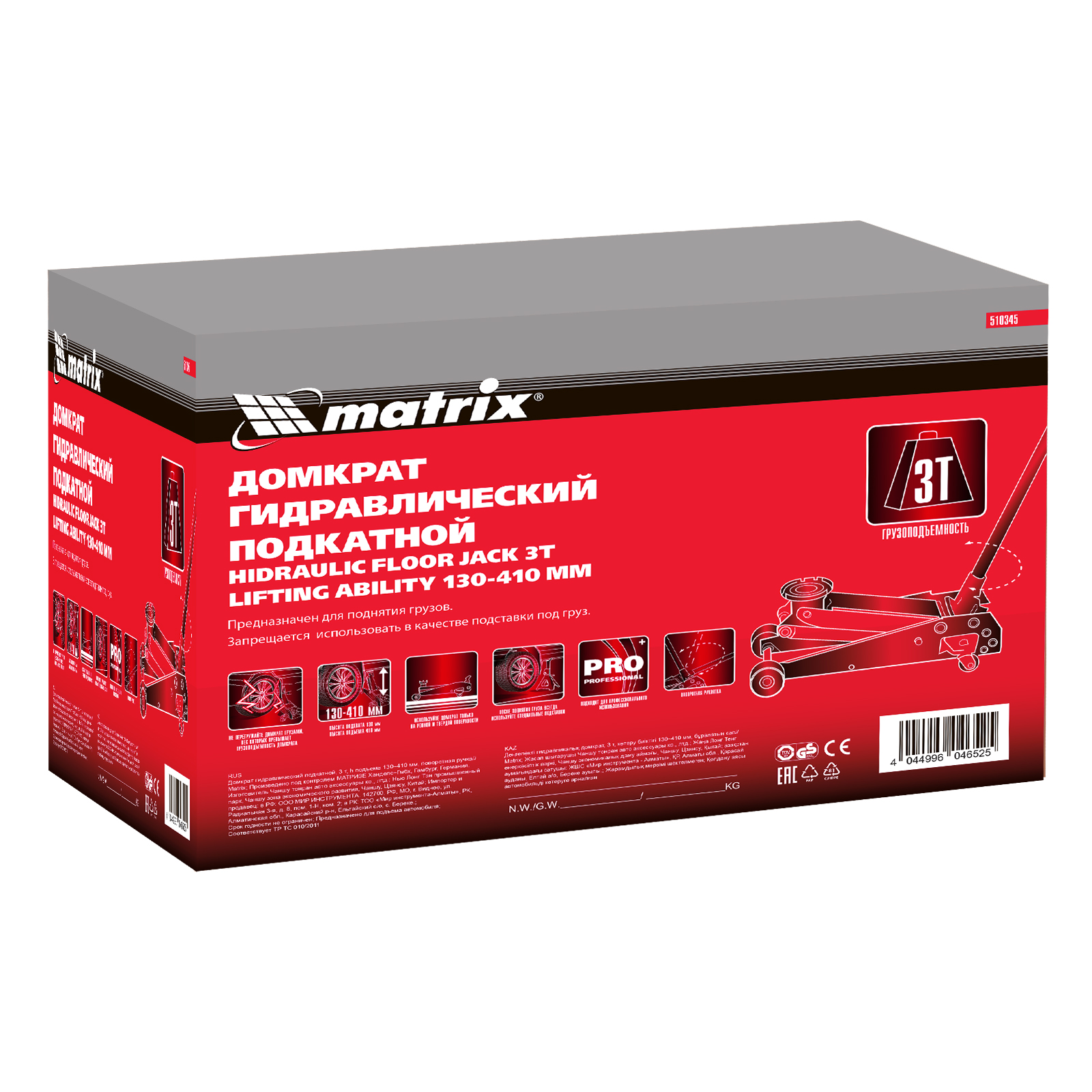 Подкатной гидравлический домкрат Matrix 510345 с поворотной ручкой, с высотой подхвата 130 мм, — полупрофессиональное гаражное оборудование, способное поднимать груз массой до 3 т на высоту до 410 мм. Высота подхвата 130 мм позволяет использовать домкрат для автомашин со стандартным клиренсом. Домкрат будет полезен как в автомастерской, так и в частном гараже.