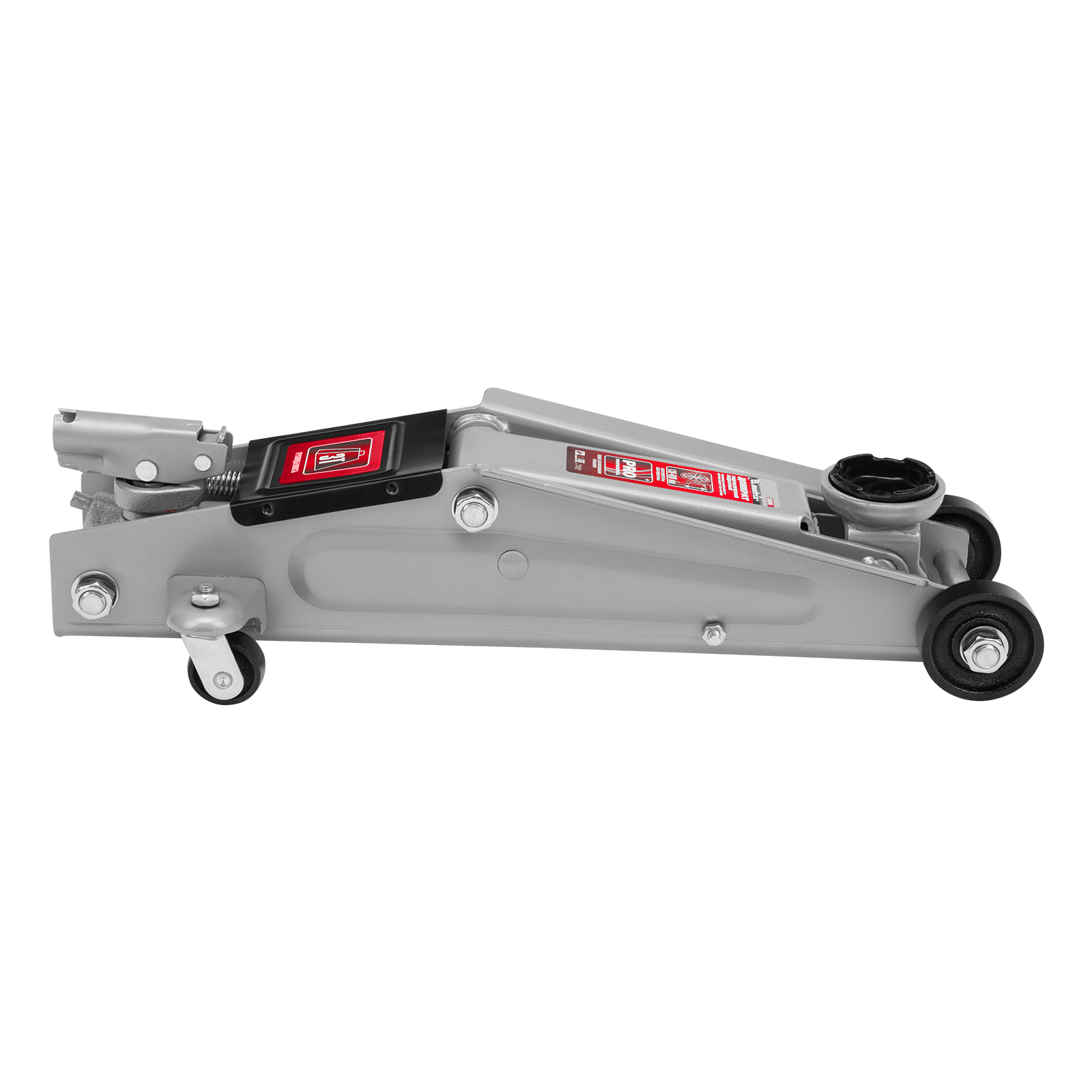 - Безопасная эксплуатация — предохранительный клапан препятствует подъему груза массой более 3 т, предотвращая поломку домкрата.