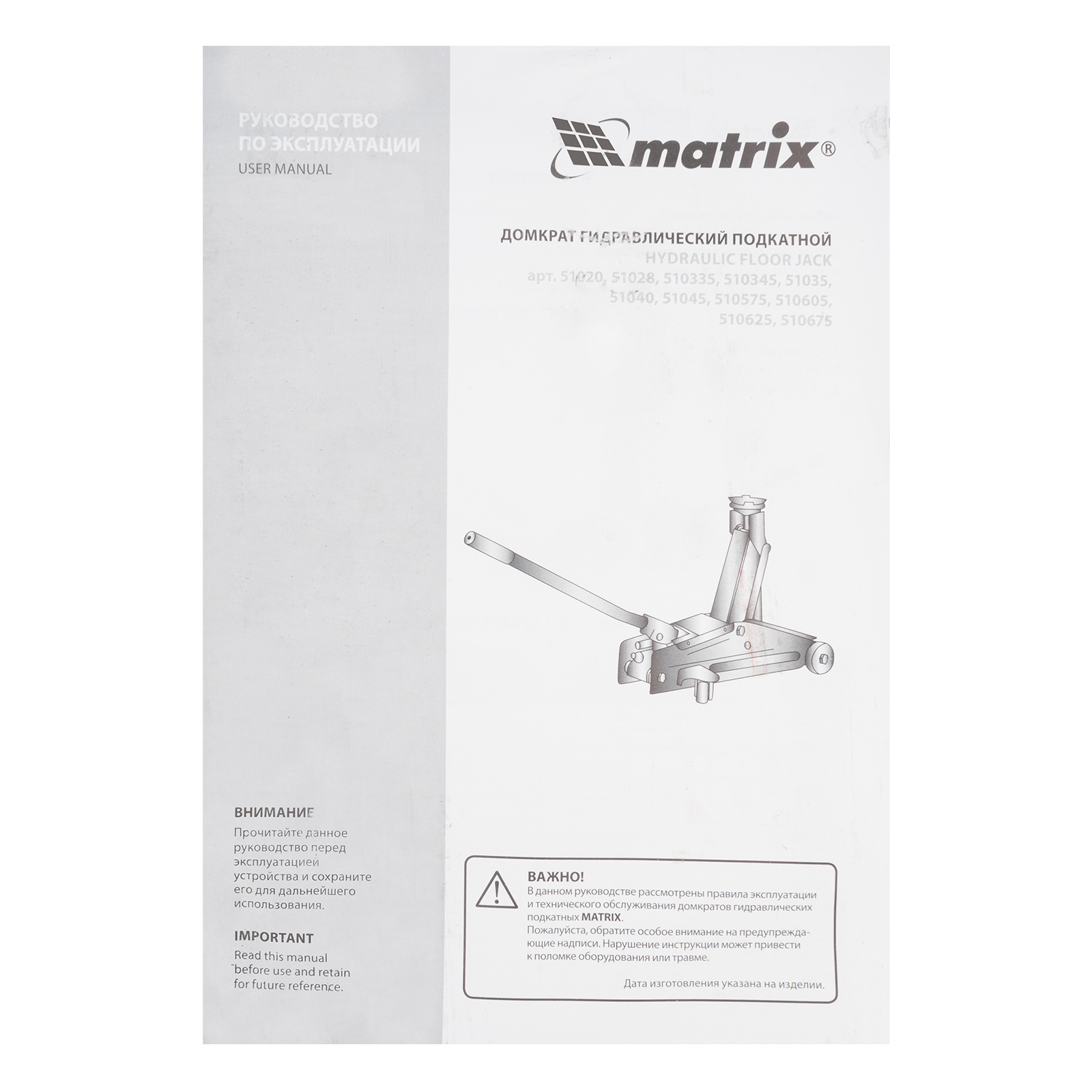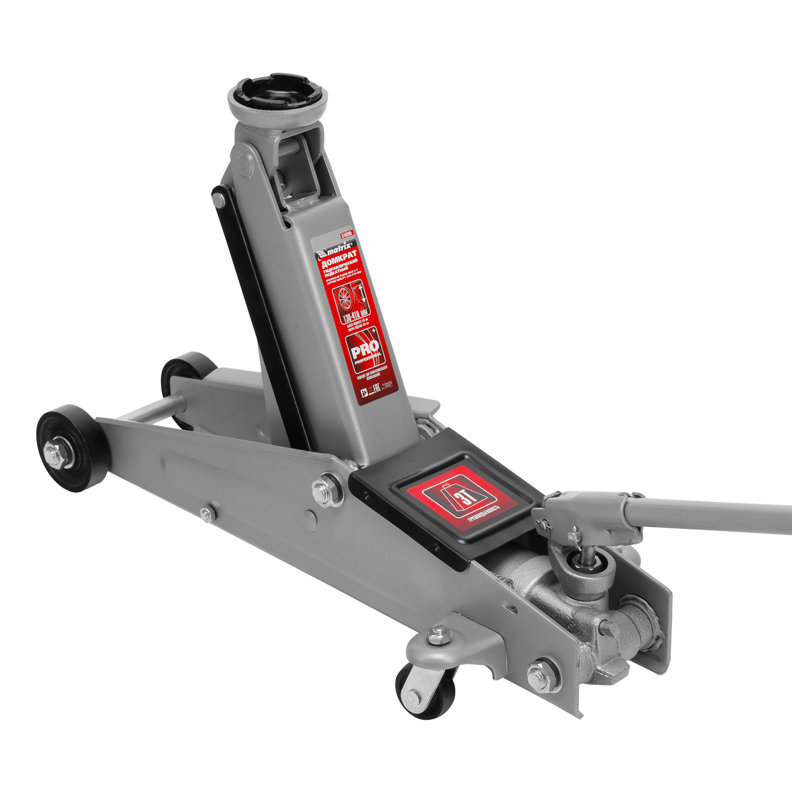Домкрат гидравлический подкатной, 3 т, высота подъема 130-410 мм, поворотная ручка Matrix в Санкт-Петербурге