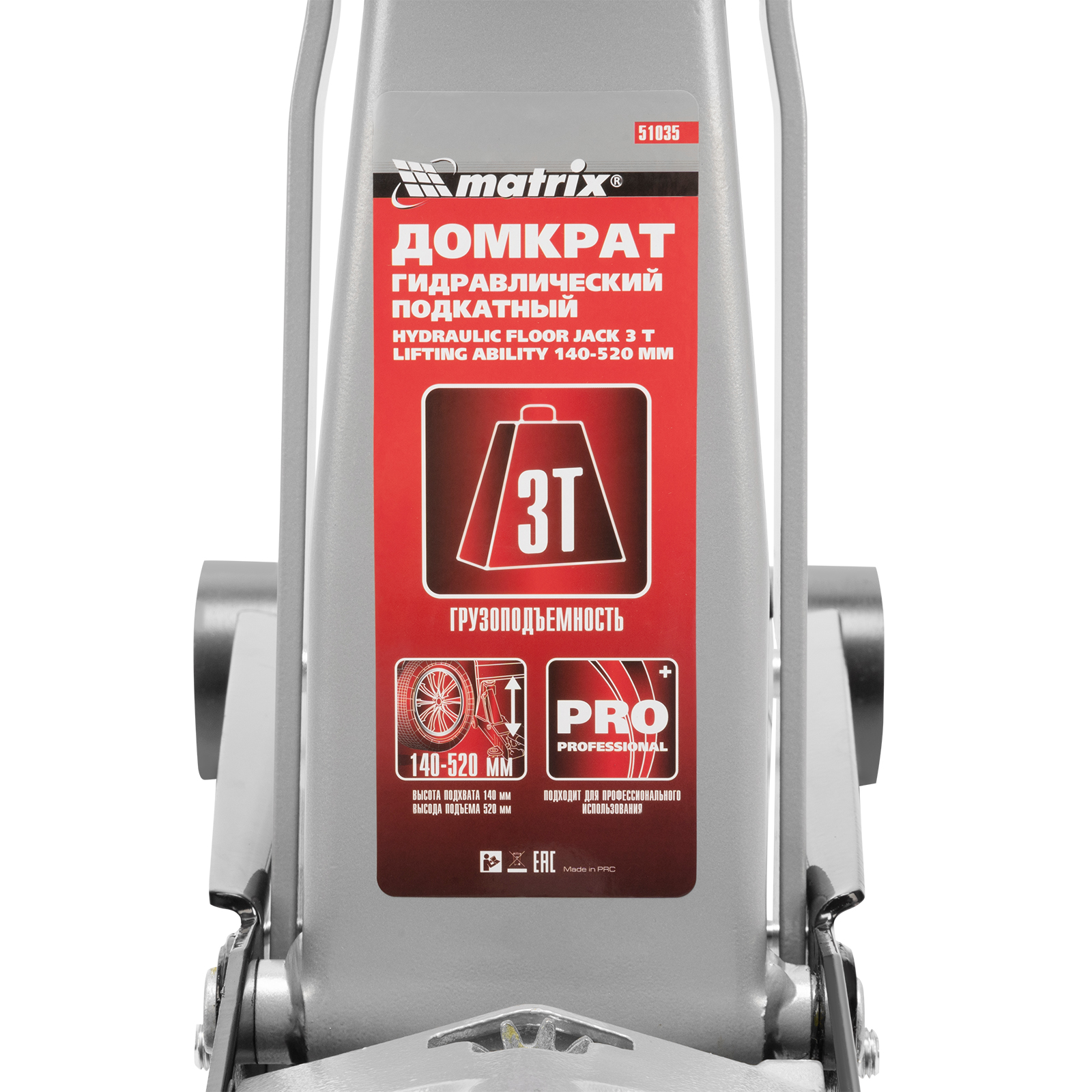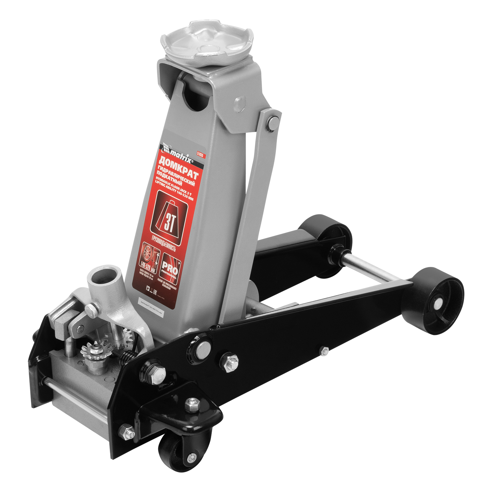 Домкрат гидравлический подкатной, 3 т, высота подъема 140-520 мм Matrix в Санкт-Петербурге