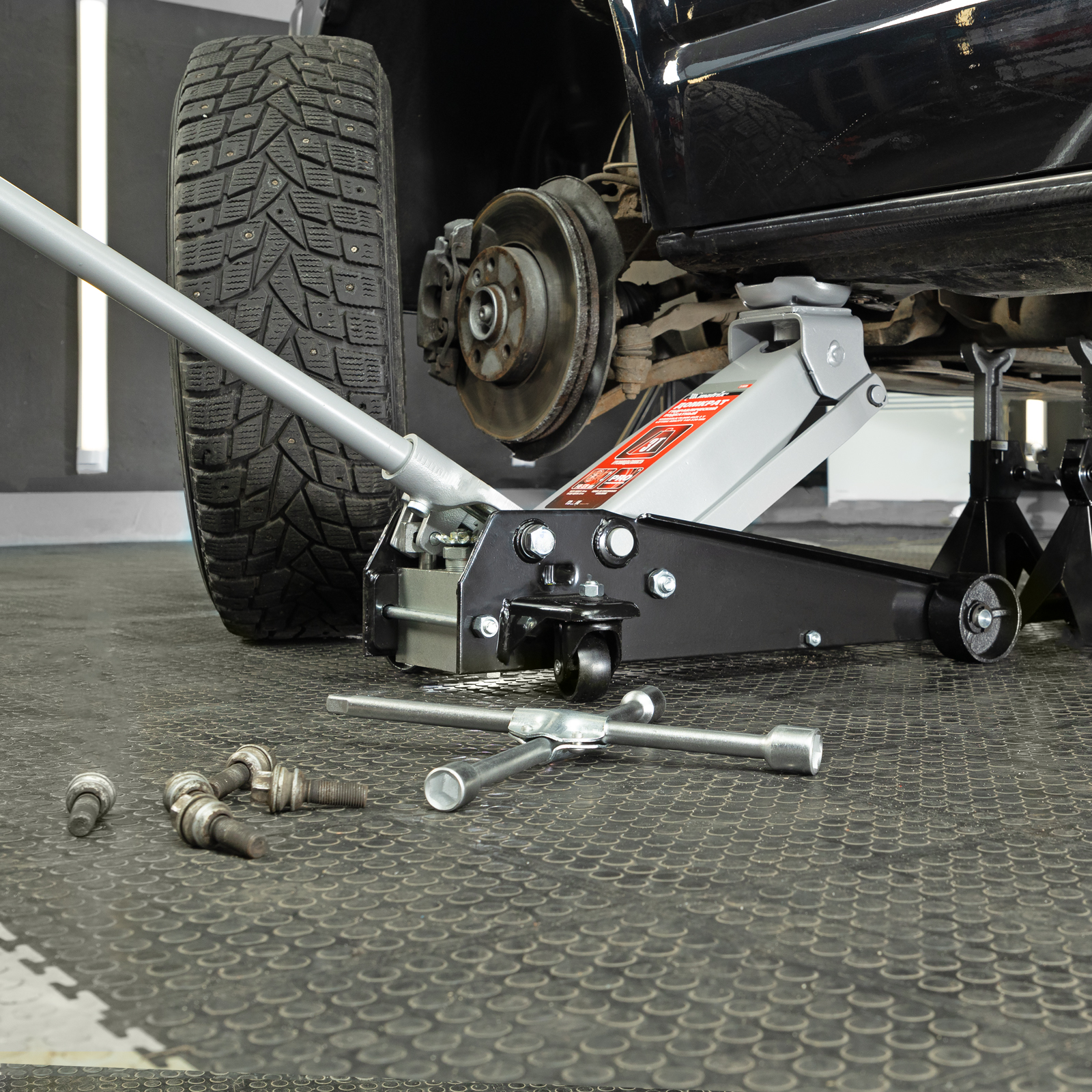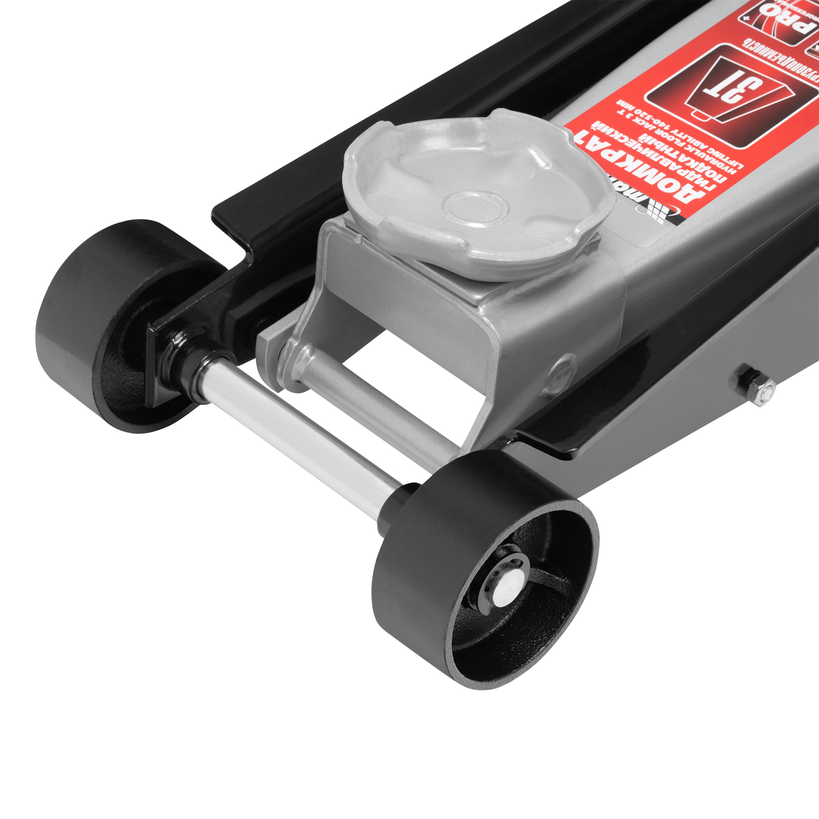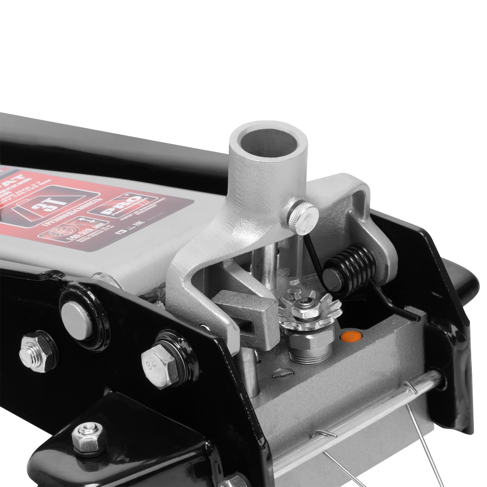 - Безопасная эксплуатация — предохранительный клапан препятствует подъему груза массой более 3 т, предотвращая поломку домкрата.