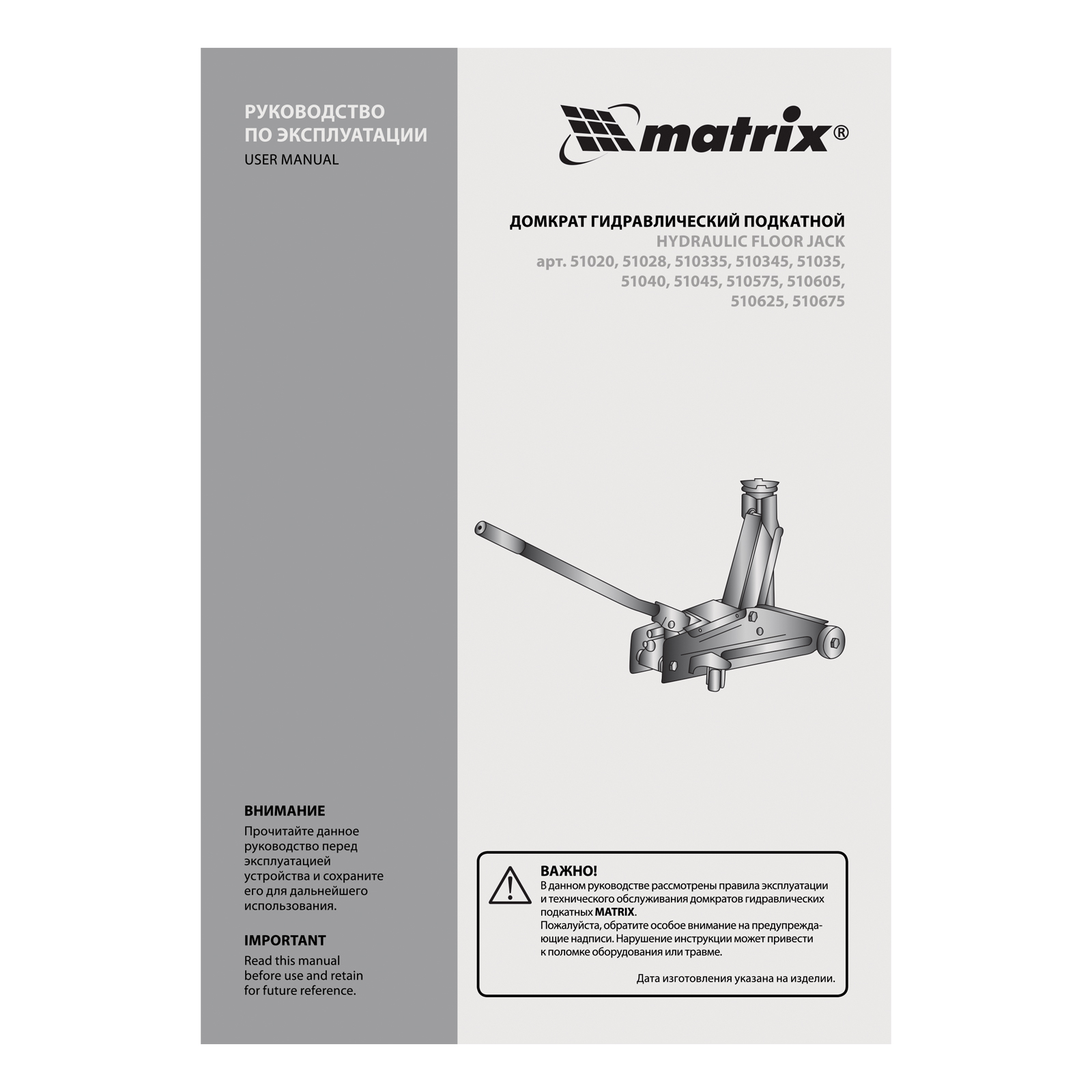 Подкатной гидравлический домкрат Matrix 51040 с высотой подхвата 150 мм, — полупрофессиональное гаражное оборудование, способное поднимать груз массой до 3 т на высоту до 530 мм. Высота подхвата 150 мм позволяет использовать домкрат для автомашин с высоким клиренсом. Домкрат будет полезен как в автомастерской, так и в частном гараже.