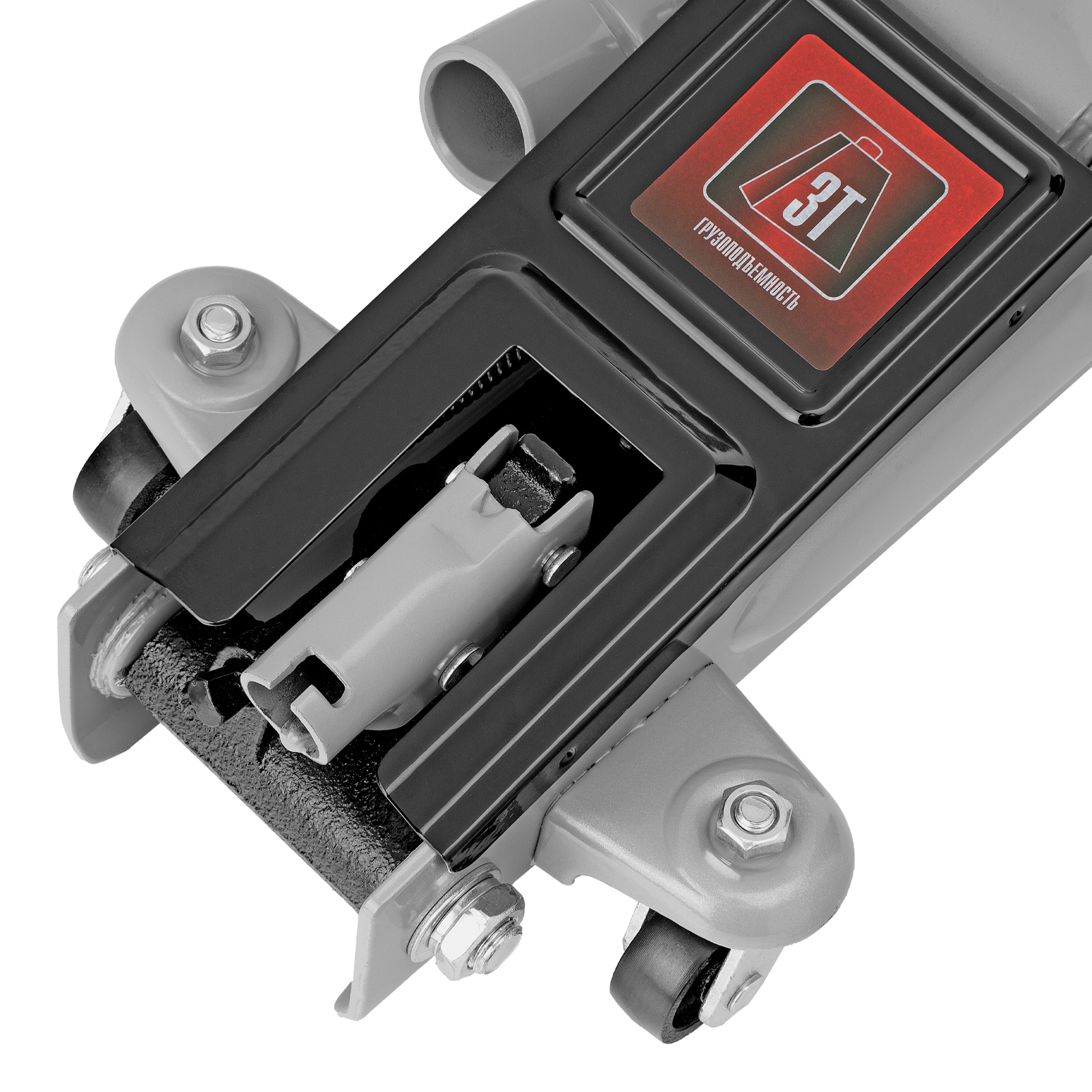 - Безопасная эксплуатация — предохранительный клапан препятствует подъему груза массой более 3 т, предотвращая поломку домкрата.