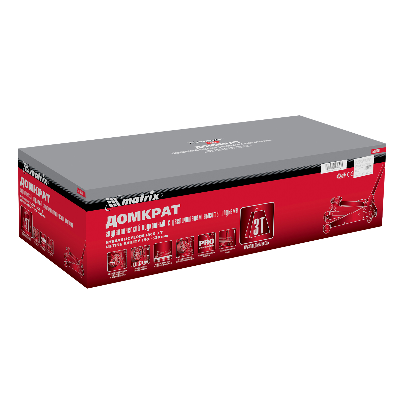 Домкрат гидравлический подкатной, 3 т, высота подъема 150-530 мм Matrix в Санкт-Петербурге