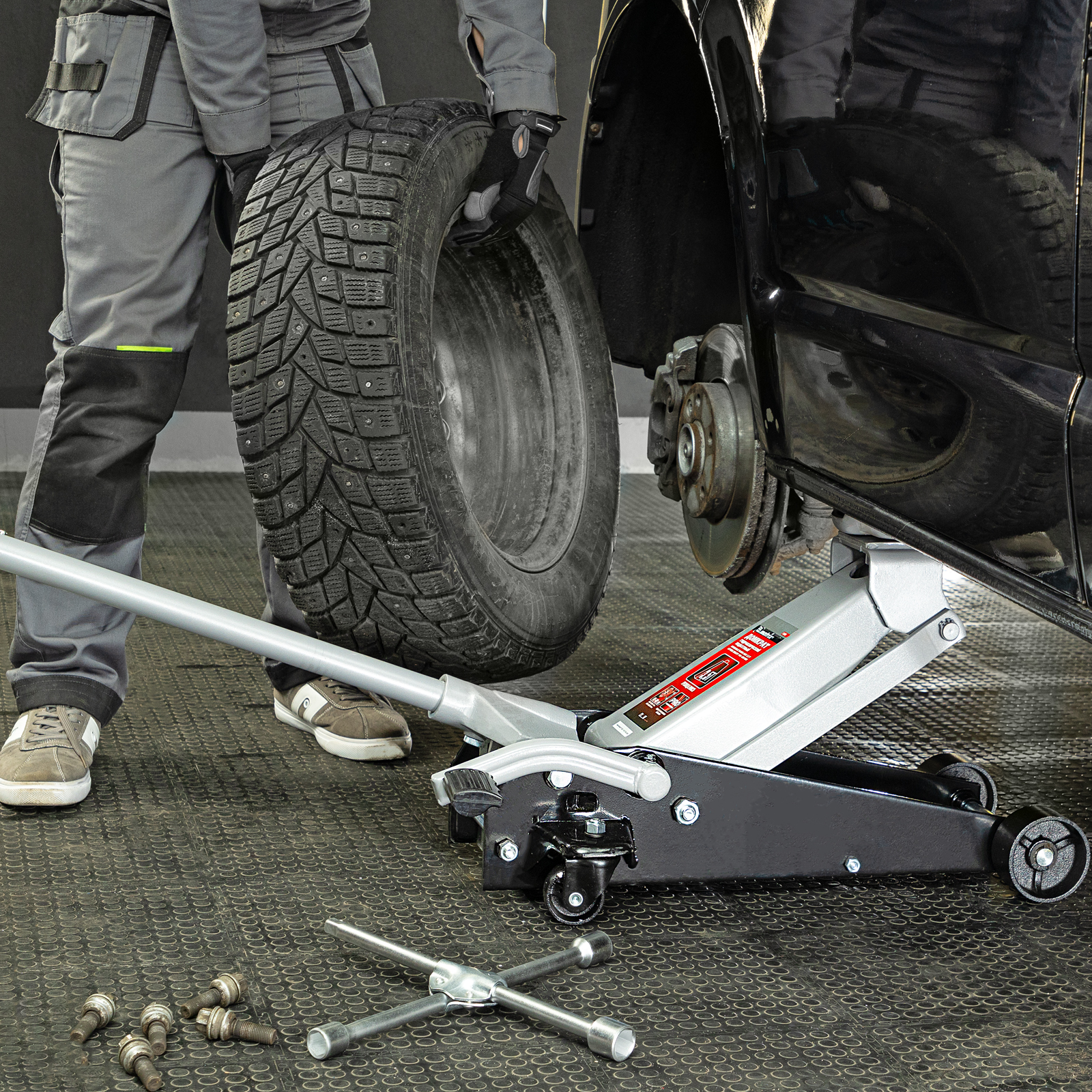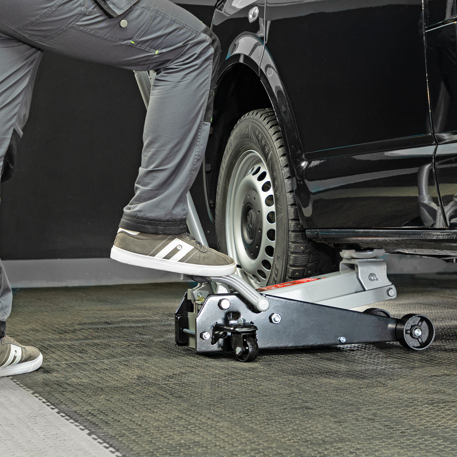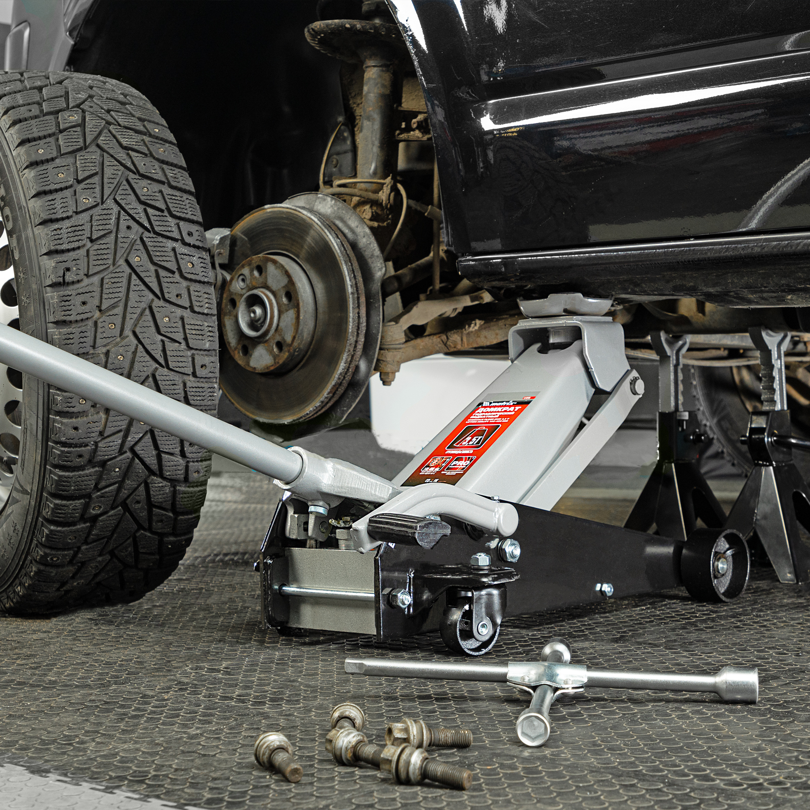 - Удобная эксплуатация — домкрат оснащен педалью ускоренного подъема.