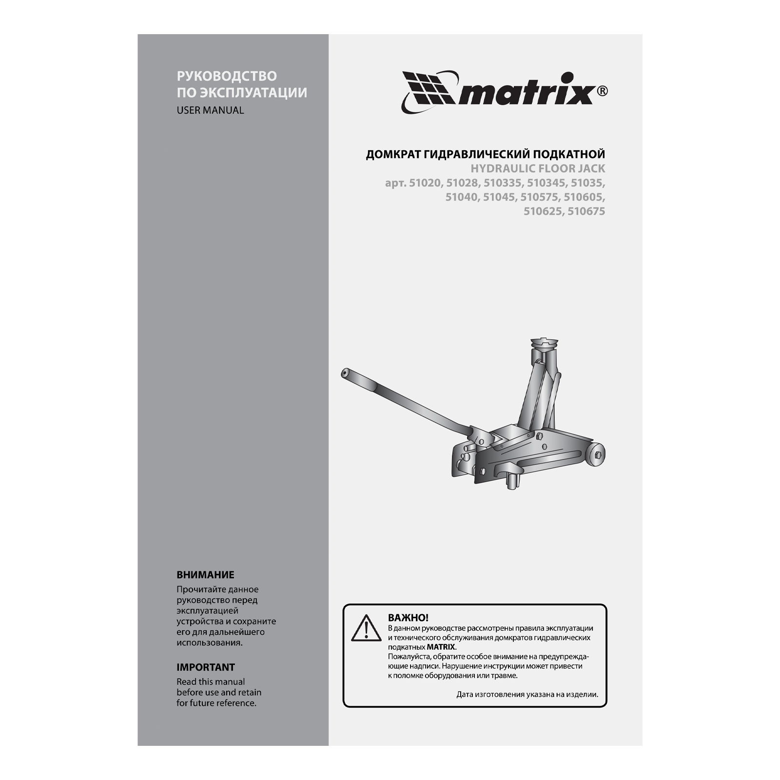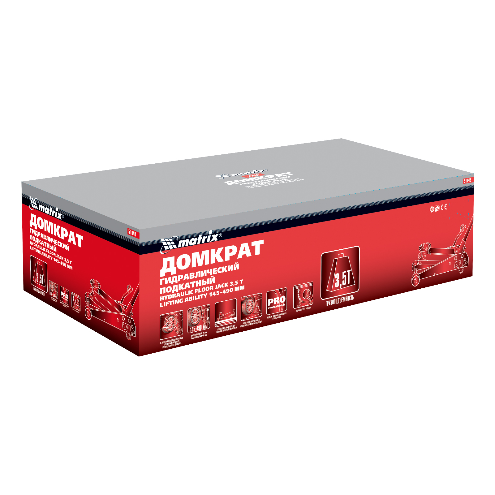 Домкрат гидравлический подкатной, 3.5 т, высота подъема 145-490 мм, с педалью Matrix в Санкт-Петербурге