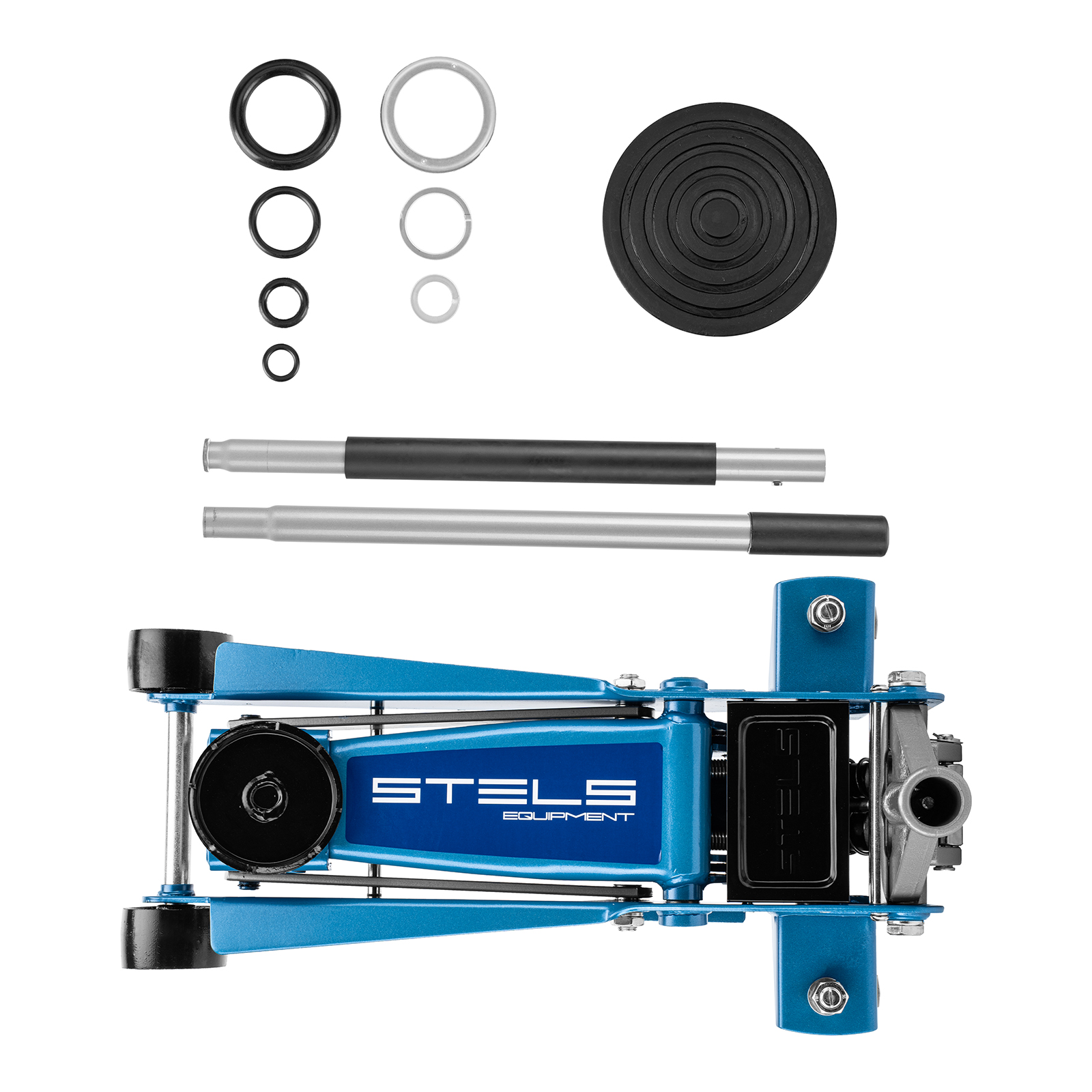Домкрат - 1 штРезиновая опора - 1 штРукоятка (состоит из двух частей) - 1 штРуководство по эксплуатации - 1 штРемонтный комплект прокладок - 1 шт |