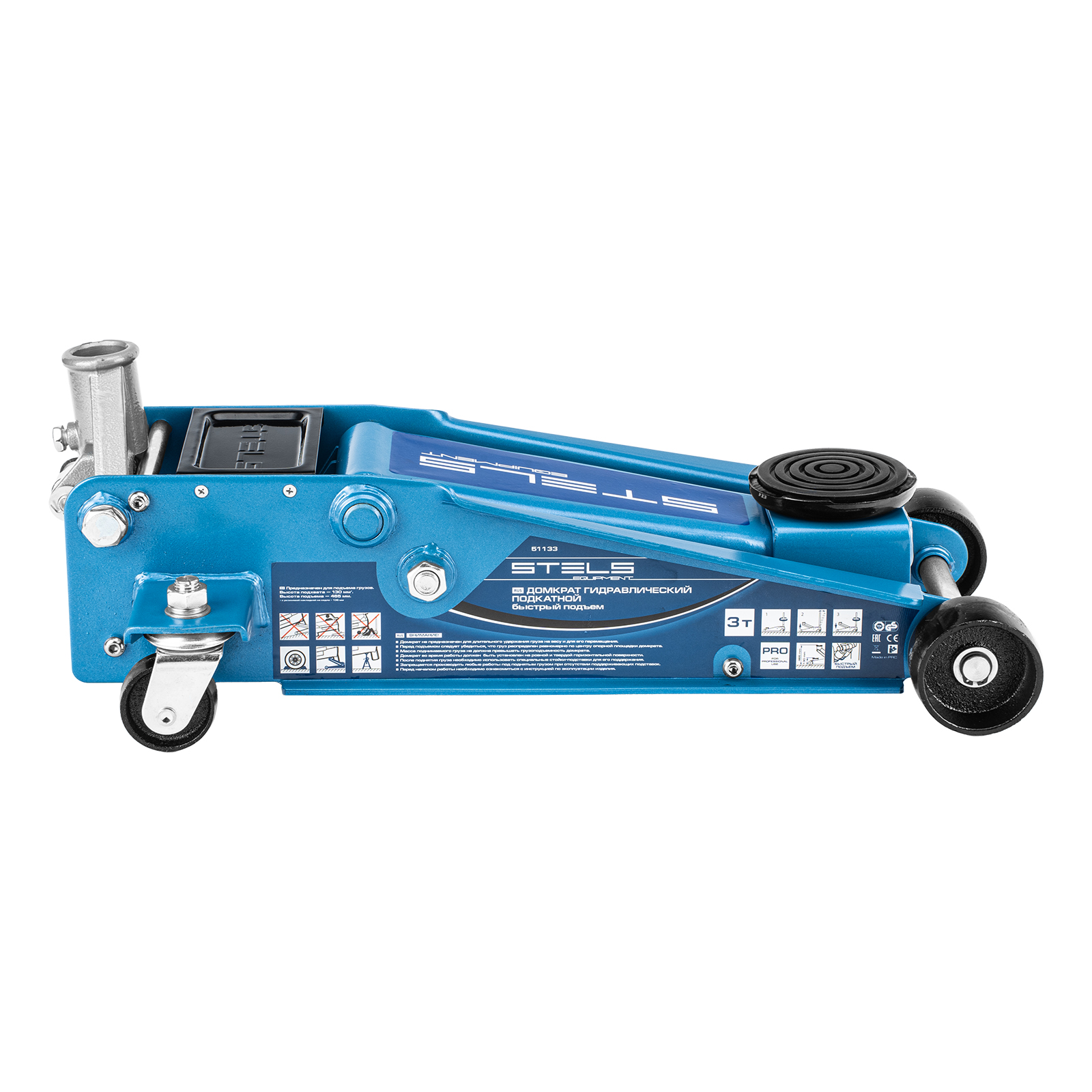 Профессиональный подкатной гидравлический домкрат Stels QUICK LIFT 51133 используется для быстрого подъема на высоту 130-465 мм всех типов автомобилей со стандартным клиренсом и массой до 3 тонн. Благодаря системе QUICK LIFT для достижения предельной высоты достаточно 7 качков рукоятки. Домкрат подходит для использования на станциях техобслуживания и шиномонтажа.