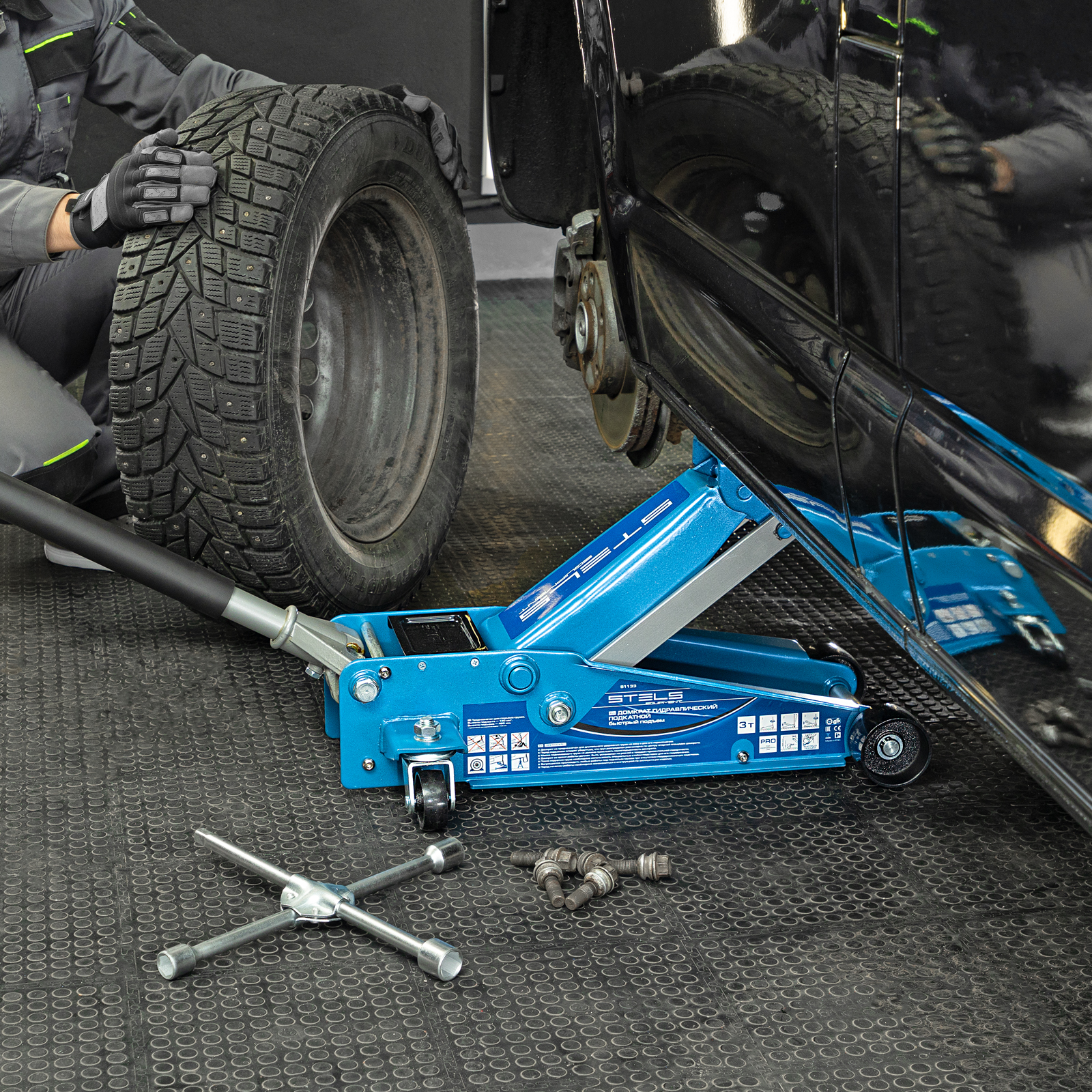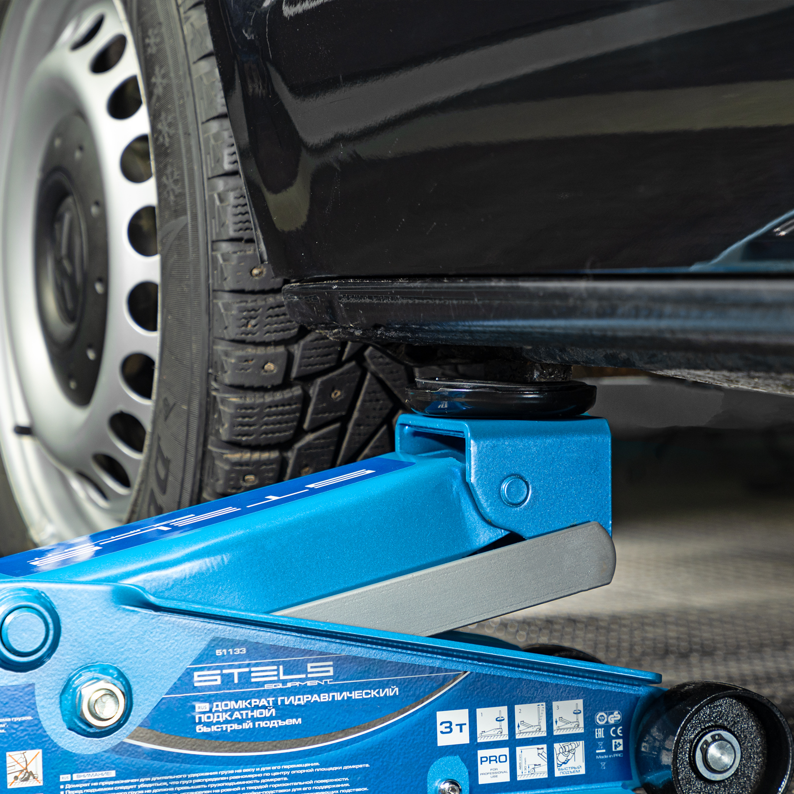 - Аккуратная работа — резиновая опора и прорезиненная ручка защищают кузов автомобиля и корпус домкрата от повреждений.