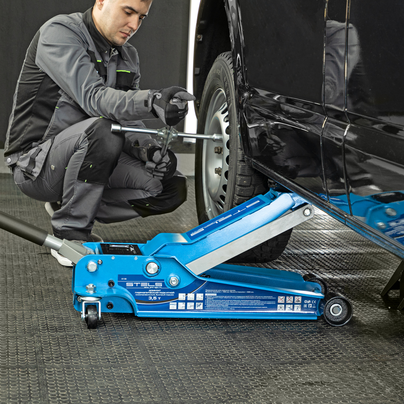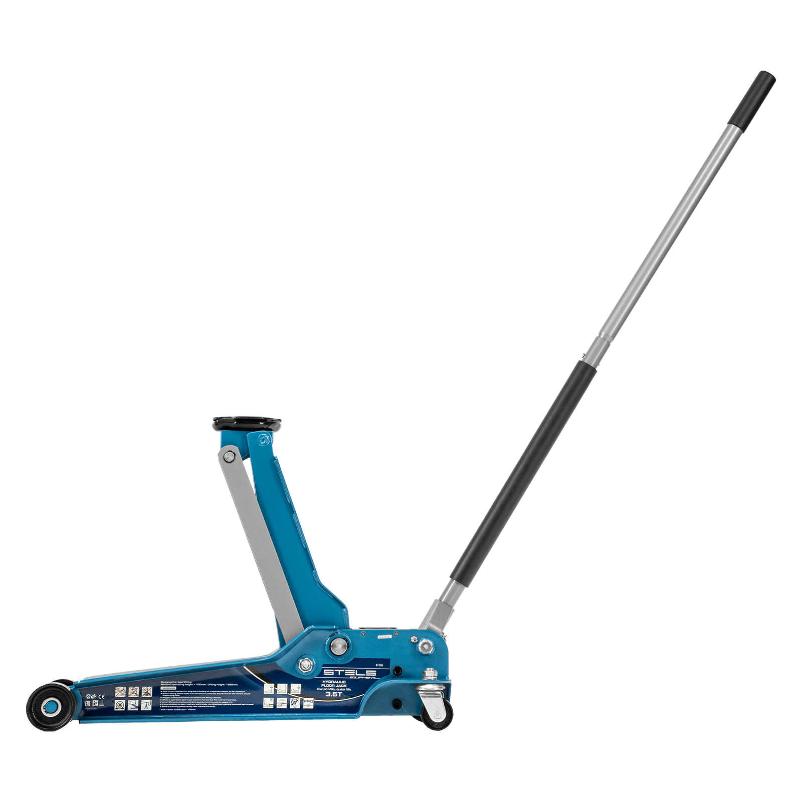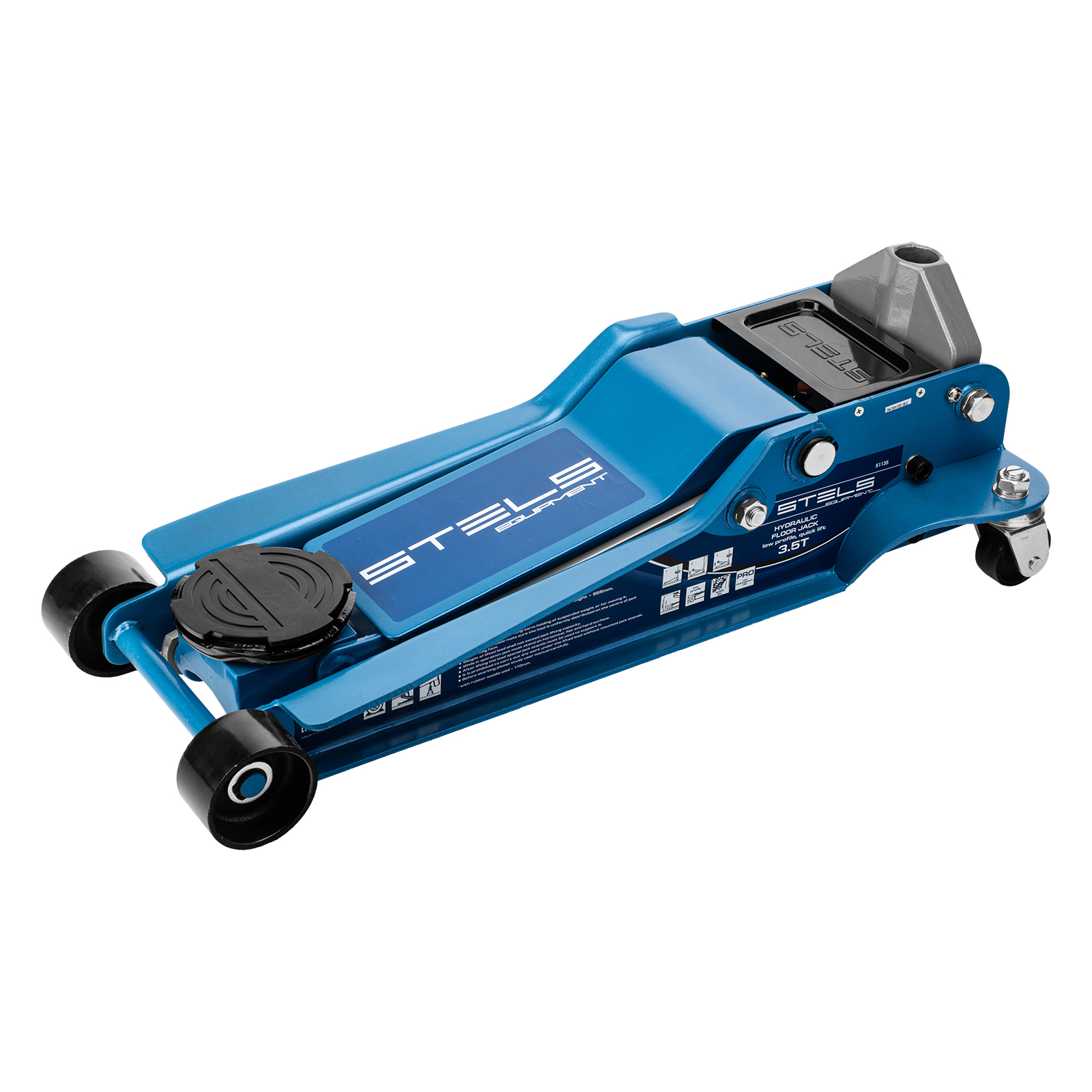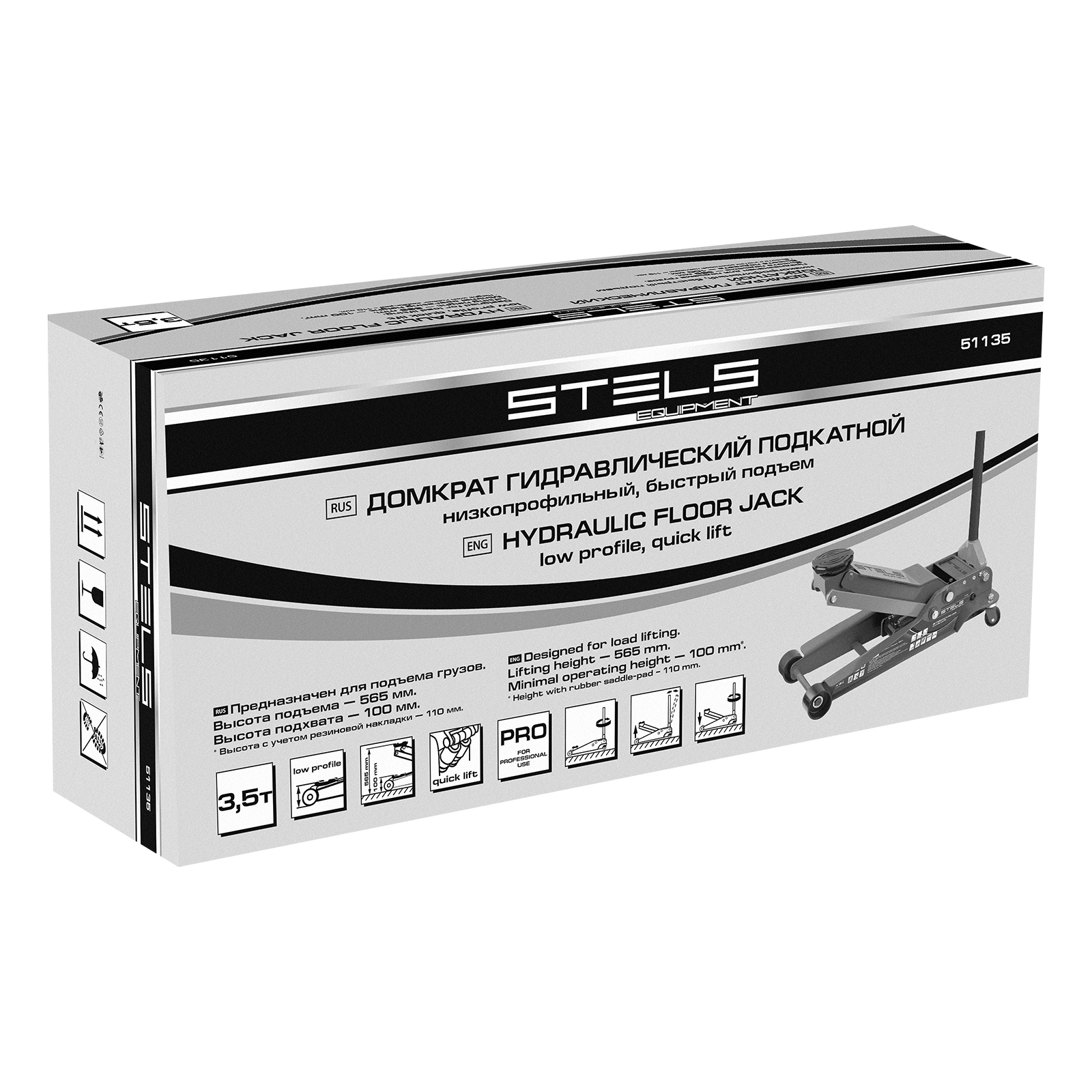 Профессиональный подкатной гидравлический домкрат Stels LOW PROFILE QUICK LIFT 51135 используется для быстрого подъема на высоту 100-565 мм всех типов автомобилей с низким клиренсом и массой до 3,5 тонн. Благодаря системе QUICK LIFT для достижения предельной высоты достаточно 10 качков рукоятки. Домкрат подходит для использования на станциях техобслуживания и шиномонтажа.